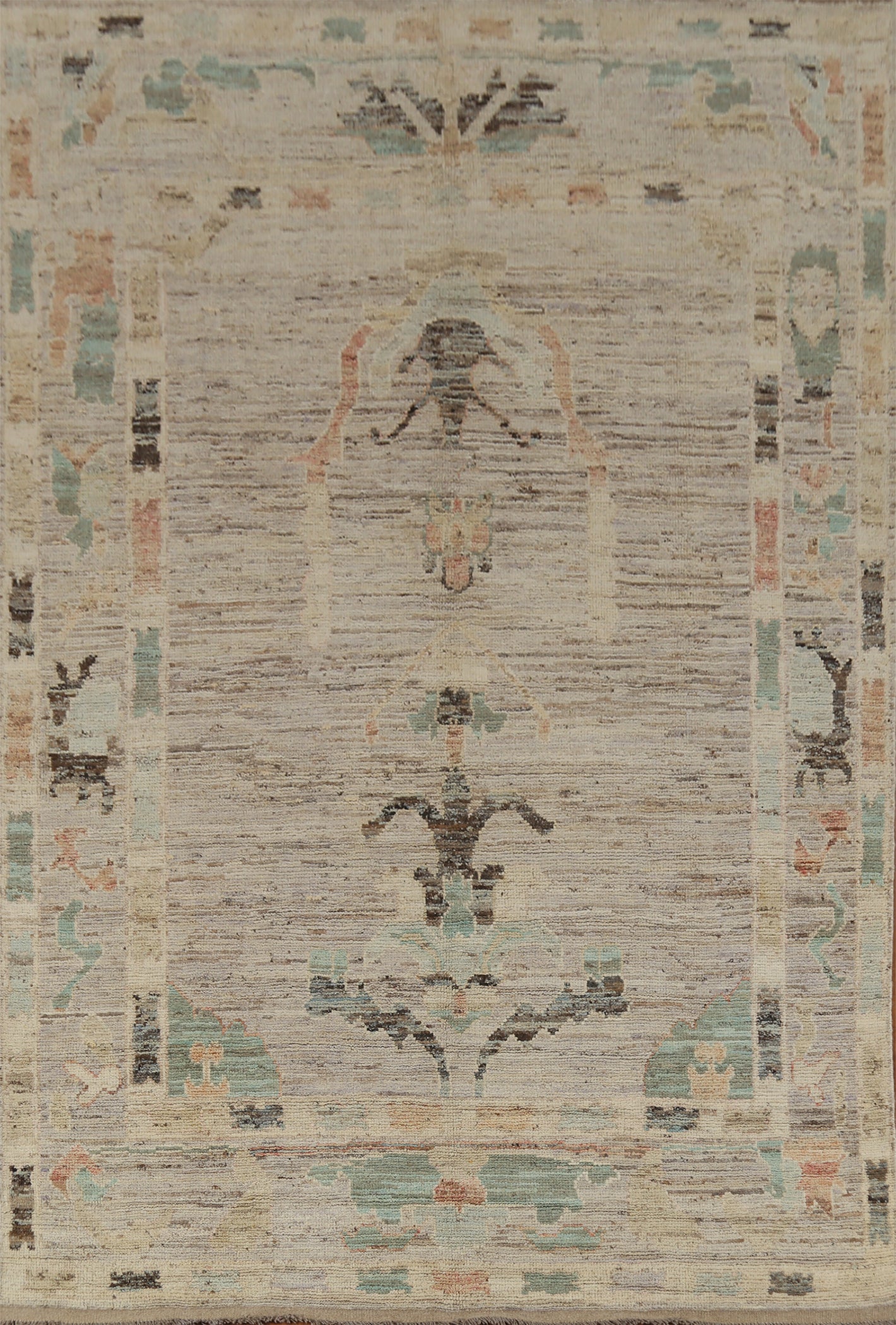 A Beautiful Genuine Turkey Oushak rug is Hand Knotted by skillful weavers in Turkey with 100% Wool Material. This rug is in New, First Quality condition. dimensions are 9' 8'' X 6' 8'' in foot and 295 X 203 in centimeter. the primary color is Greys & Charcoal.