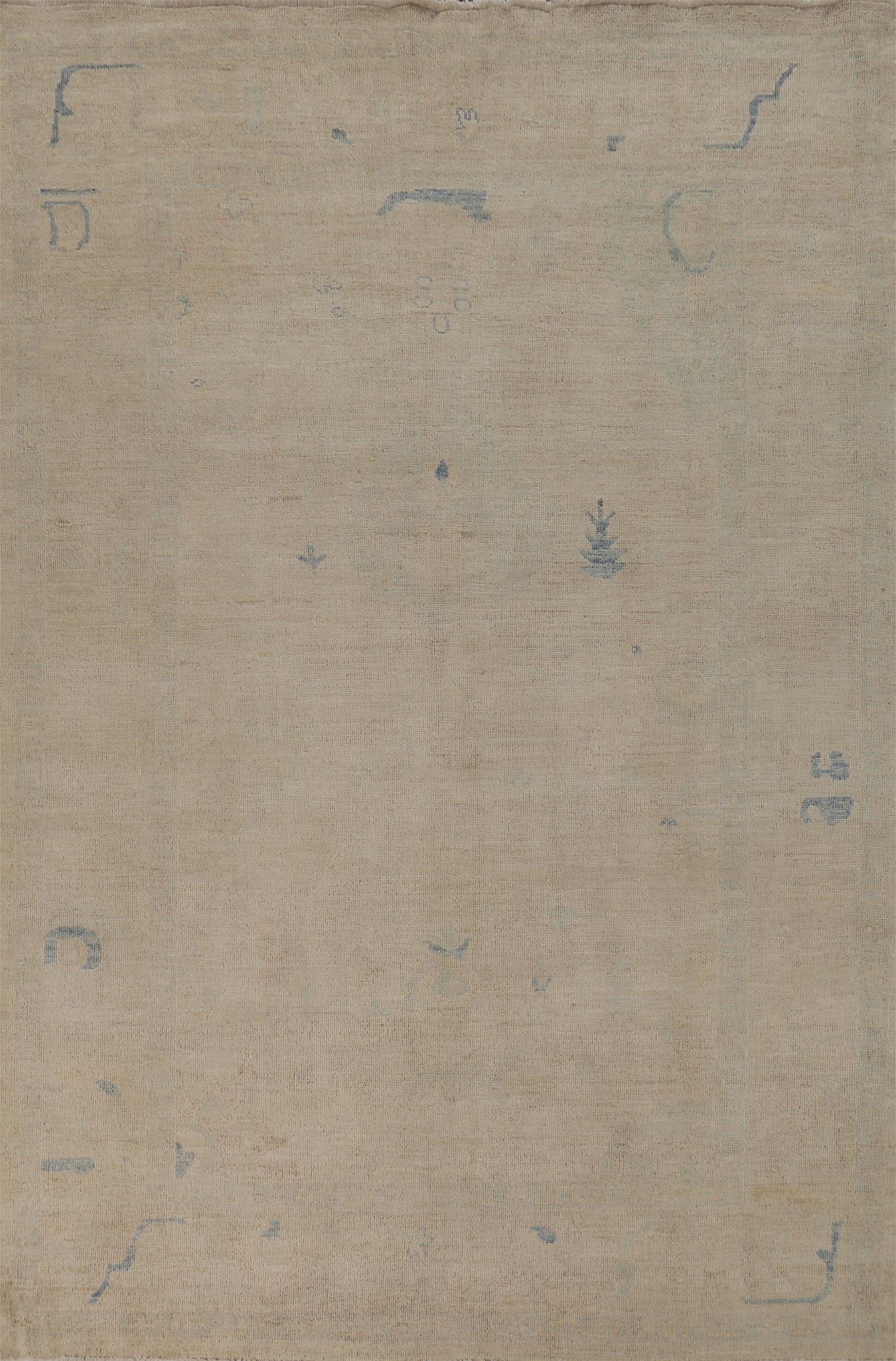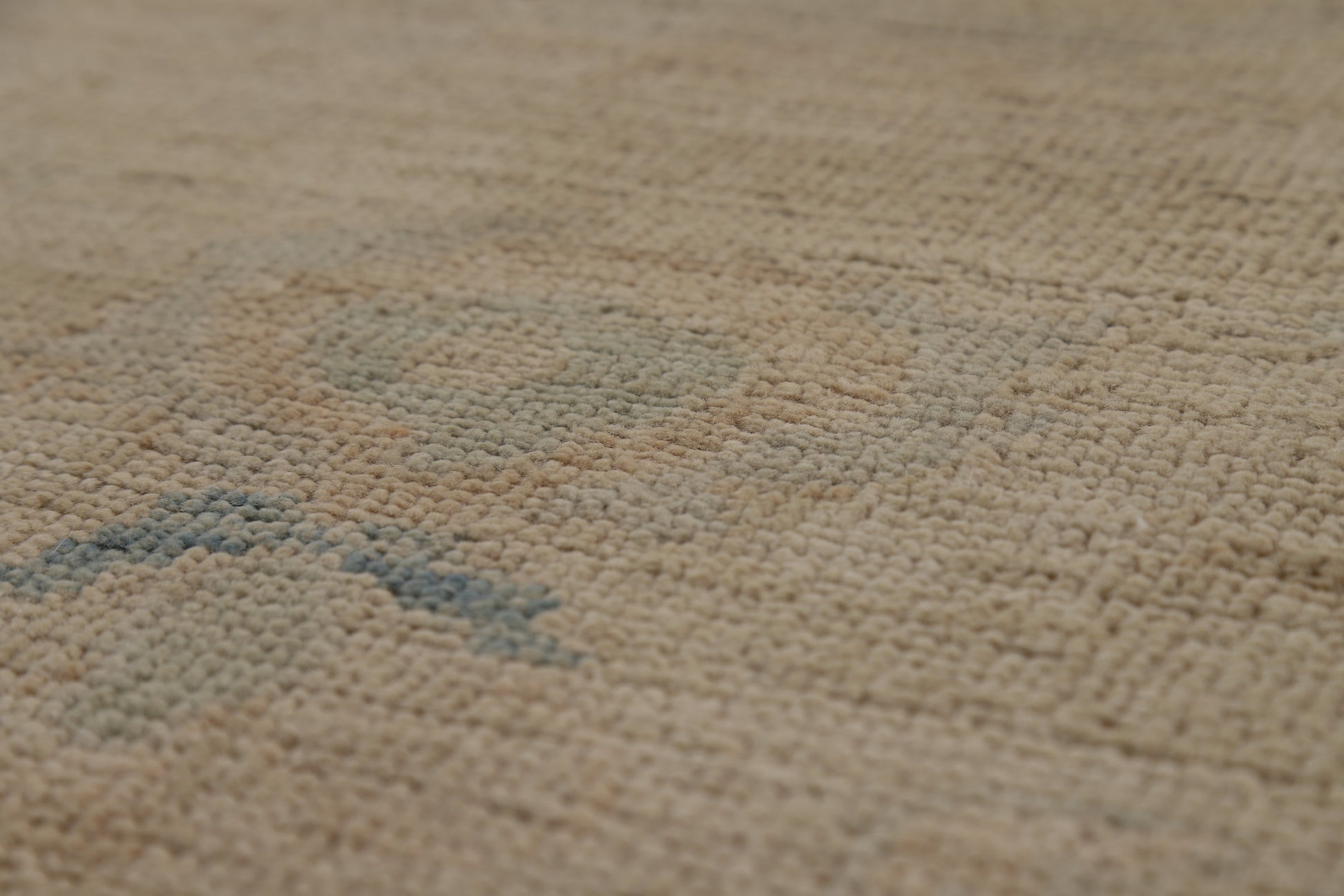 A Beautiful Genuine Turkey Oushak rug is Hand Knotted by skillful weavers in Turkey with 100% Wool Material. This rug is in New, First Quality condition. dimensions are 9' 7'' X 6' 6'' in foot and 292 X 198 in centimeter. the primary color is Beige & Ivories.