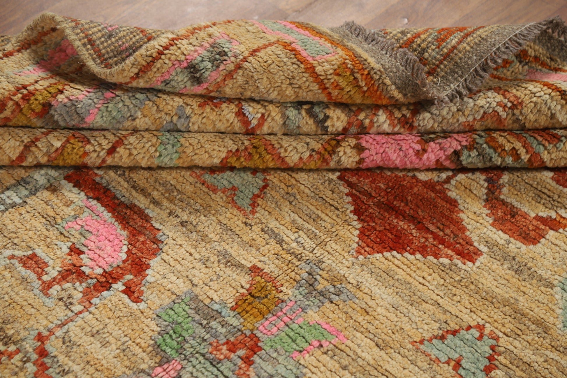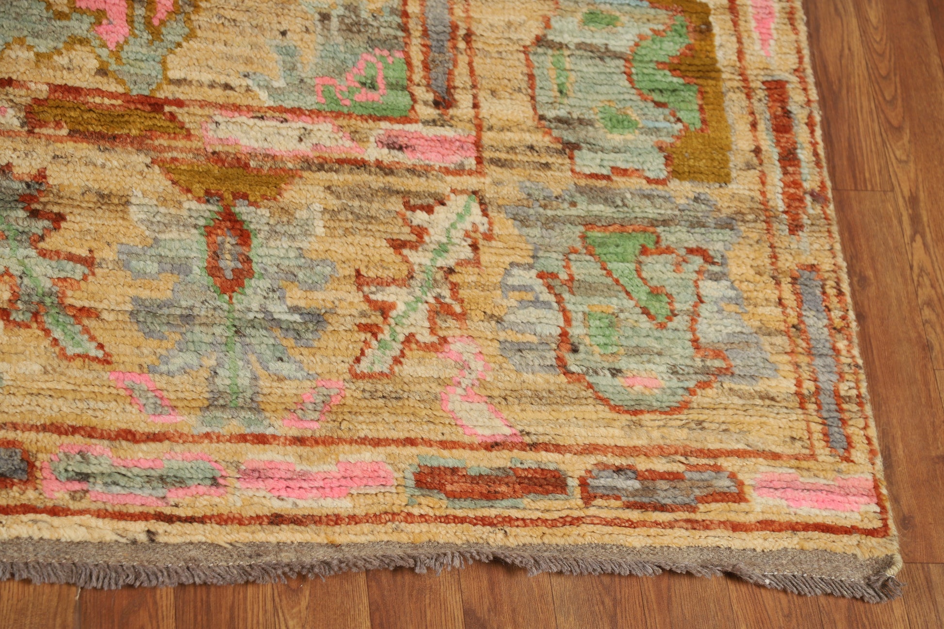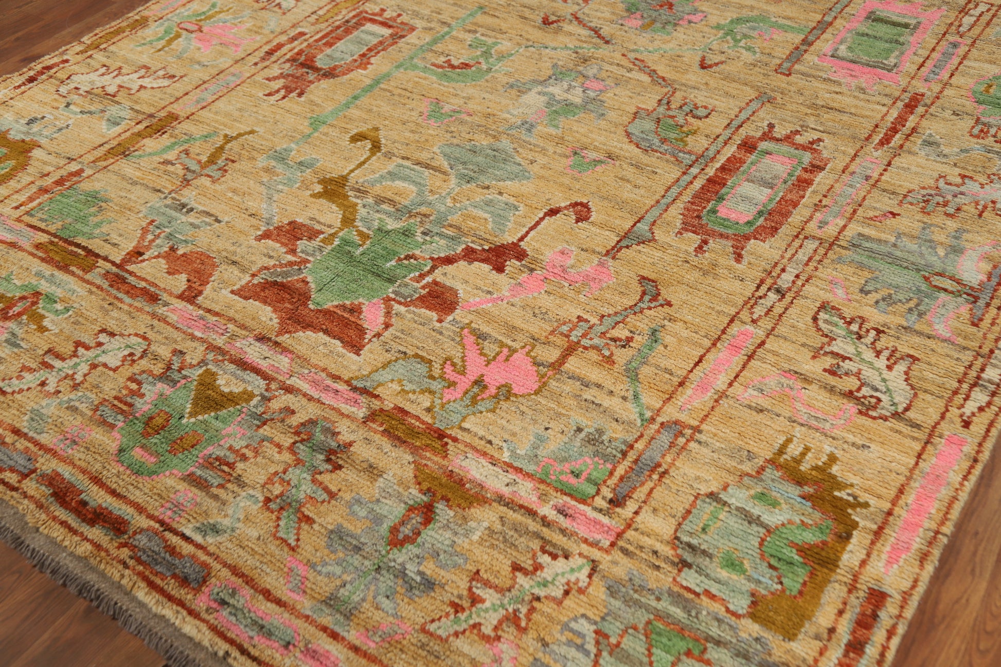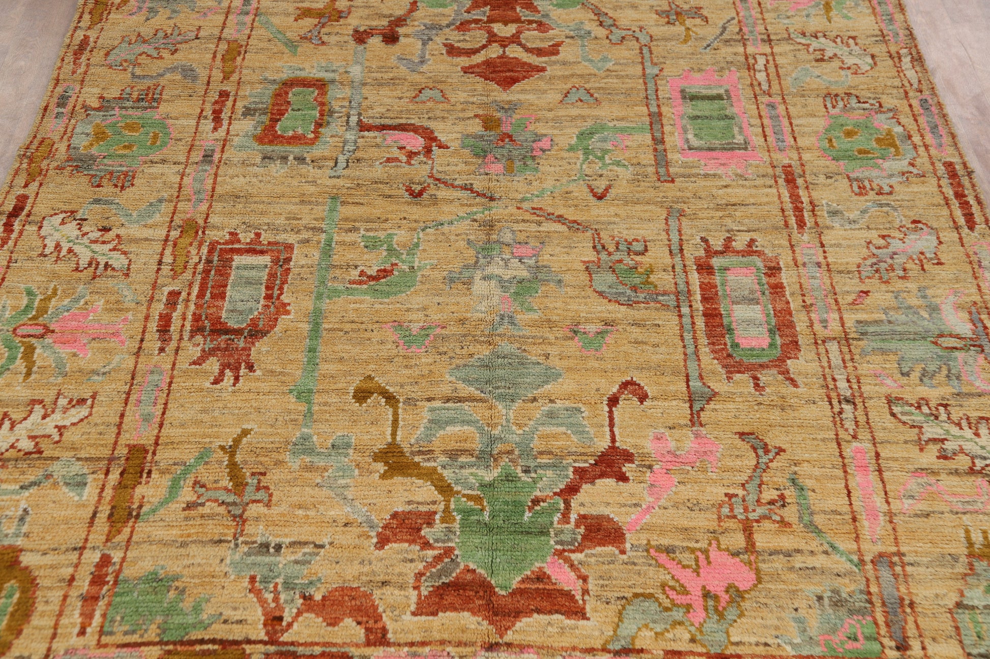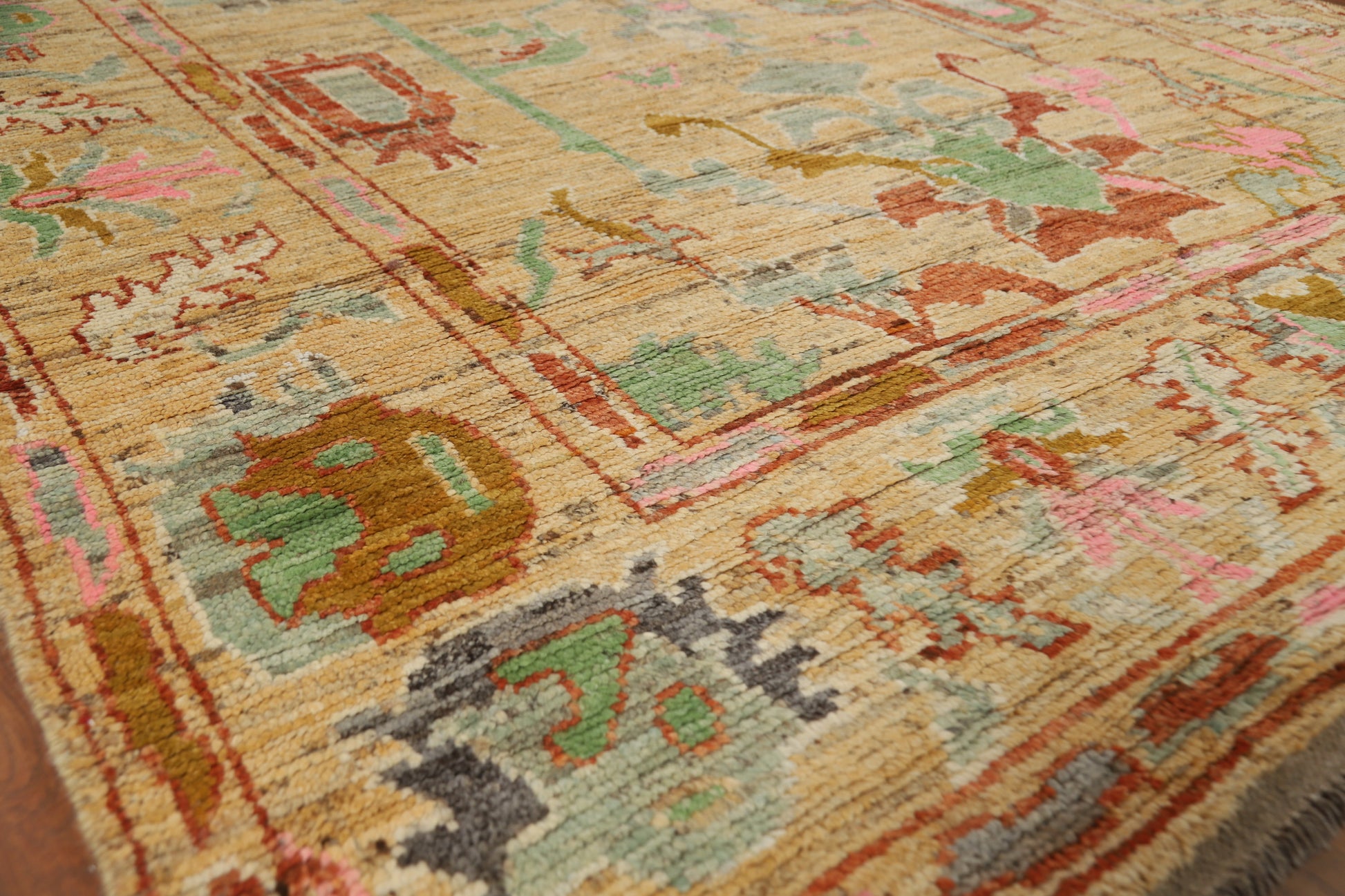 A Beautiful Genuine Turkey Oushak rug is Hand Knotted by skillful weavers in Turkey with 100% Wool Material. This rug is in New, First Quality condition. dimensions are 9' 10'' X 7' 0'' in foot and 300 X 213 in centimeter. the primary color is Yellow & Gold.