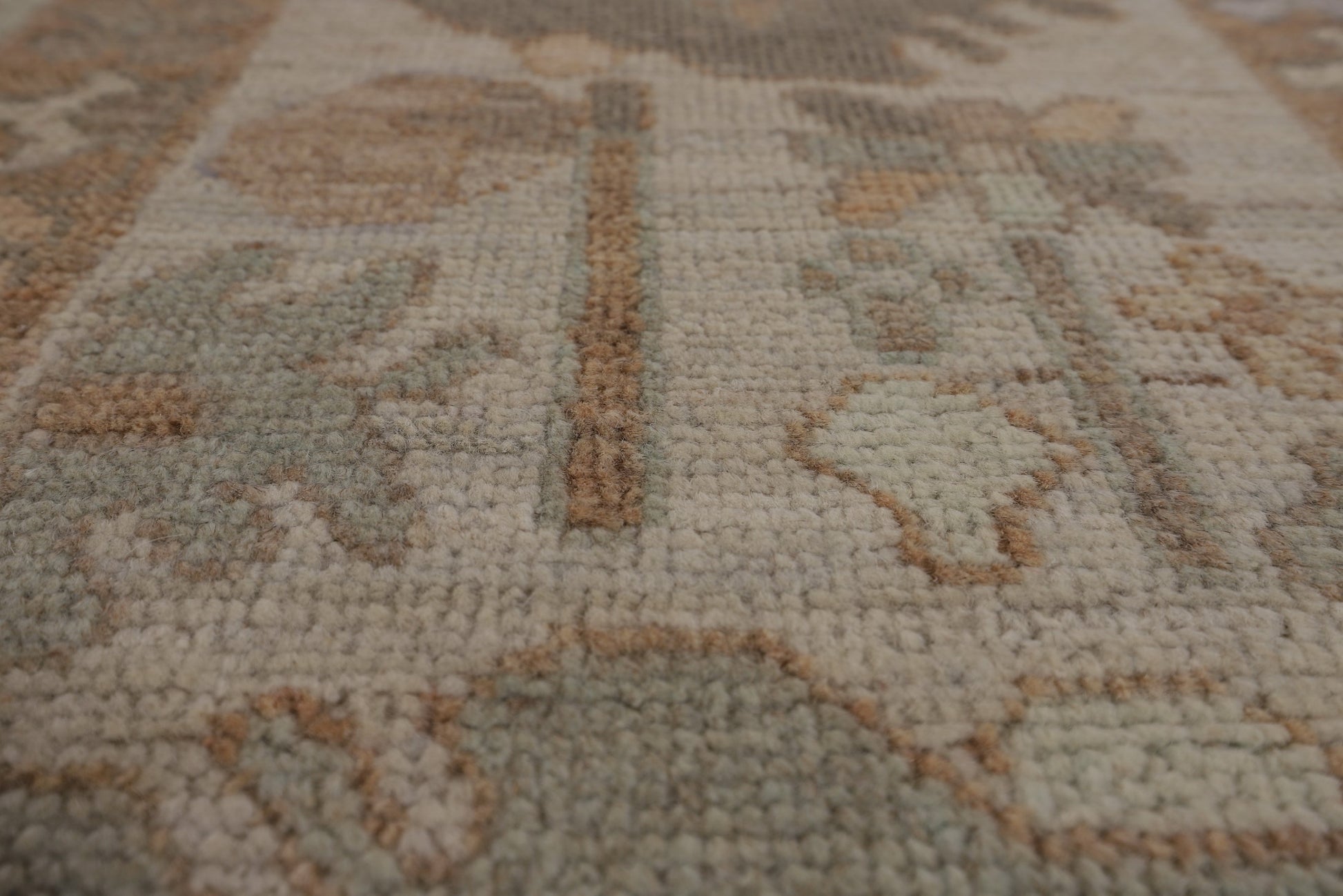 A Beautiful Genuine Turkey Oushak rug is Hand Knotted by skillful weavers in Turkey with 100% Wool Material. This rug is in New, First Quality condition. dimensions are 9' 11'' X 8' 0'' in foot and 302 X 244 in centimeter. the primary color is Greys & Charcoal.