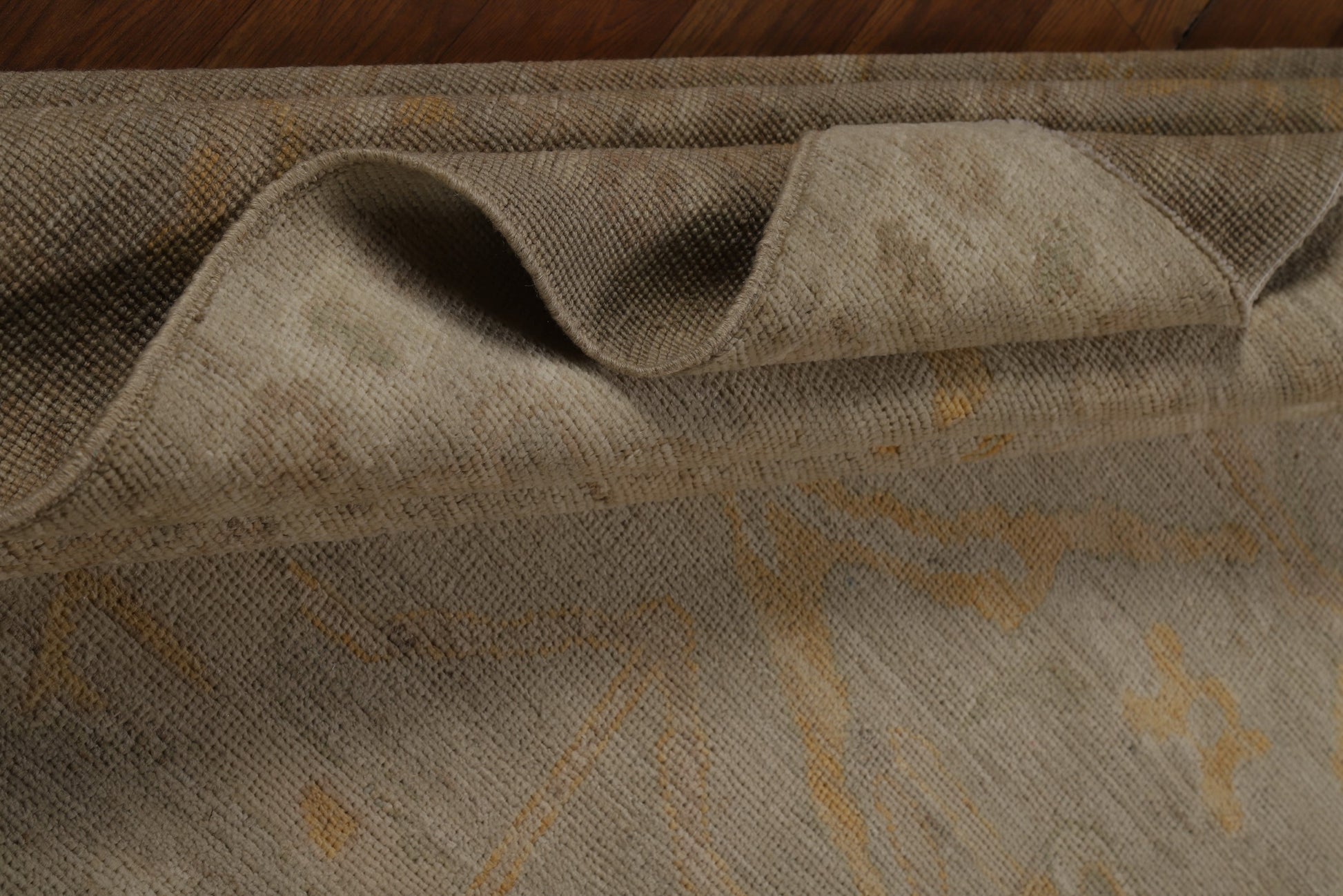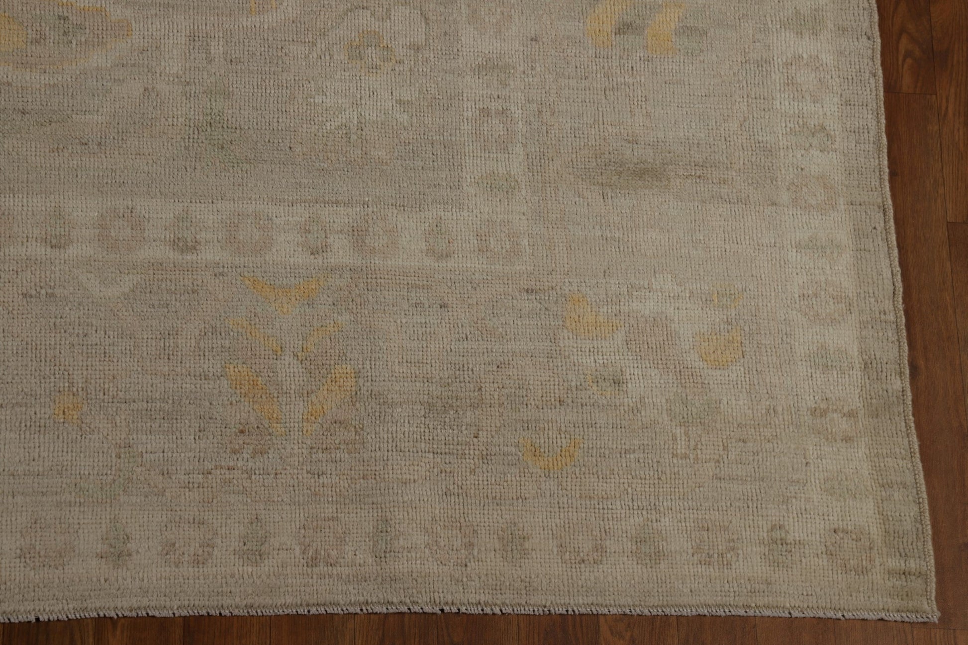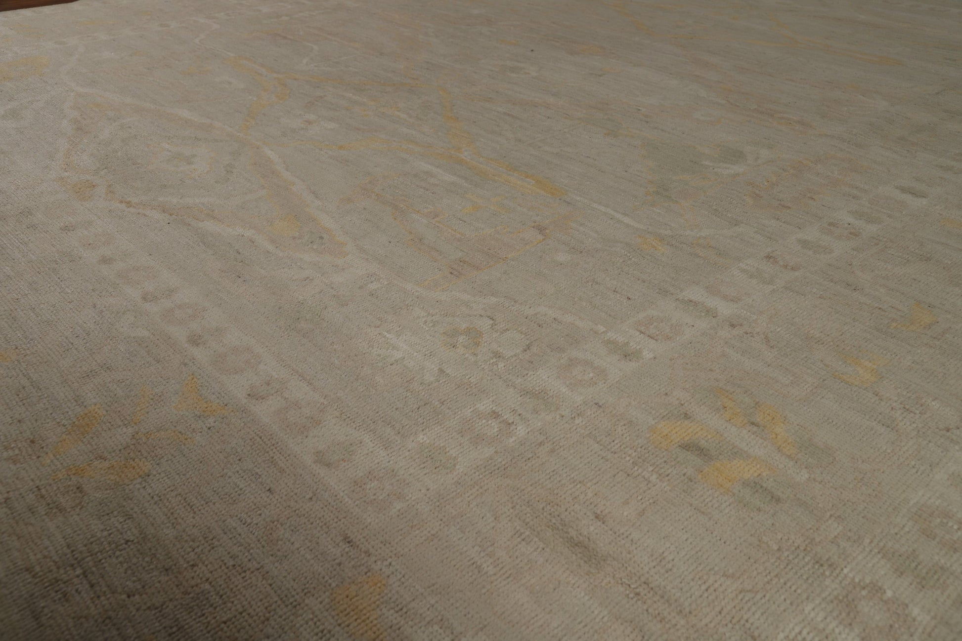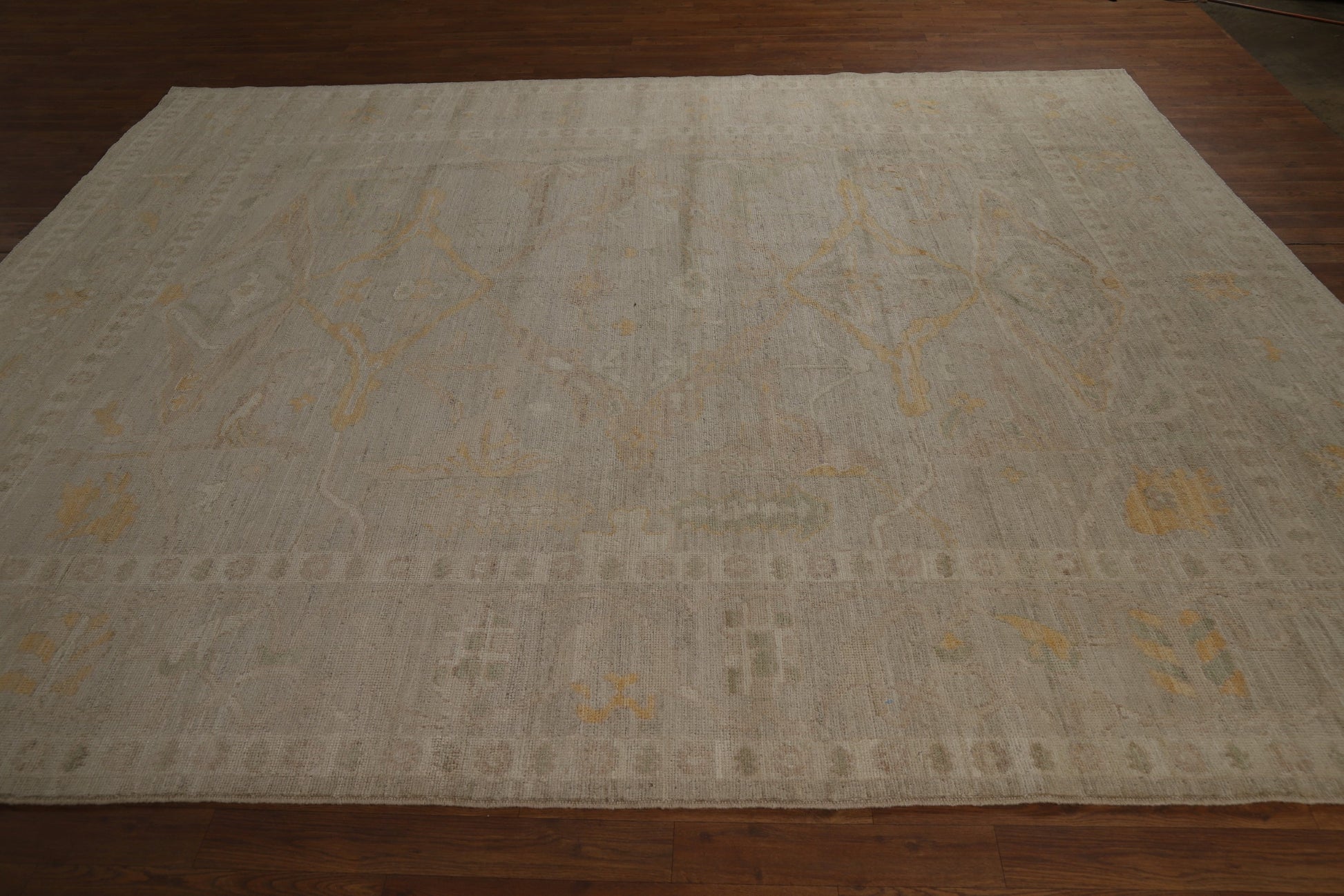 A Beautiful Genuine Turkey Oushak rug is Hand Knotted by skillful weavers in Turkey with 100% Wool Material. This rug is in New, First Quality condition. dimensions are 9' 10'' X 8' 5'' in foot and 300 X 257 in centimeter. the primary color is Beige & Ivories.