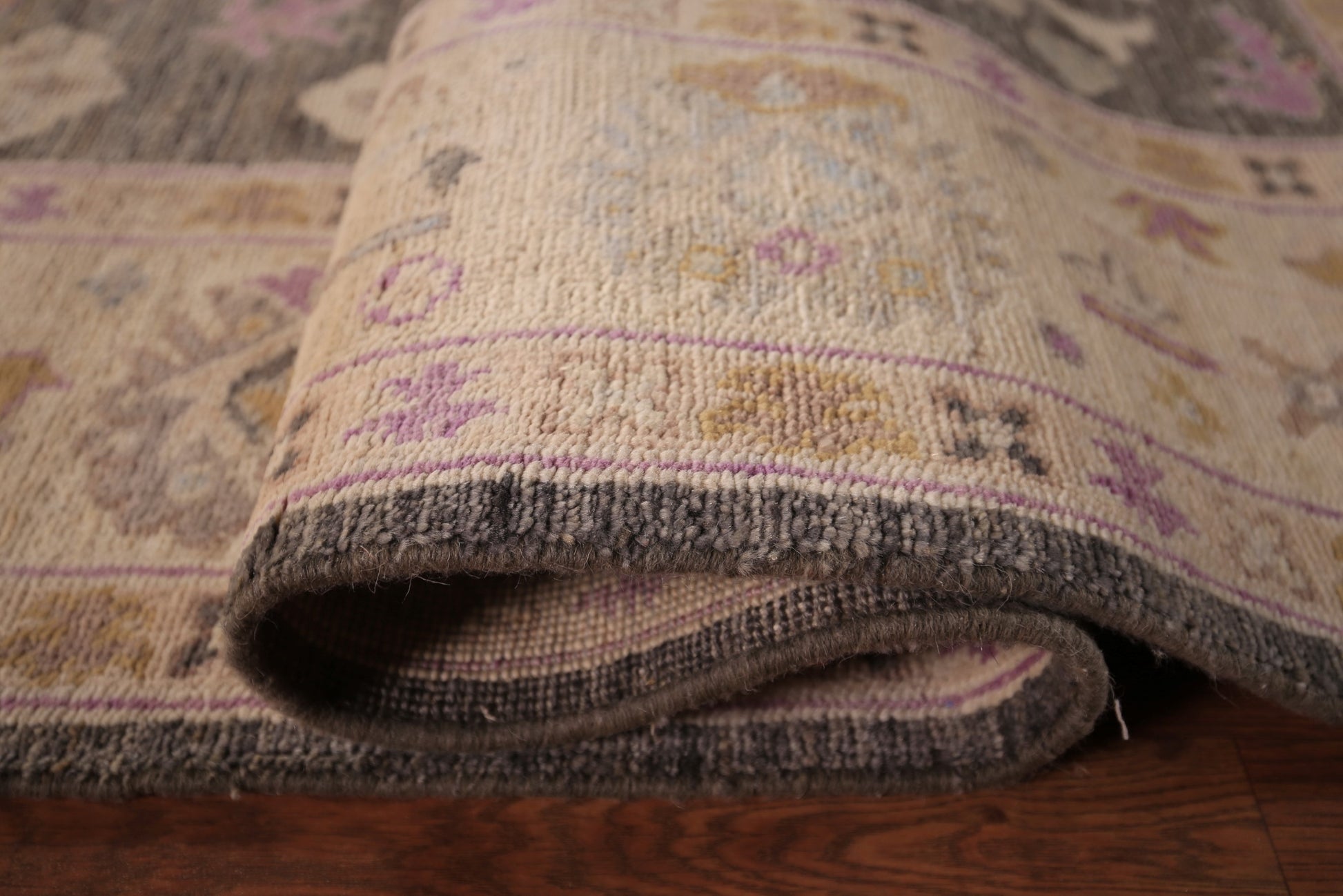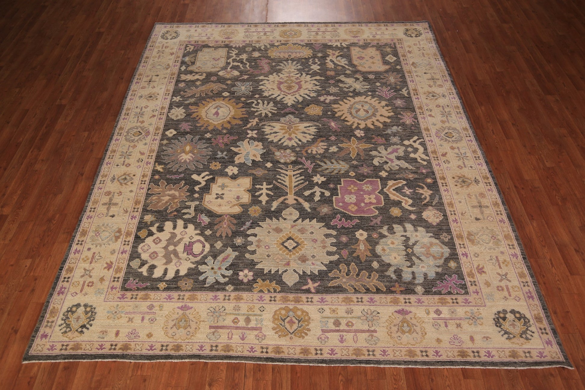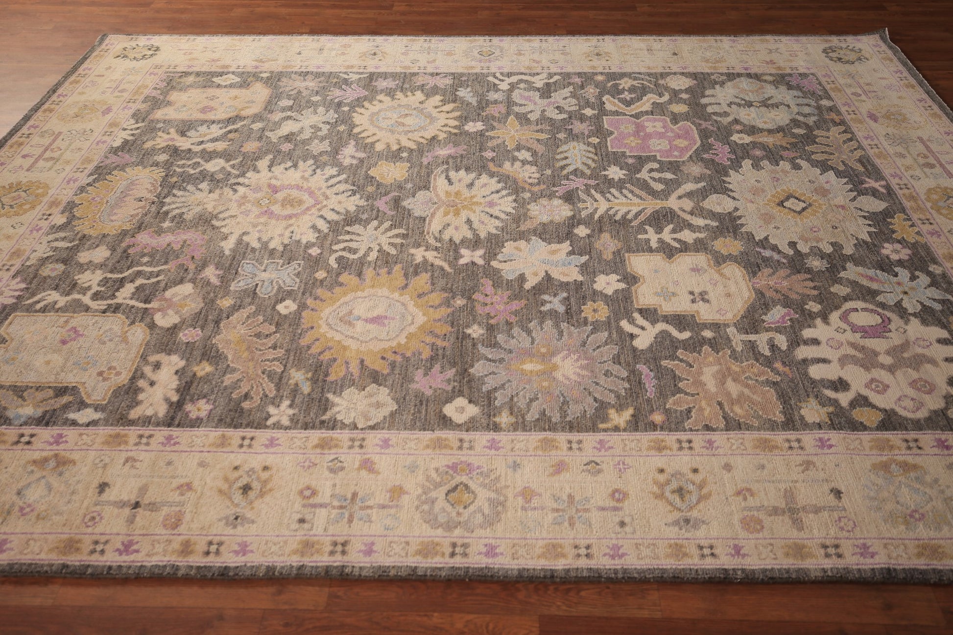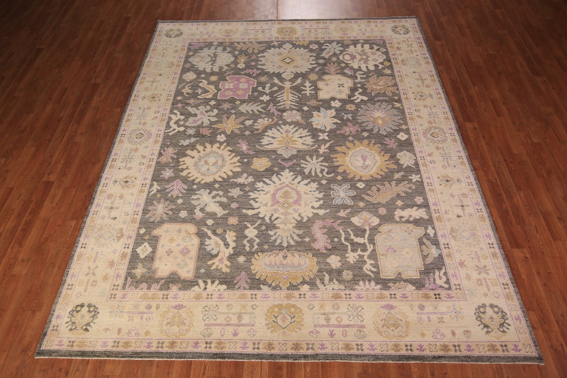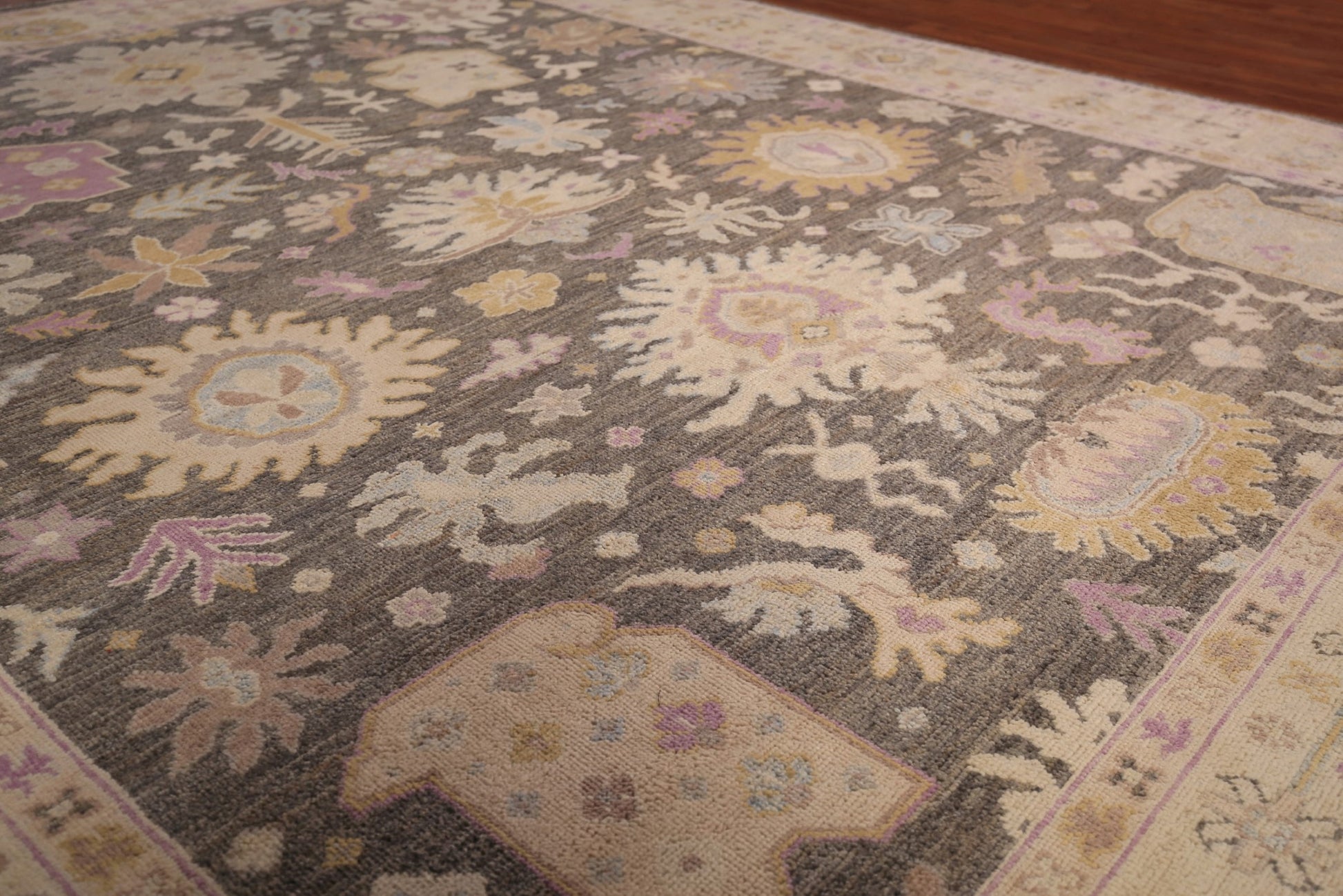 A Beautiful Genuine Turkey Oushak rug is Hand Knotted by skillful weavers in Turkey with 100% Wool Material. This rug is in New, First Quality condition. dimensions are 9' 9'' X 8' 0'' in foot and 297 X 244 in centimeter. the primary color is Greys & Charcoal.