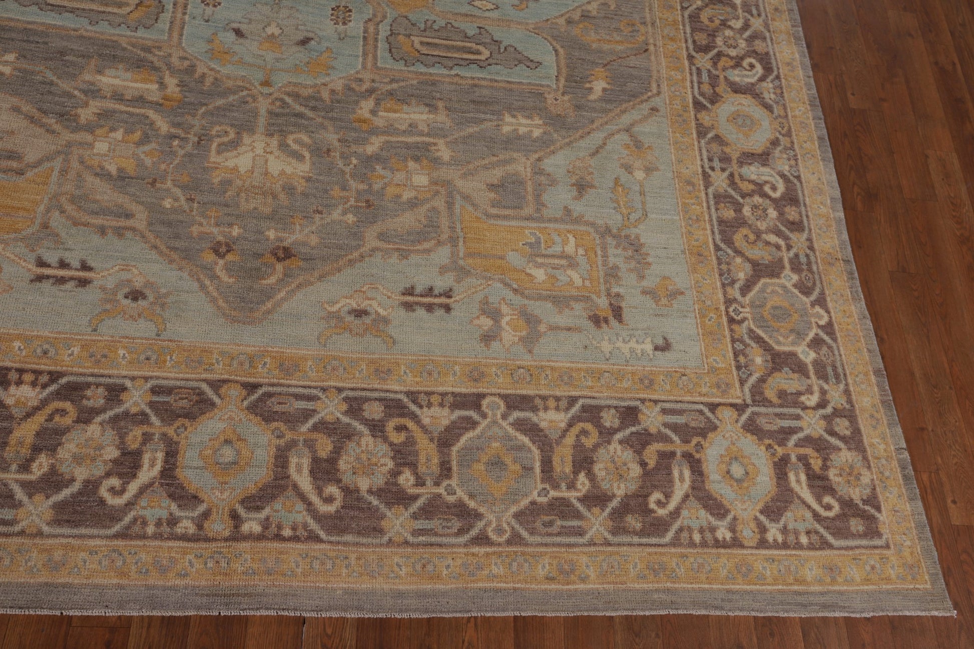 A Beautiful Genuine Turkey Oushak rug is Hand Knotted by skillful weavers in Turkey with 100% Wool Material. This rug is in New, First Quality condition. dimensions are 10' 1'' X 8' 2'' in foot and 307 X 249 in centimeter. the primary color is Greys & Charcoal.