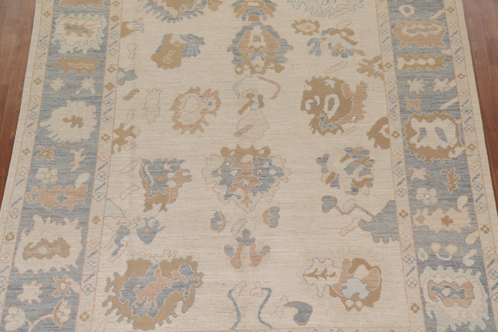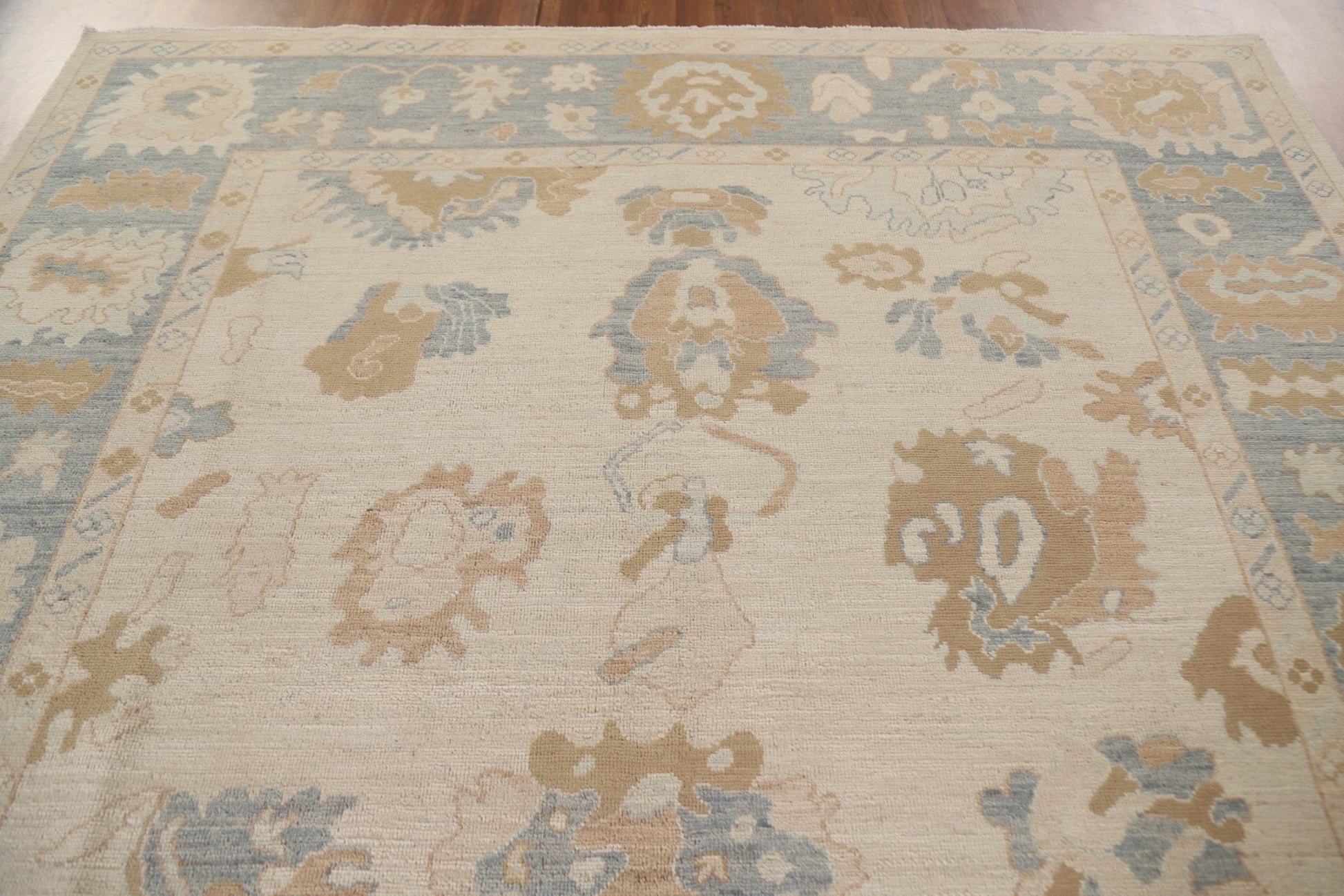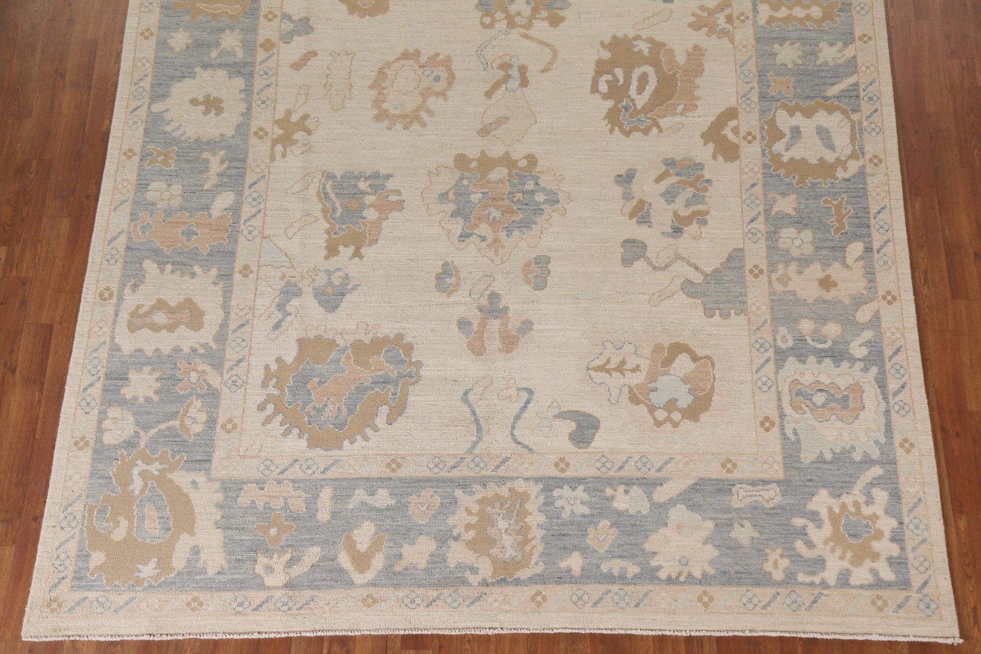 A Beautiful Genuine Turkey Oushak rug is Hand Knotted by skillful weavers in Turkey with 100% Wool Material. This rug is in New, First Quality condition. dimensions are 9' 11'' X 8' 0'' in foot and 302 X 244 in centimeter. the primary color is Beige & Ivories.