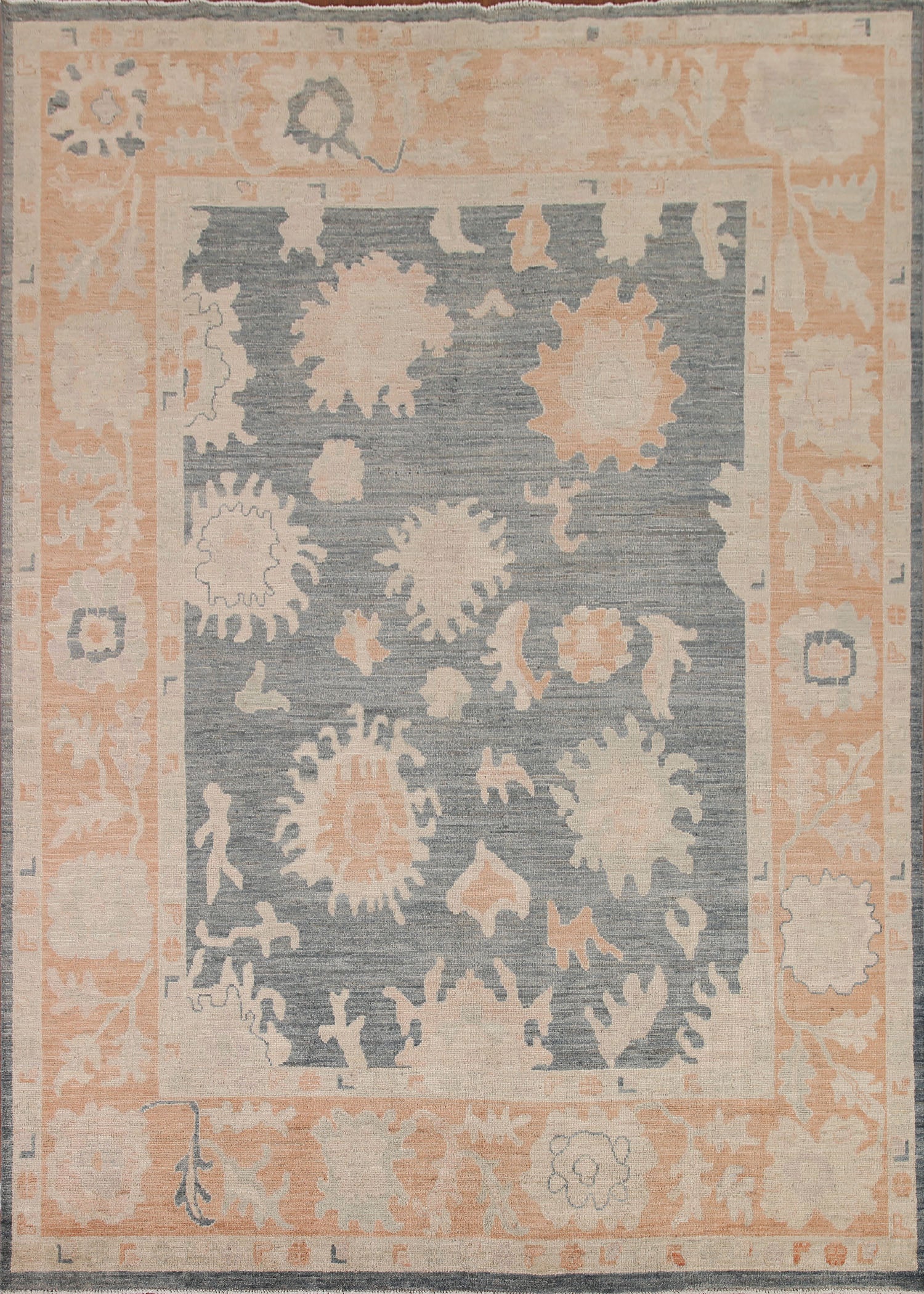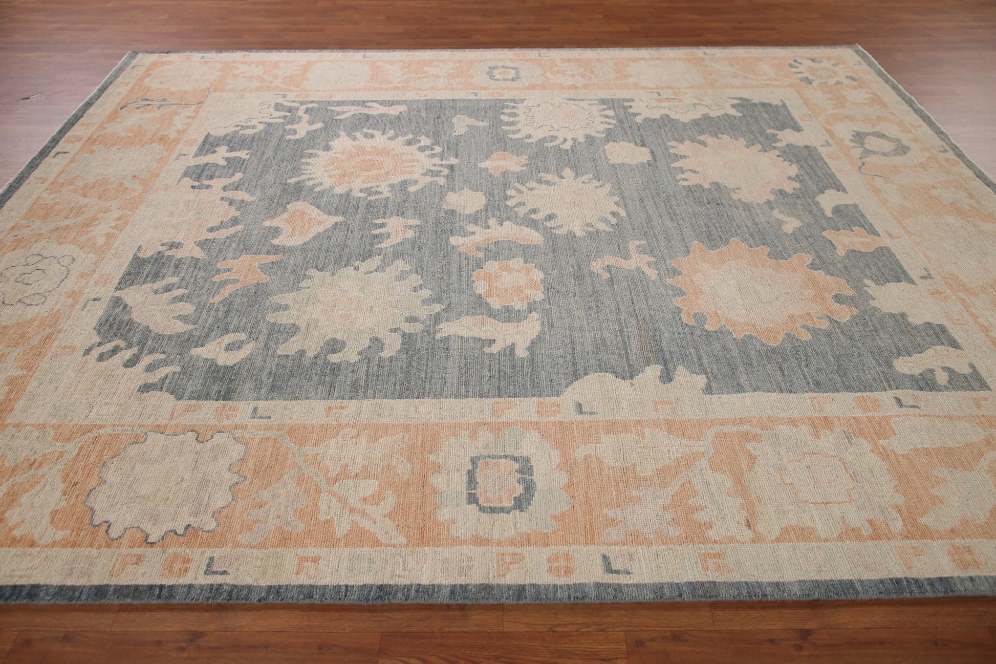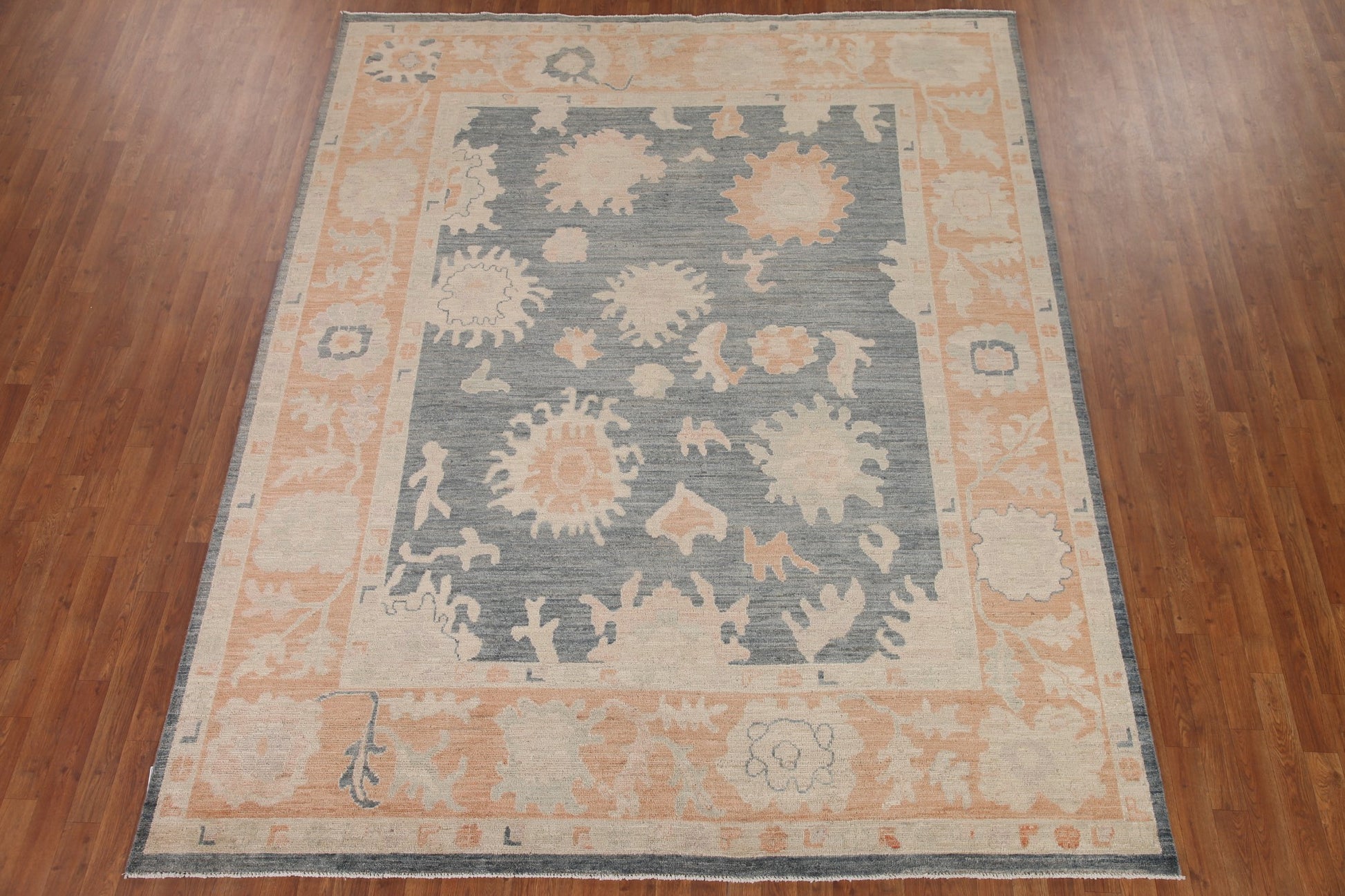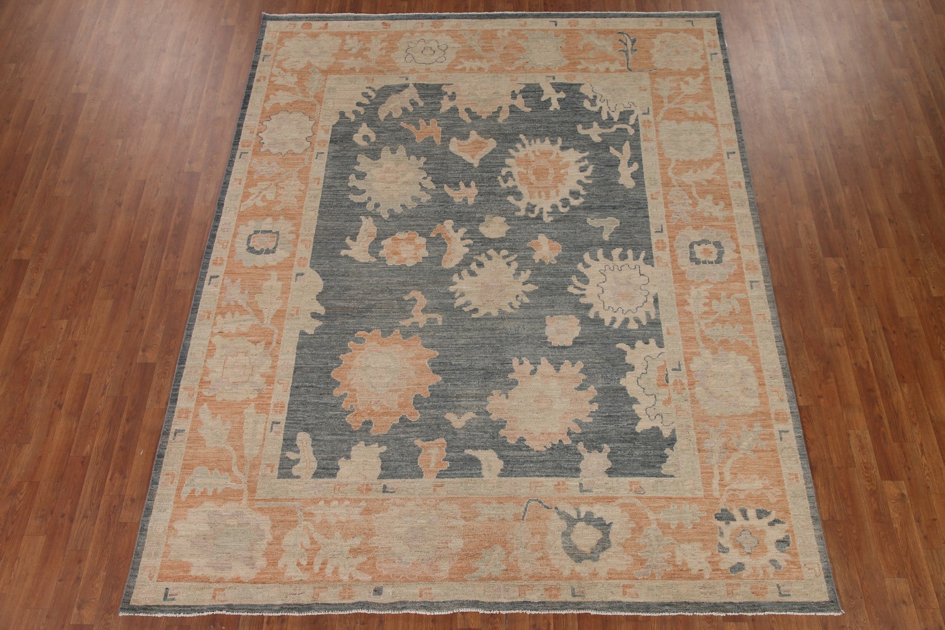 A Beautiful Genuine Turkey Oushak rug is Hand Knotted by skillful weavers in Turkey with 100% Wool Material. This rug is in New, First Quality condition. dimensions are 10' 0'' X 8' 1'' in foot and 305 X 246 in centimeter. the primary color is Greys & Charcoal.