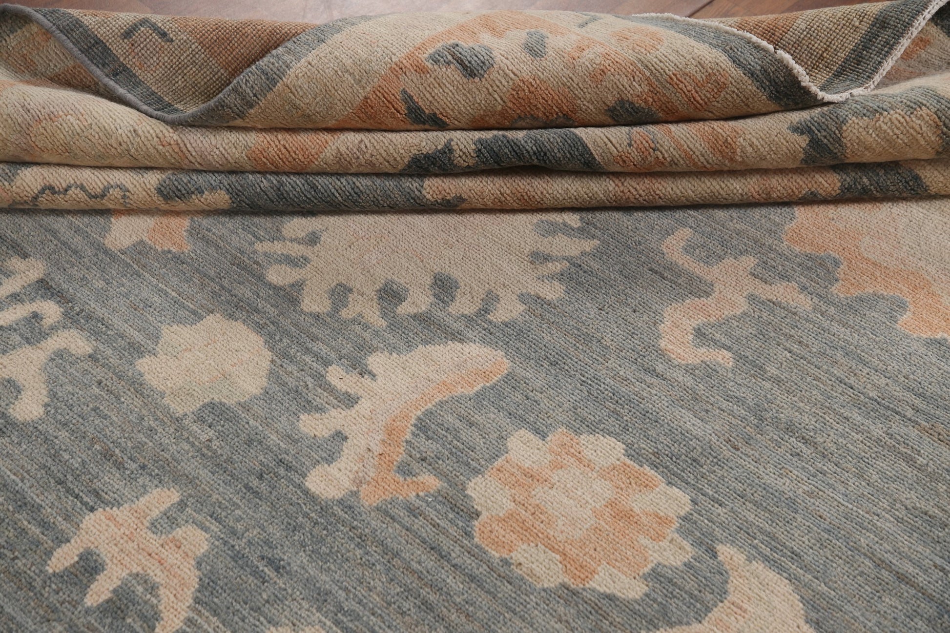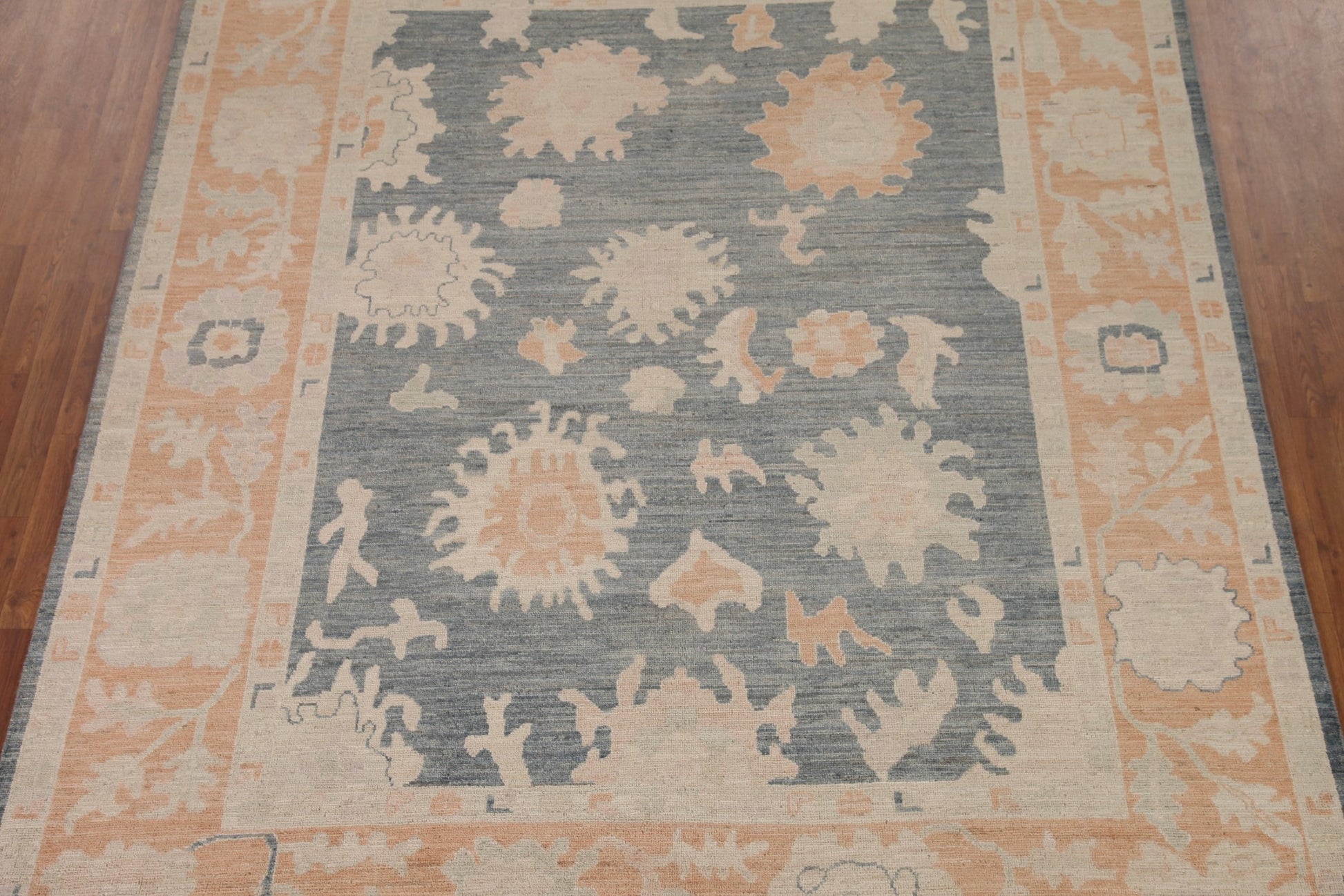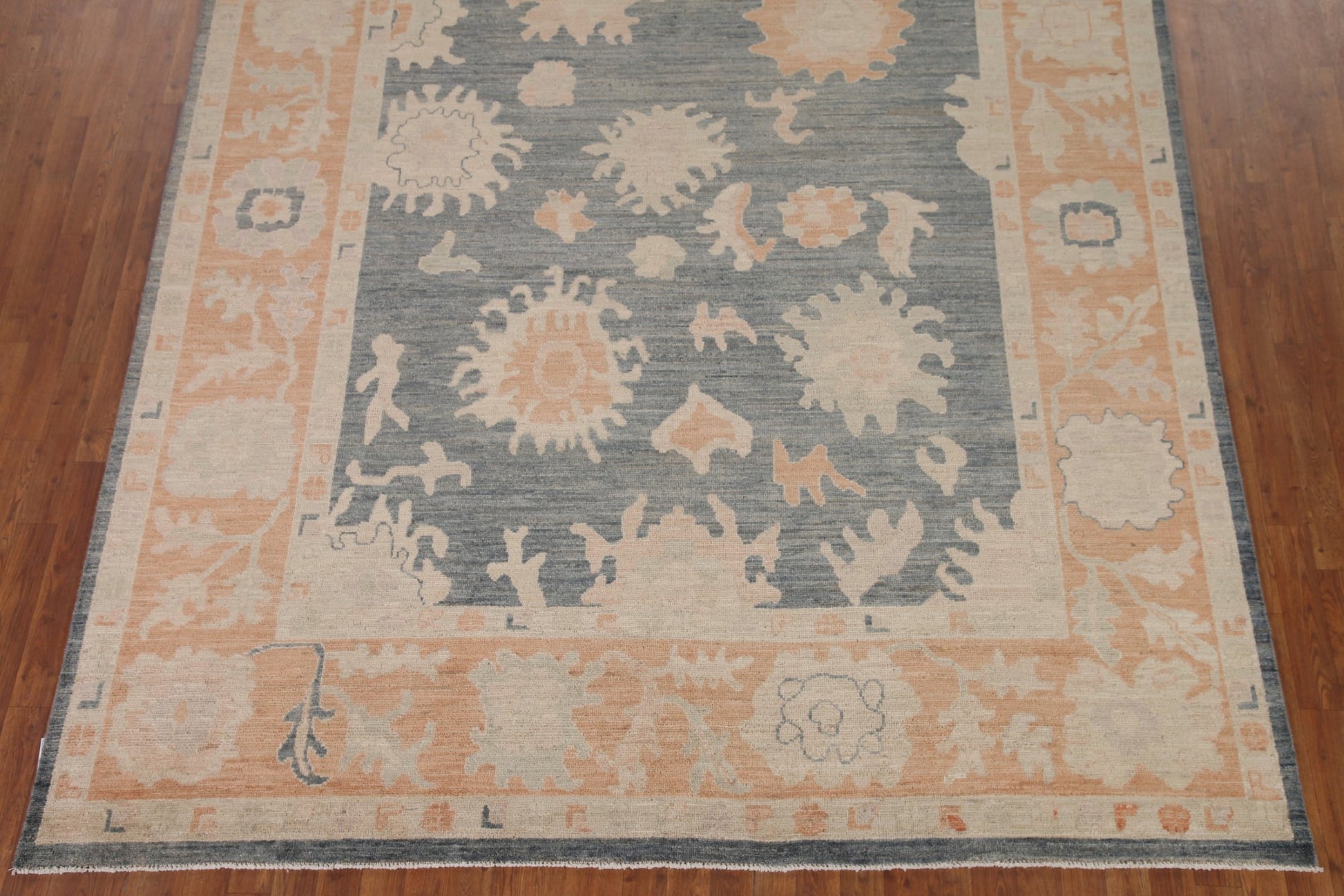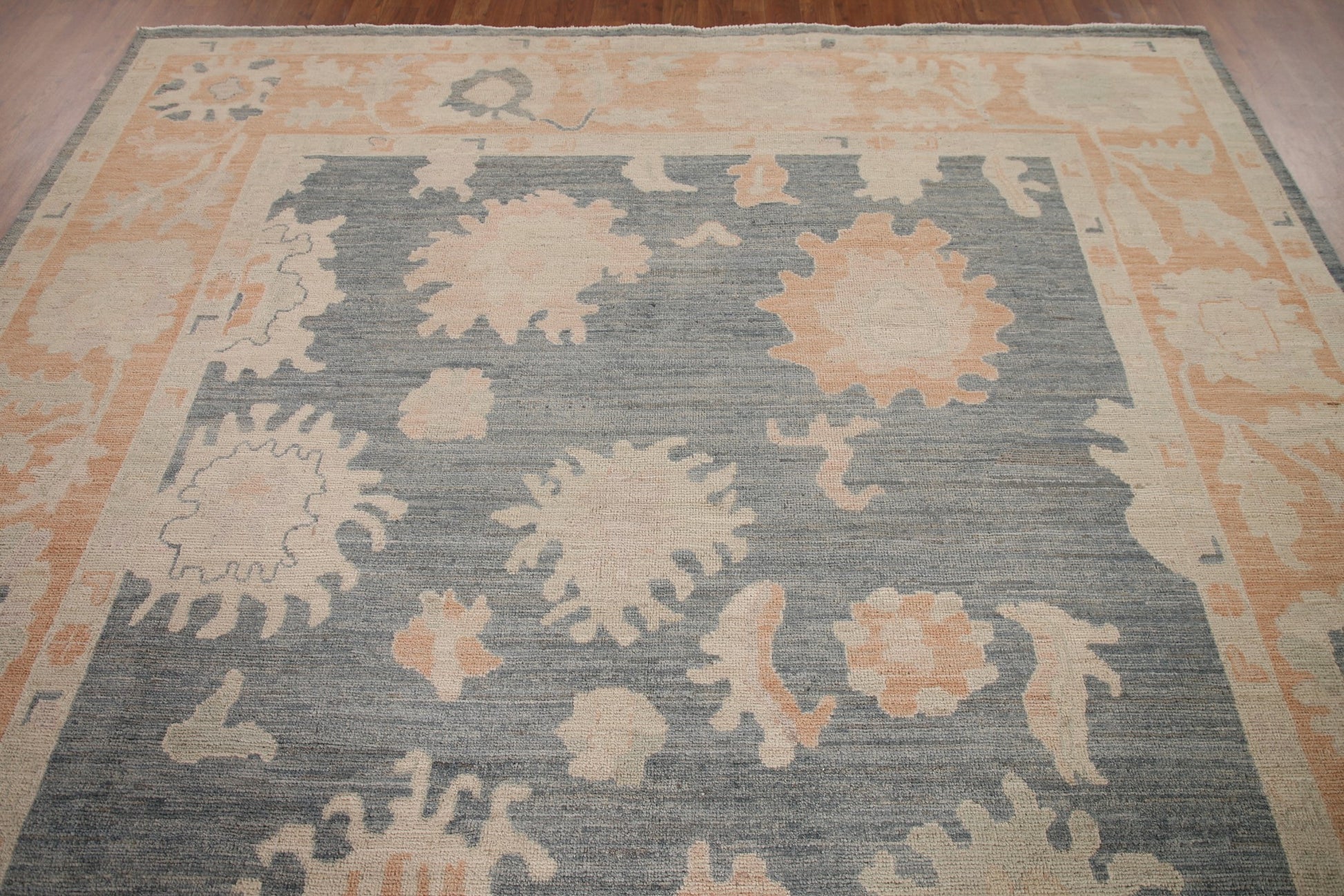 A Beautiful Genuine Turkey Oushak rug is Hand Knotted by skillful weavers in Turkey with 100% Wool Material. This rug is in New, First Quality condition. dimensions are 10' 0'' X 8' 1'' in foot and 305 X 246 in centimeter. the primary color is Greys & Charcoal.