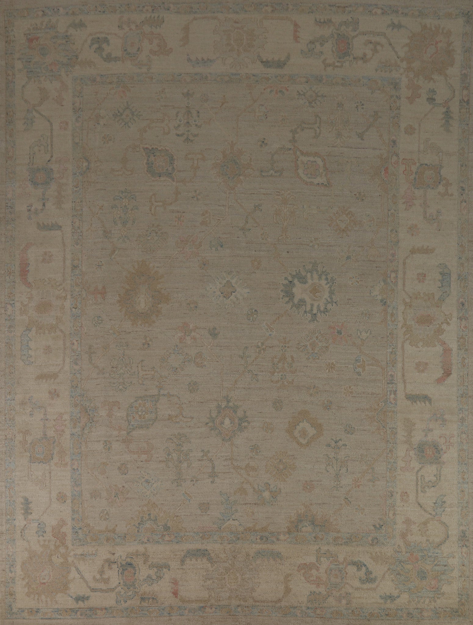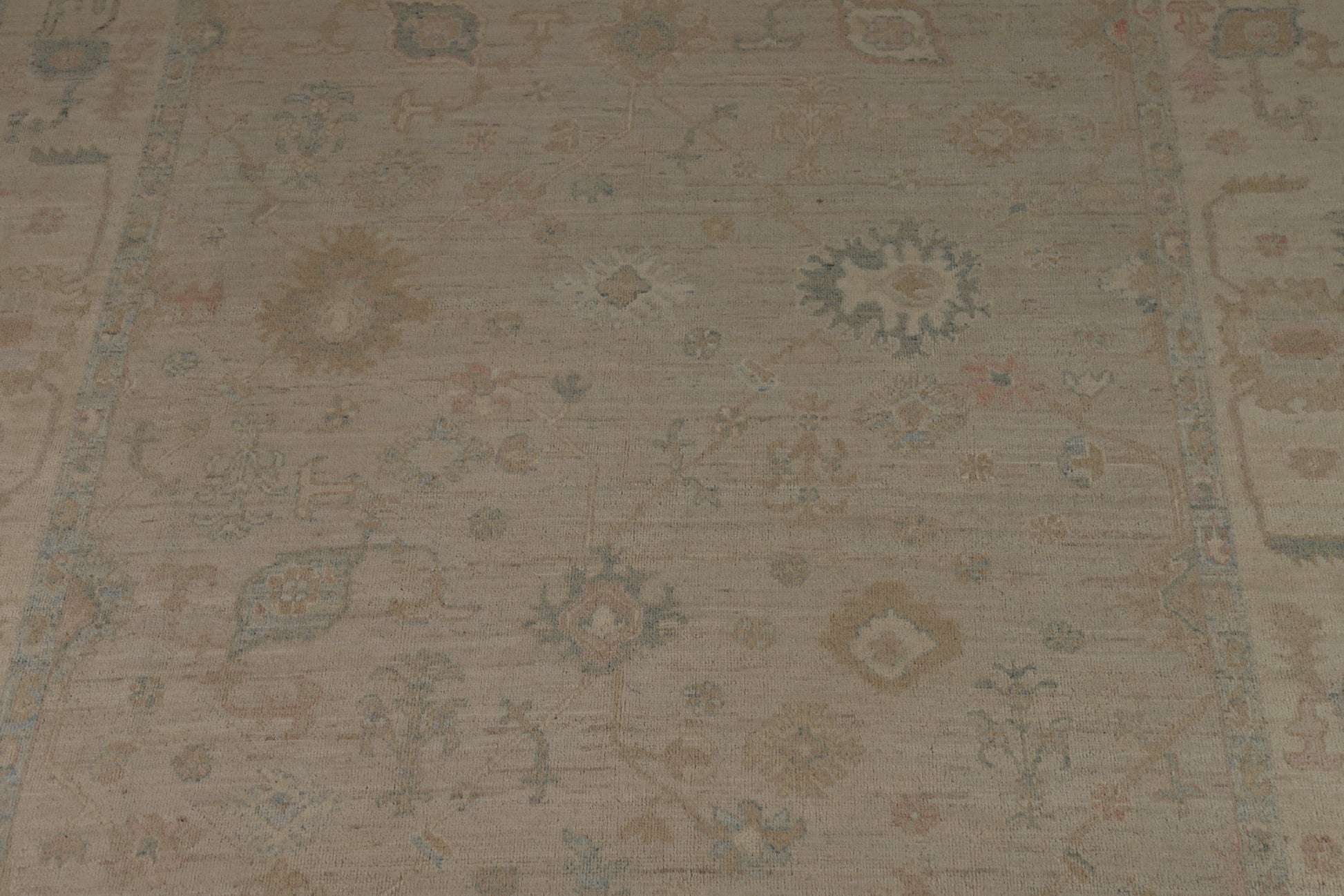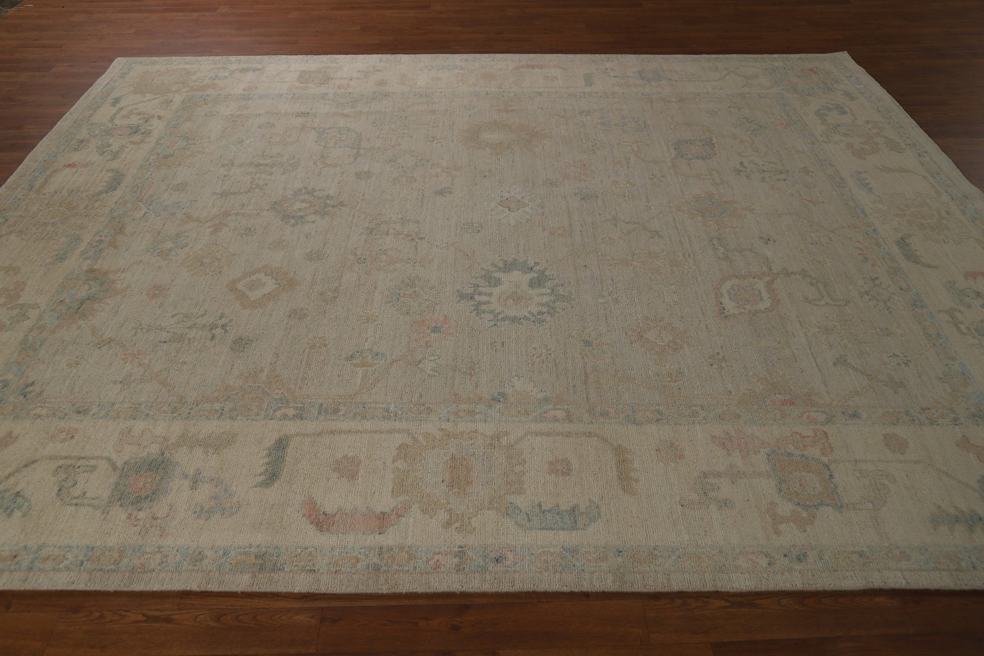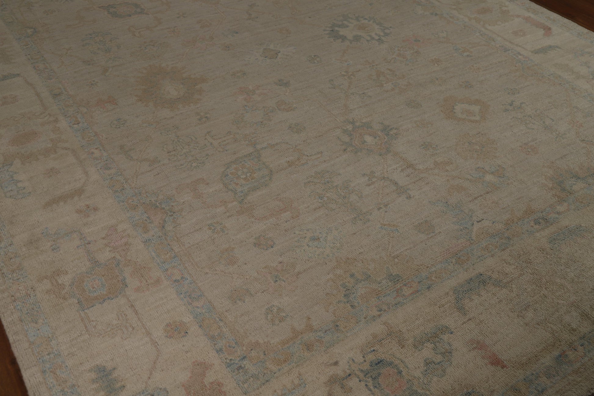 A Beautiful Genuine Turkey Oushak rug is Hand Knotted by skillful weavers in Turkey with 100% Wool Material. This rug is in New, First Quality condition. dimensions are 9' 10'' X 7' 11'' in foot and 300 X 241 in centimeter. the primary color is Beige & Ivories.