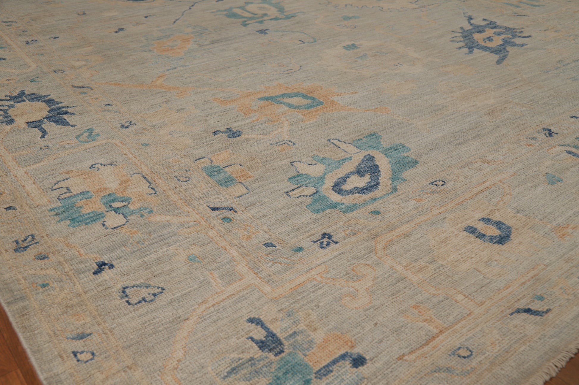 A Beautiful Genuine Turkey Oushak rug is Hand Knotted by skillful weavers in Turkey with 100% Wool Material. This rug is in New, First Quality condition. dimensions are 10' 4'' X 8' 1'' in foot and  315 X 246 in centimeter. the primary color is Greys & Charcoal.