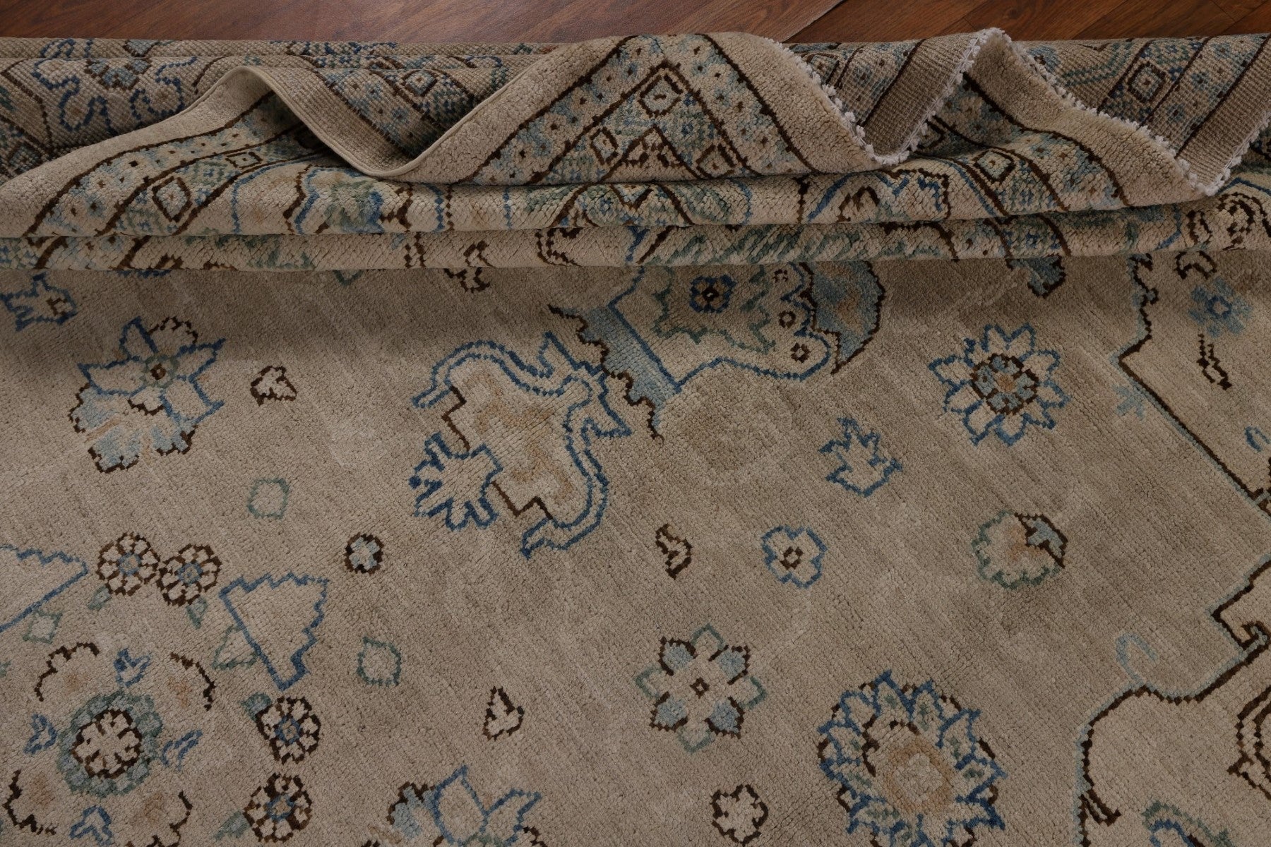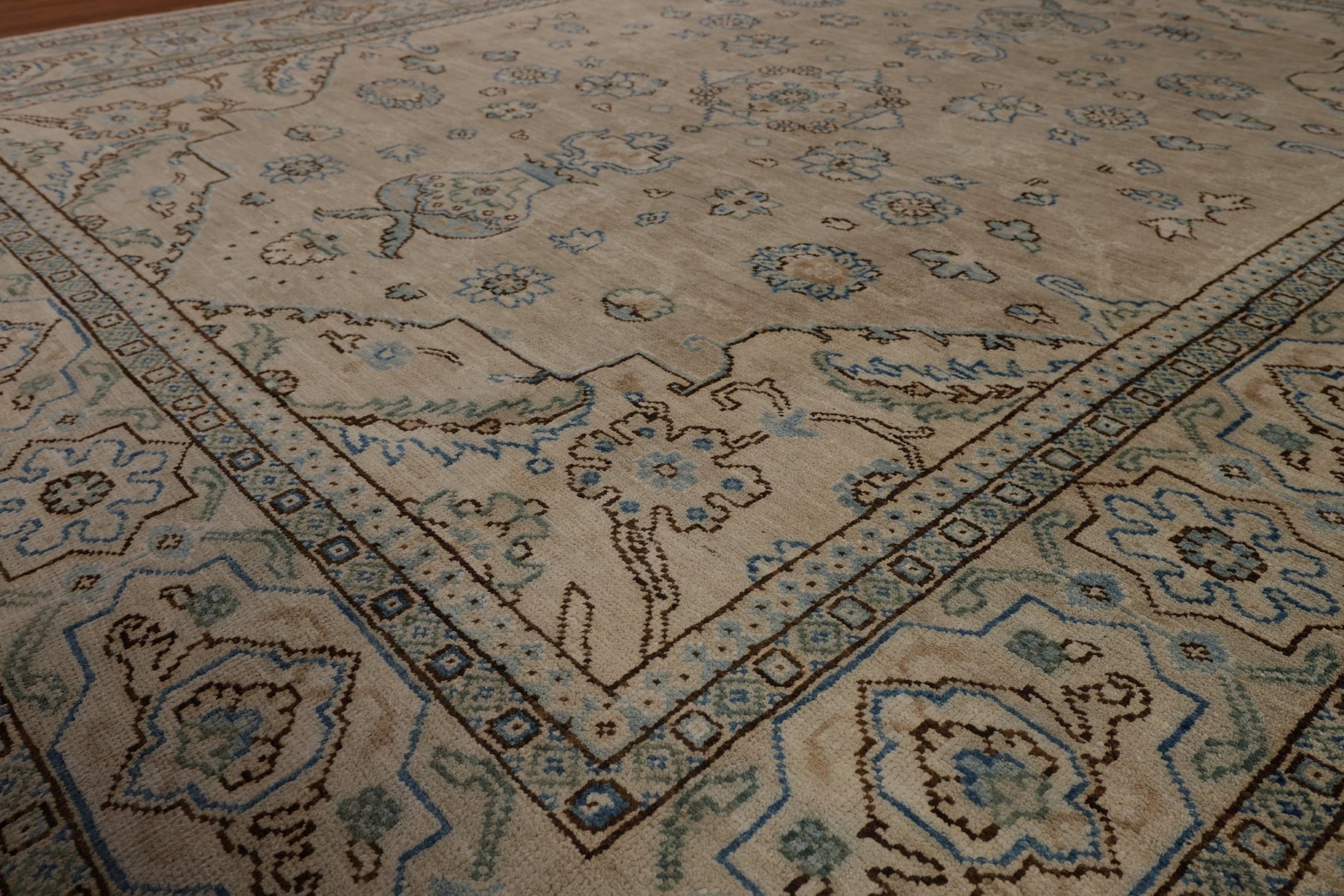 A Beautiful Genuine Turkey Oushak rug is Hand Knotted by skillful weavers in Turkey with 100% Wool Material. This rug is in New, First Quality condition. dimensions are 9' 6'' X 7' 10'' in foot and  290 X 239 in centimeter. the primary color is Beige & Ivories.
