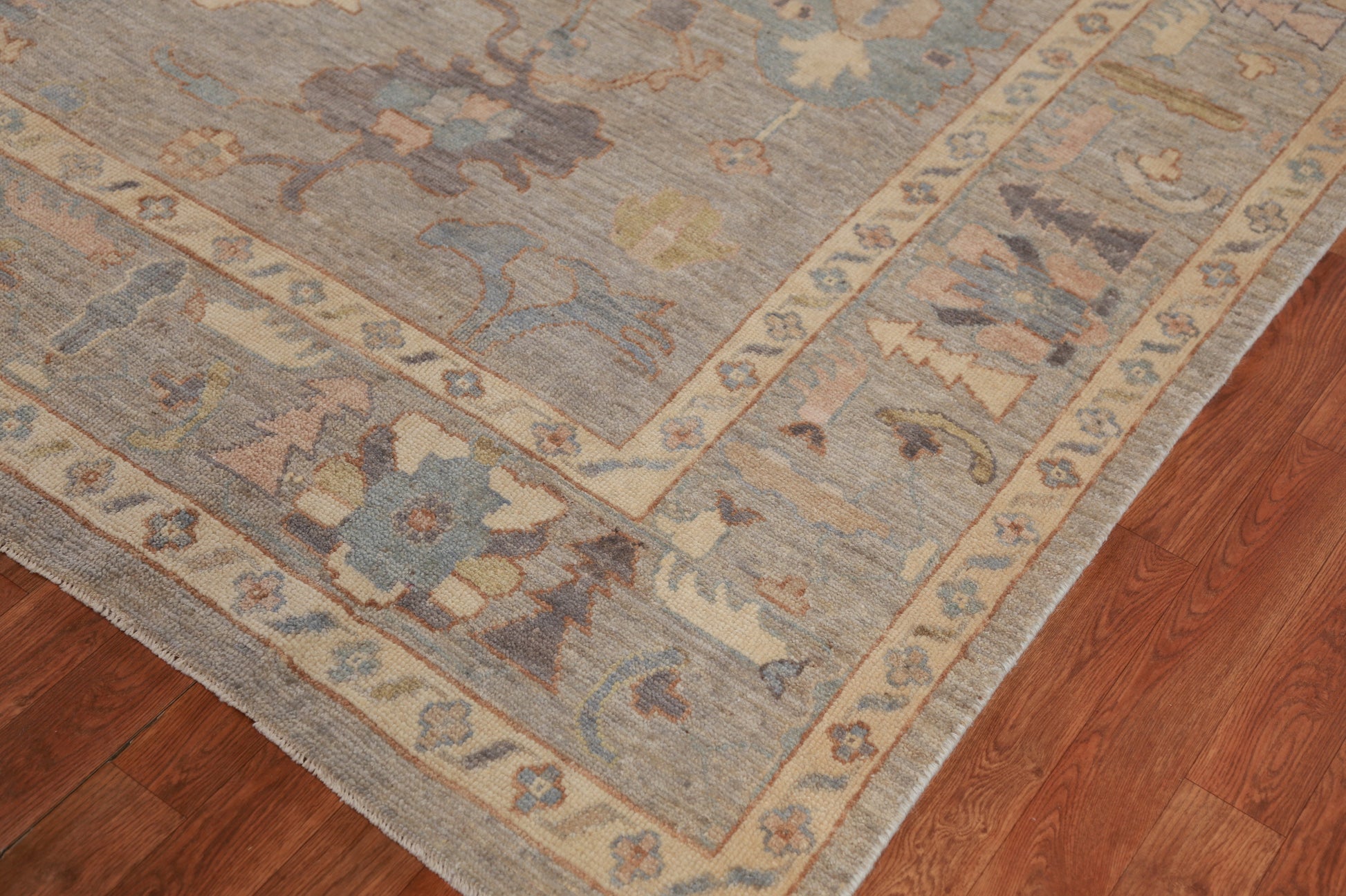 A Beautiful Genuine Turkey Oushak rug is Hand Knotted by skillful weavers in Turkey with 100% Wool Material. This rug is in New, First Quality condition. dimensions are 9' 8'' X 8' 4'' in foot and 295 X 254 in centimeter. the primary color is Greys & Charcoal.
