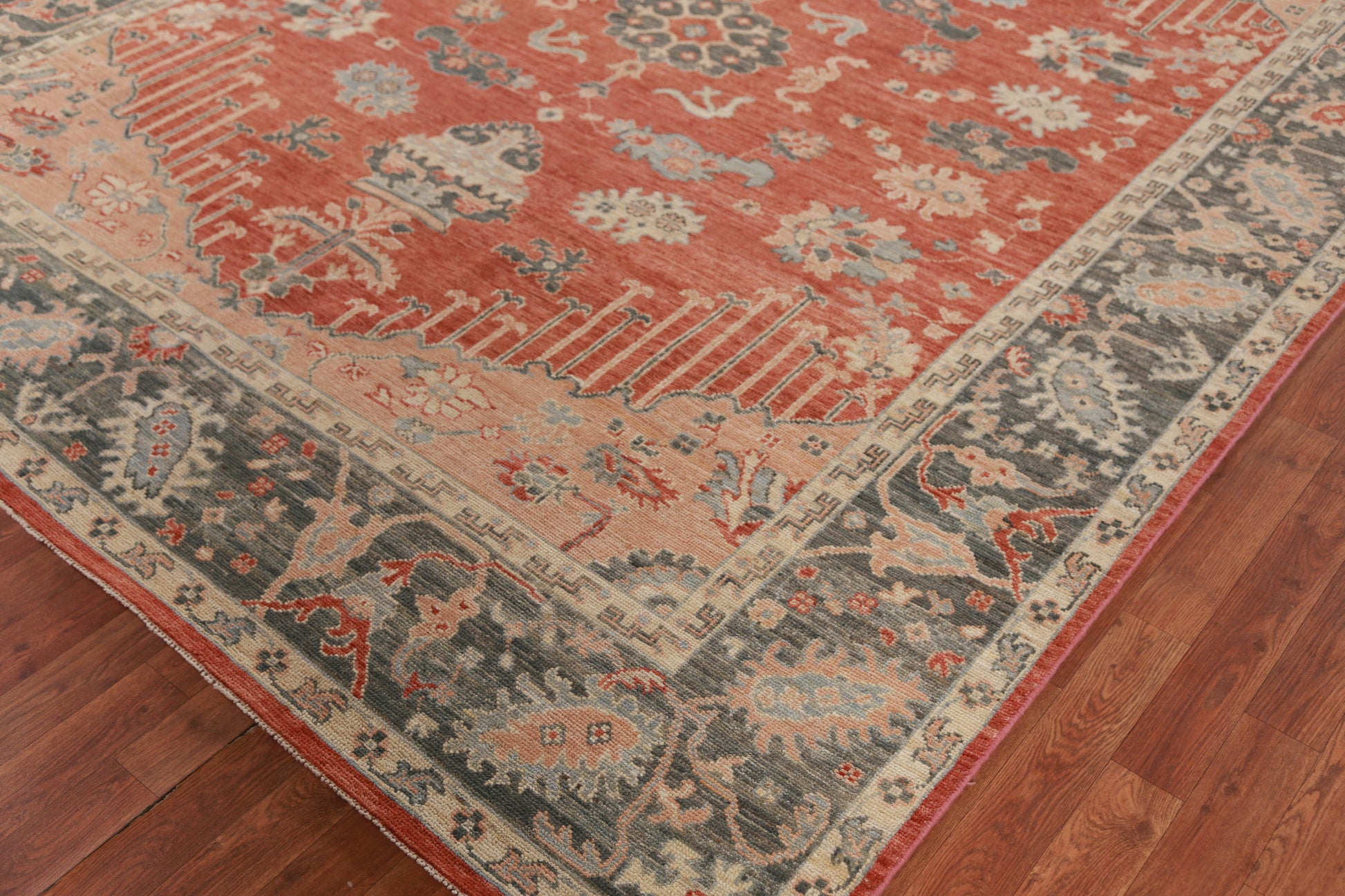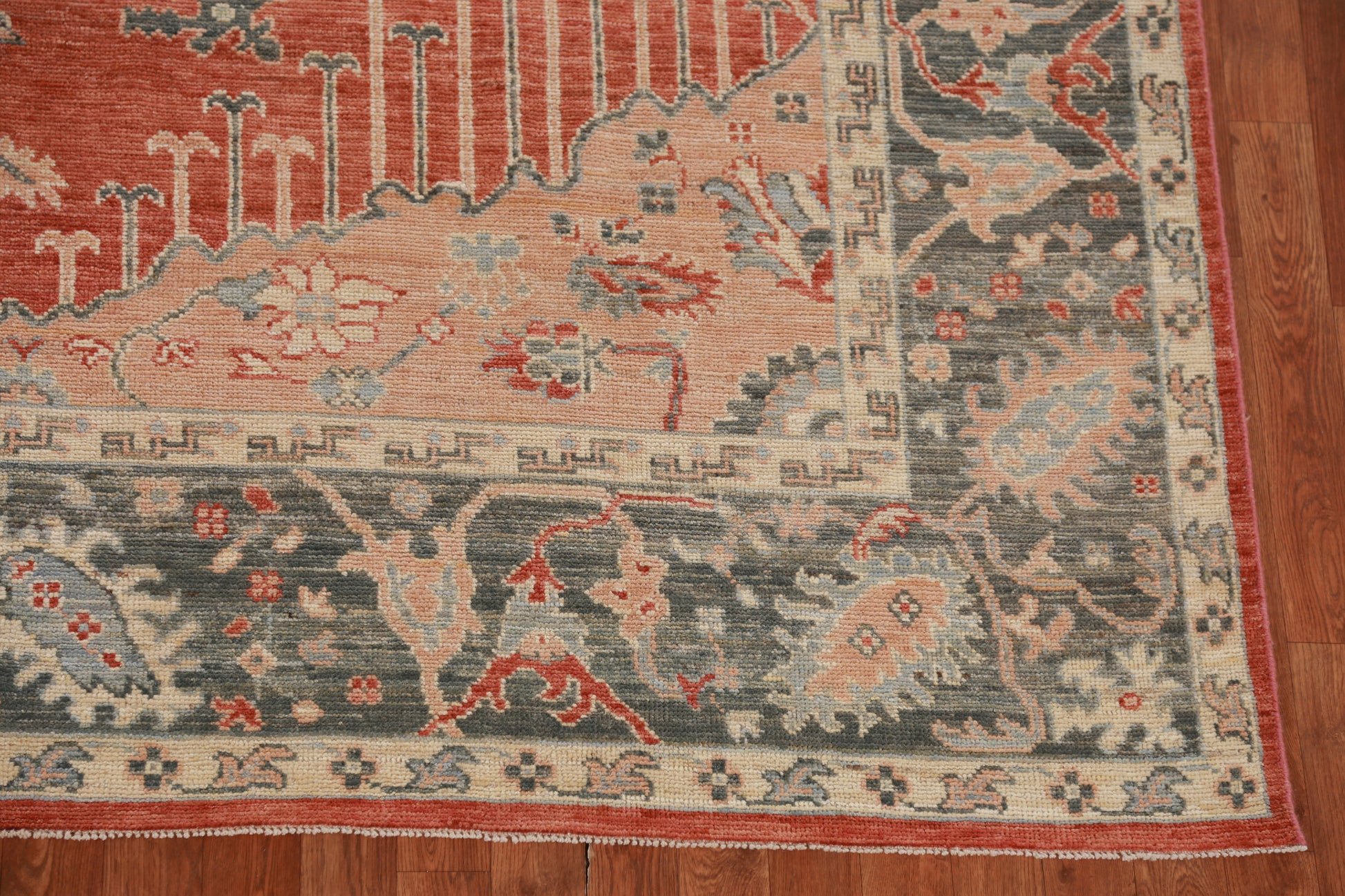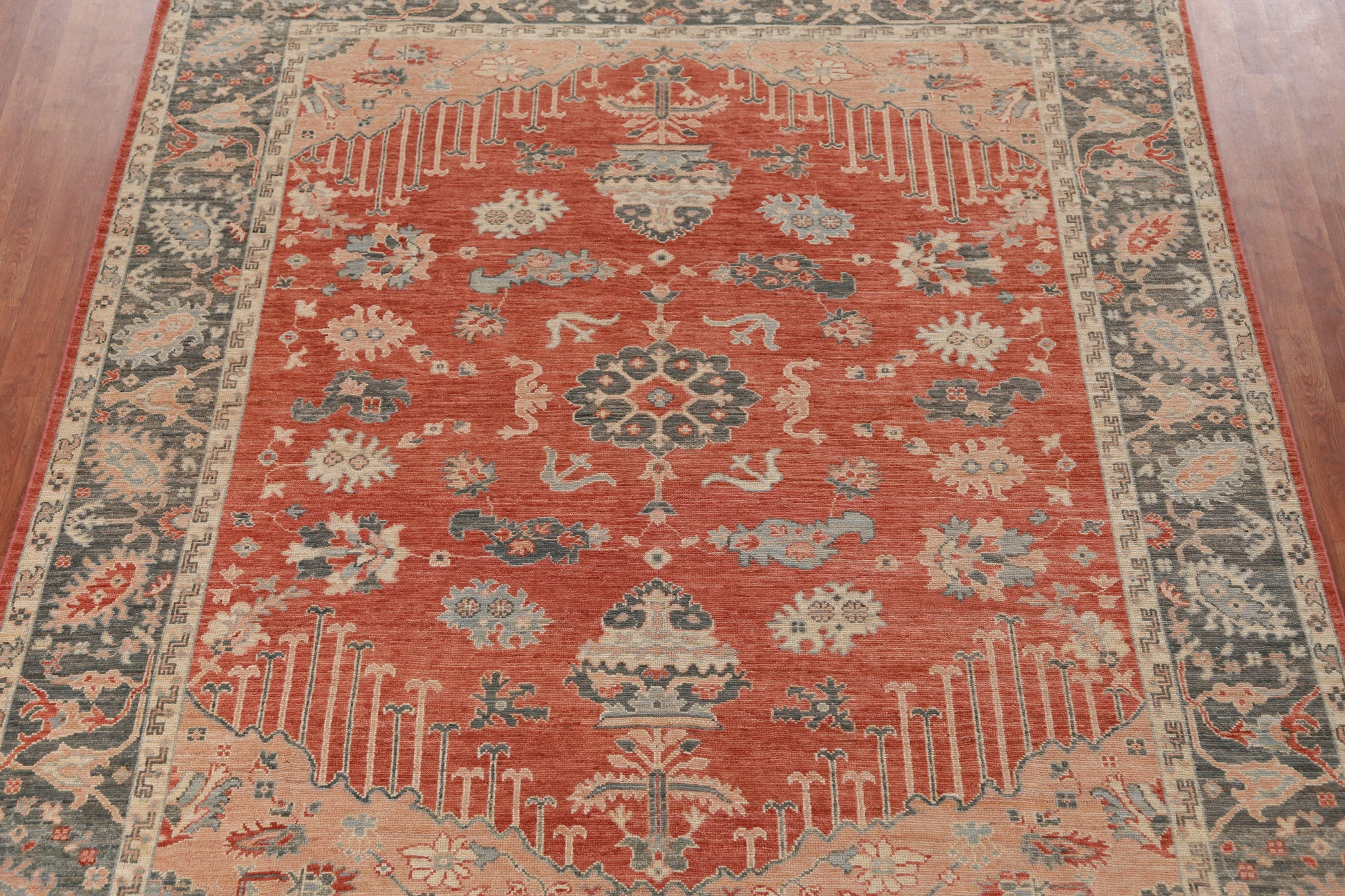 A Beautiful Genuine Turkey Oushak rug is Hand Knotted by skillful weavers in Turkey with 100% Wool Material. This rug is in New, First Quality condition. dimensions are 10' 2'' X 8' 3'' in foot and 310 X 251 in centimeter. the primary color is Oranges & Rust.