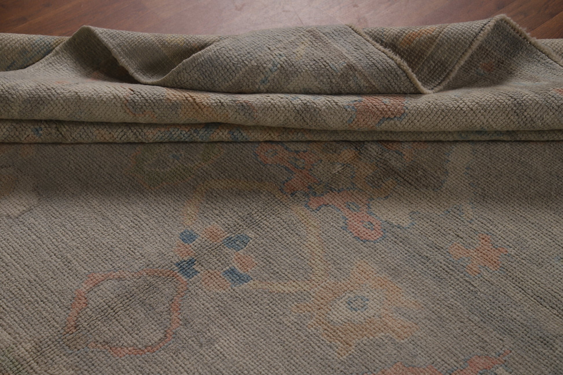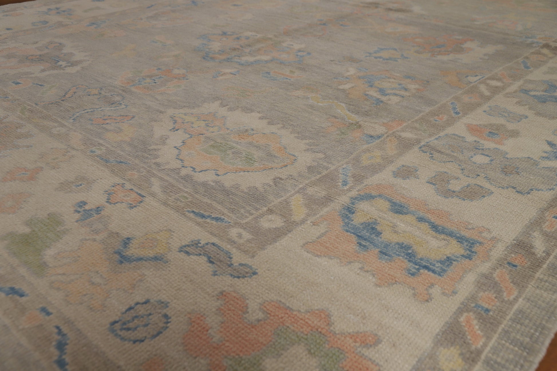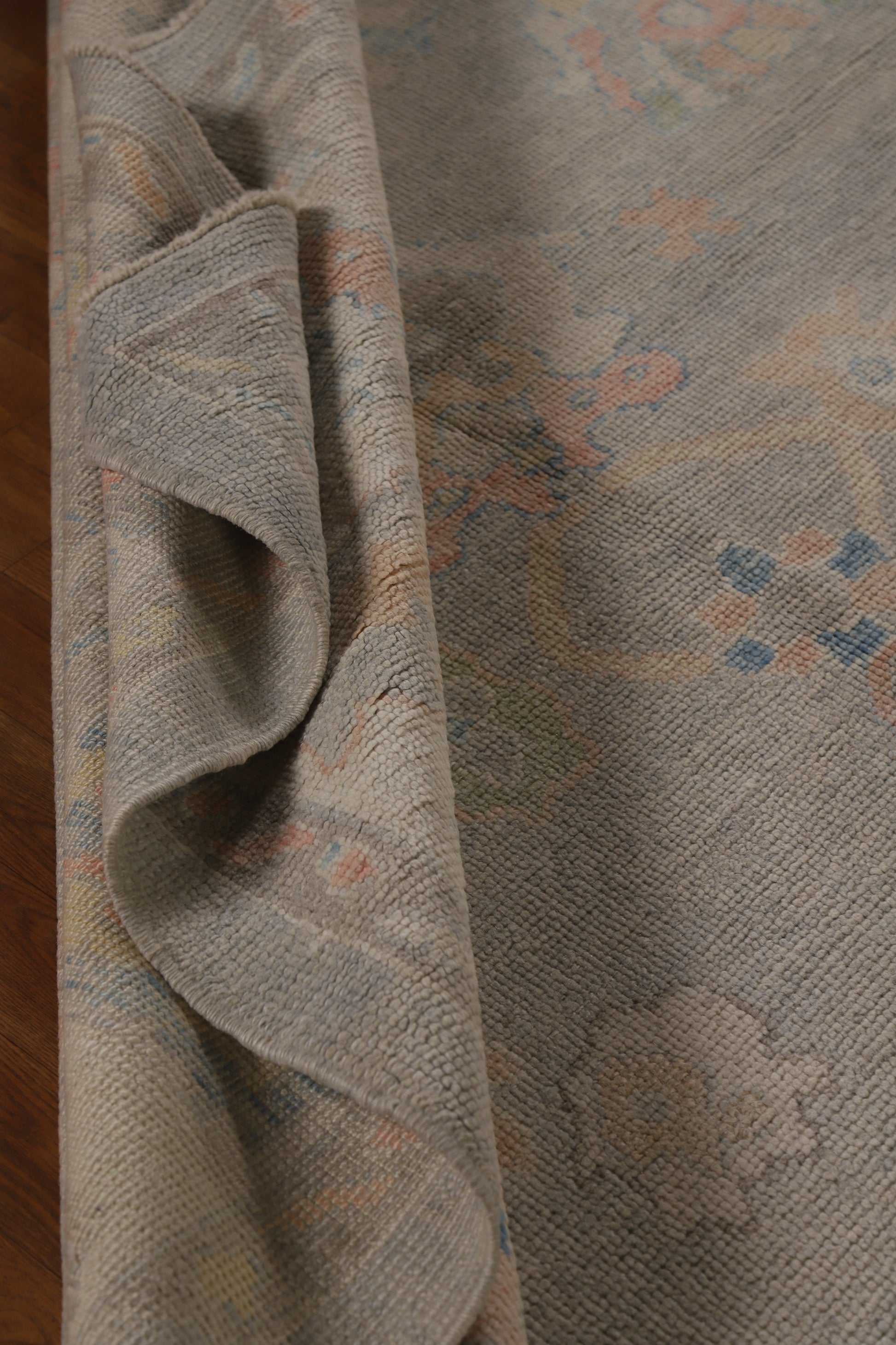 A Beautiful Genuine Turkey Oushak rug is Hand Knotted by skillful weavers in Turkey with 100% Wool Material. This rug is in New, First Quality condition. dimensions are 9' 8'' X 7' 10'' in foot and 295 X 239 in centimeter. the primary color is Greys & Charcoal.