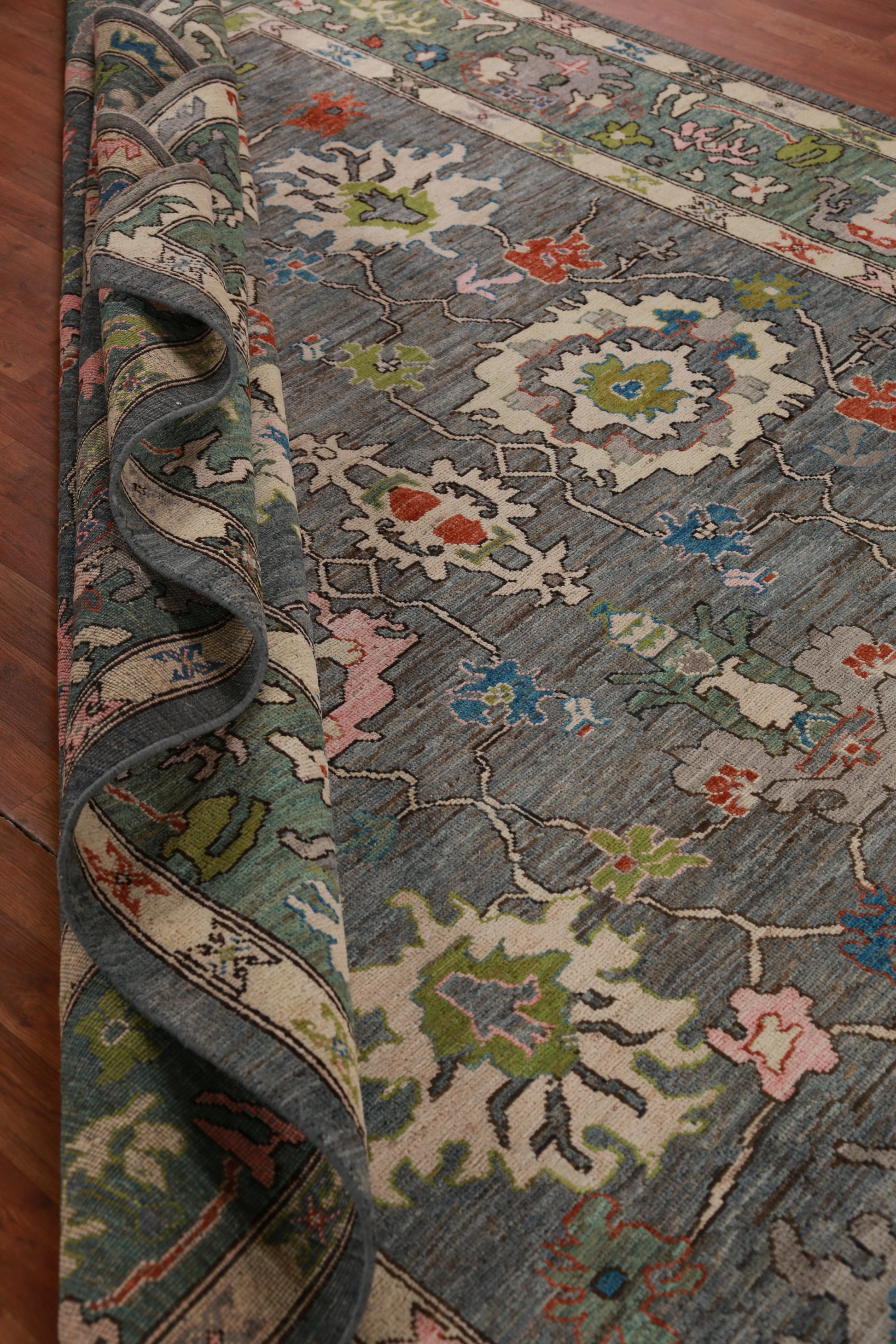 A Beautiful Genuine Turkey Oushak rug is Hand Knotted by skillful weavers in Turkey with 100% Wool Material. This rug is in New, First Quality condition. dimensions are 10' 4'' X 8' 0'' in foot and 315 X 244 in centimeter. the primary color is Greys & Charcoal.