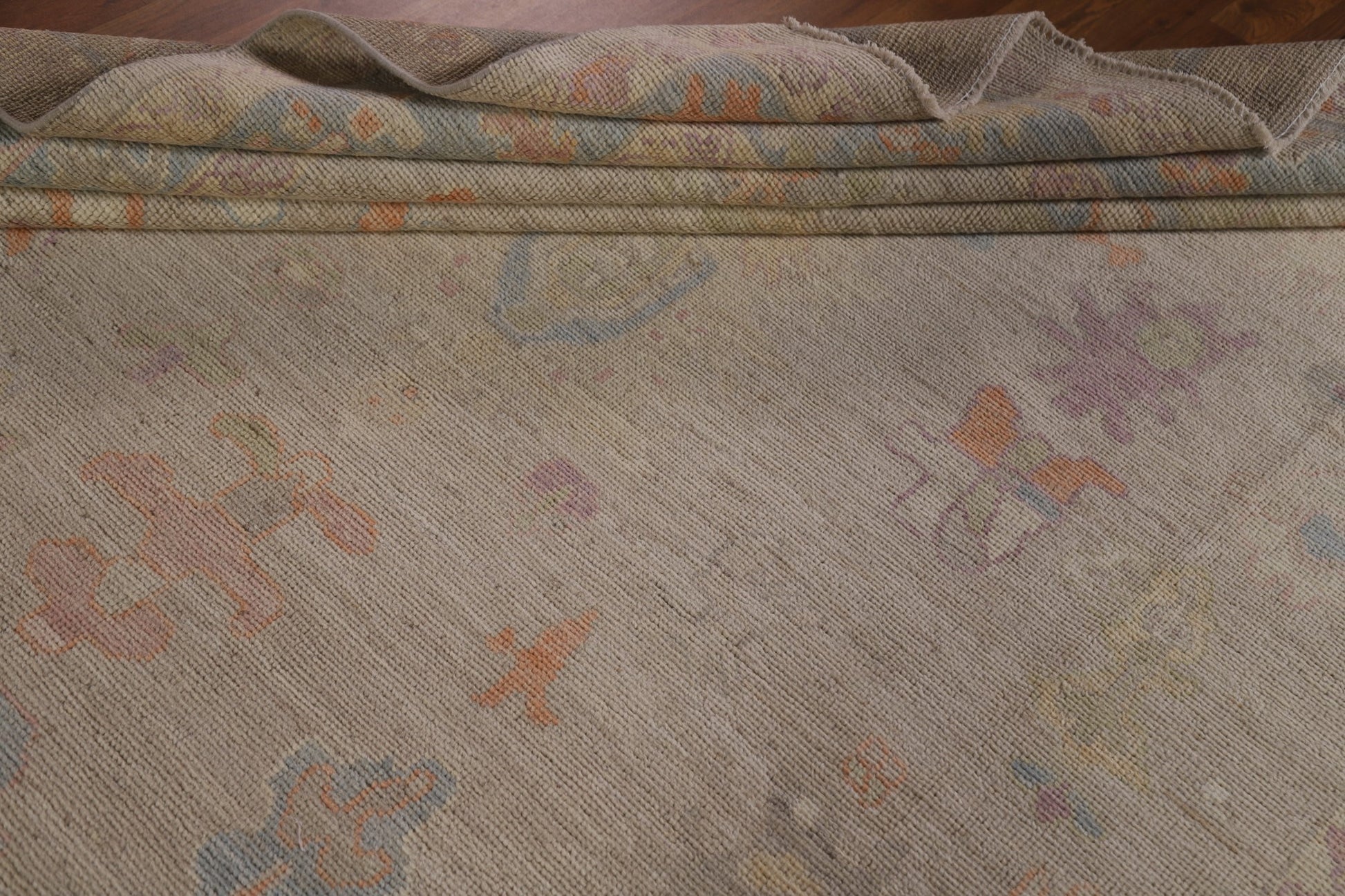 A Beautiful Genuine Turkey Oushak rug is Hand Knotted by skillful weavers in Turkey with 100% Wool Material. This rug is in New, First Quality condition. dimensions are 10' 1'' X 7' 10'' in foot and 307 X 239 in centimeter. the primary color is Beige & Ivories.