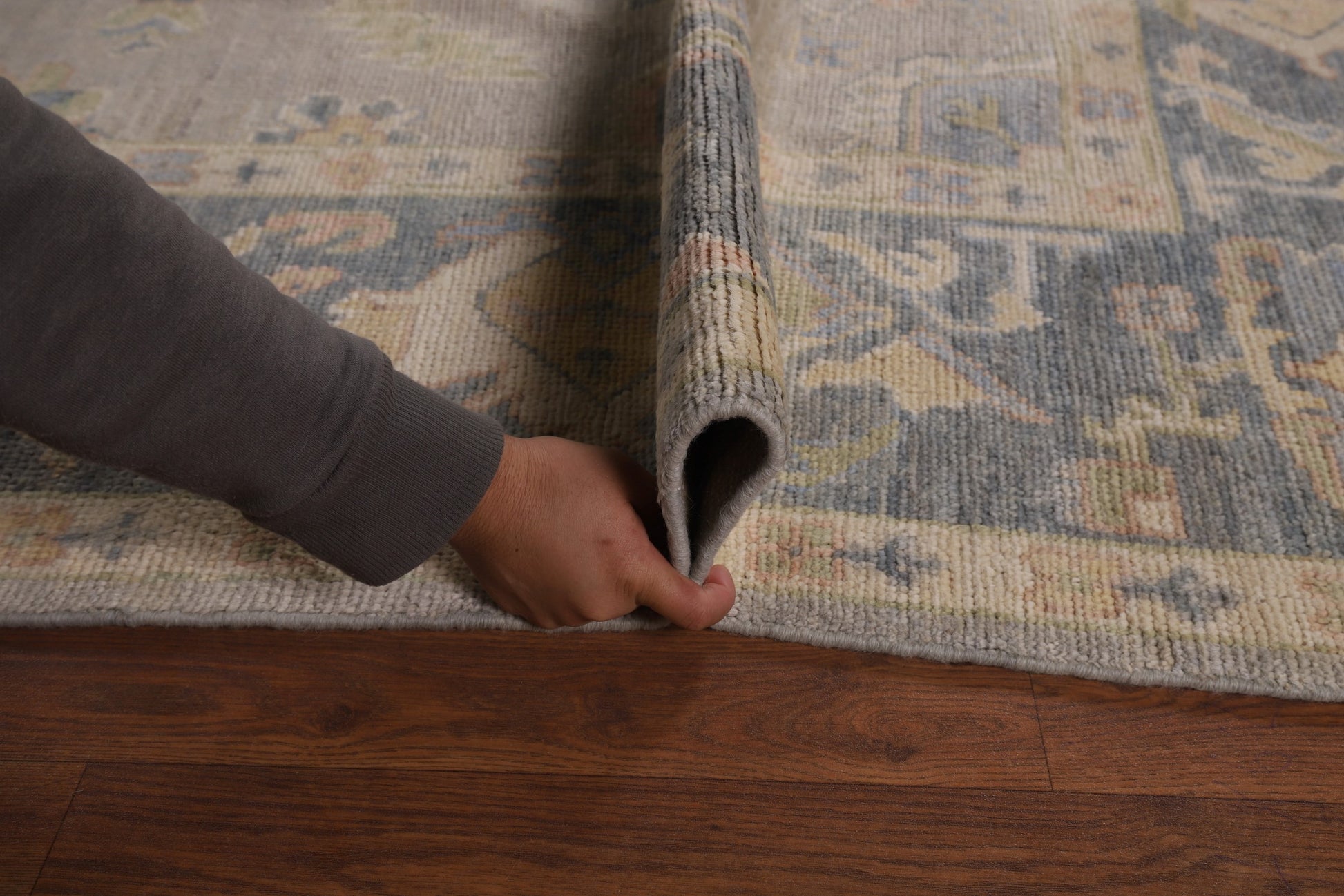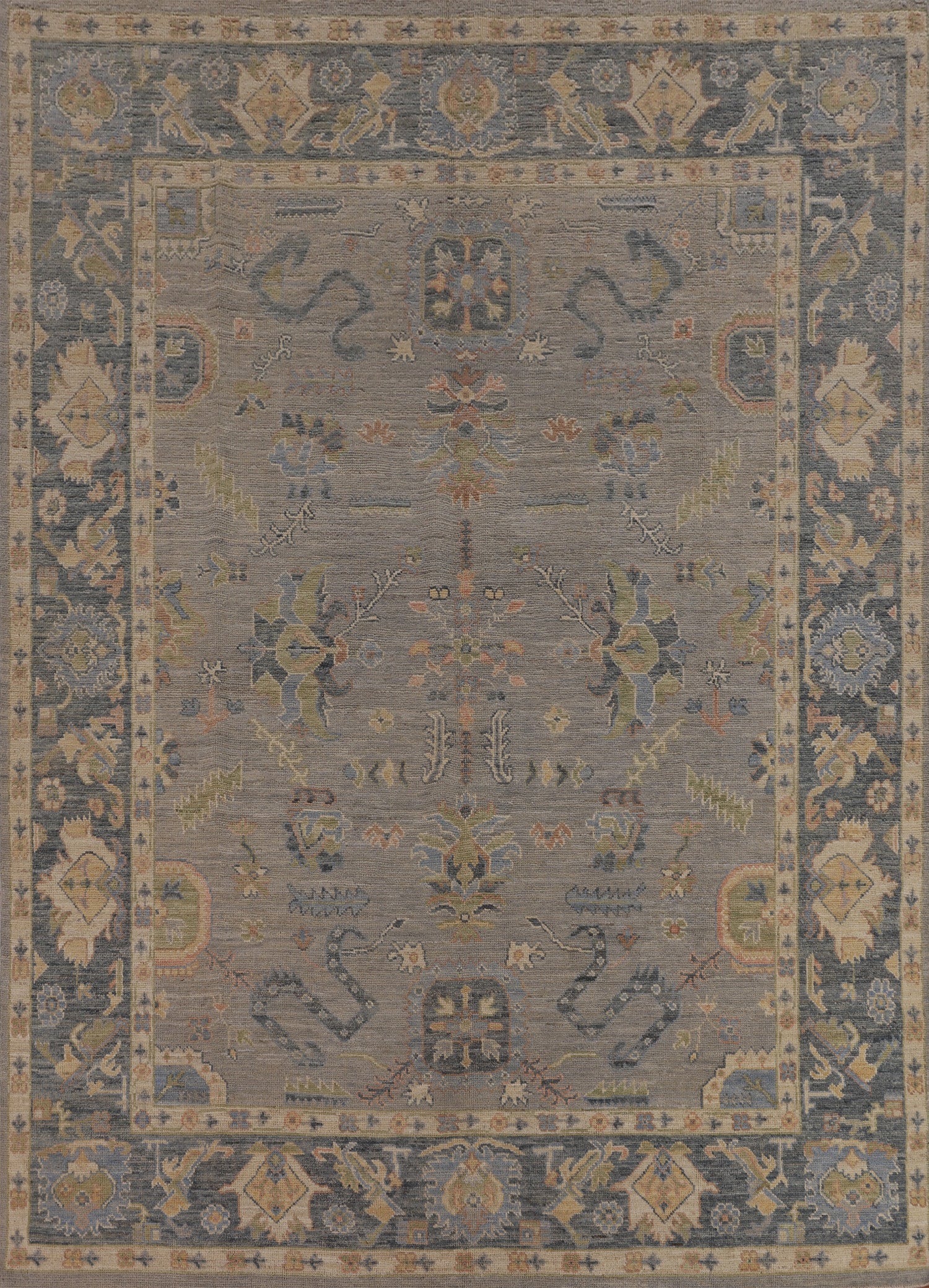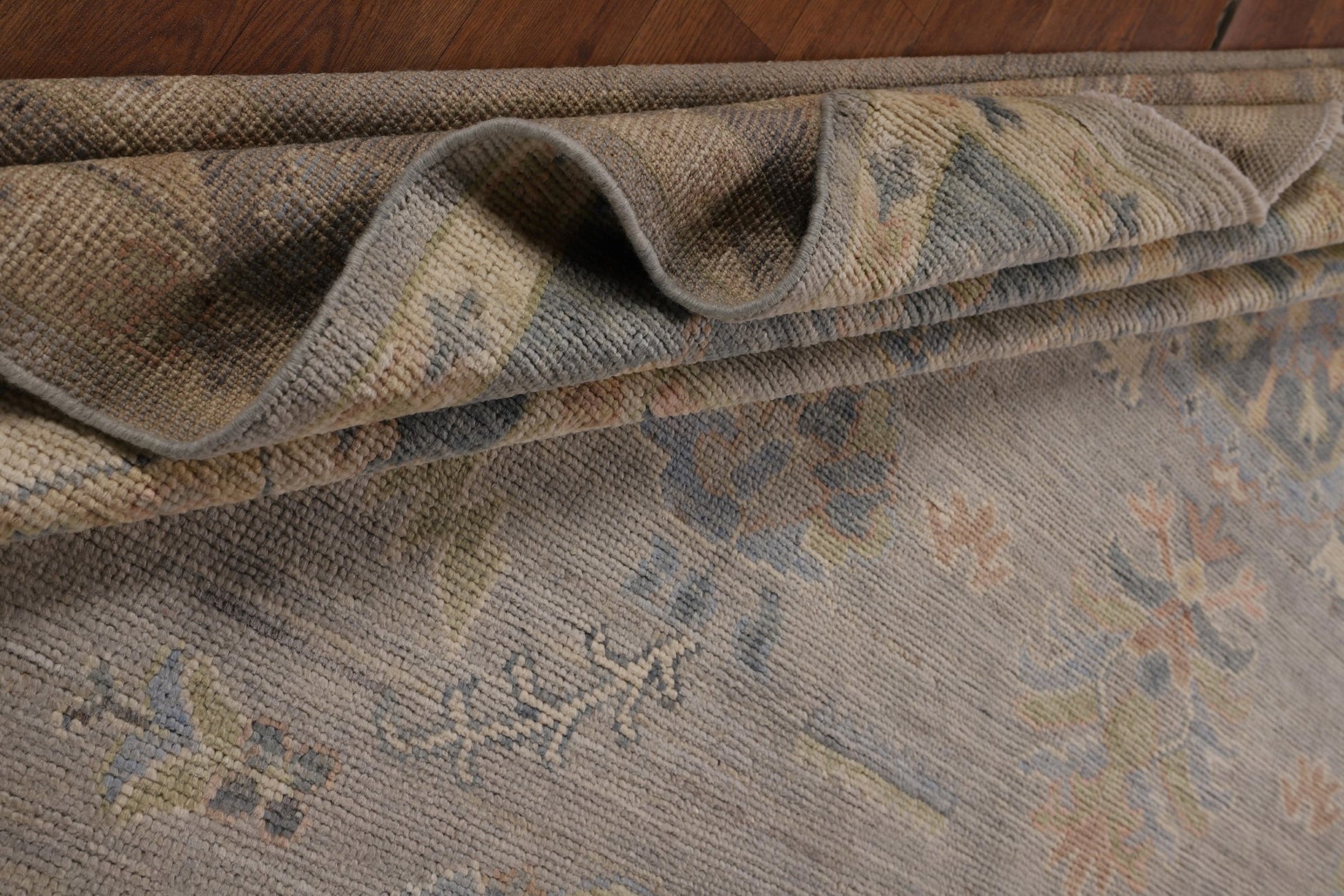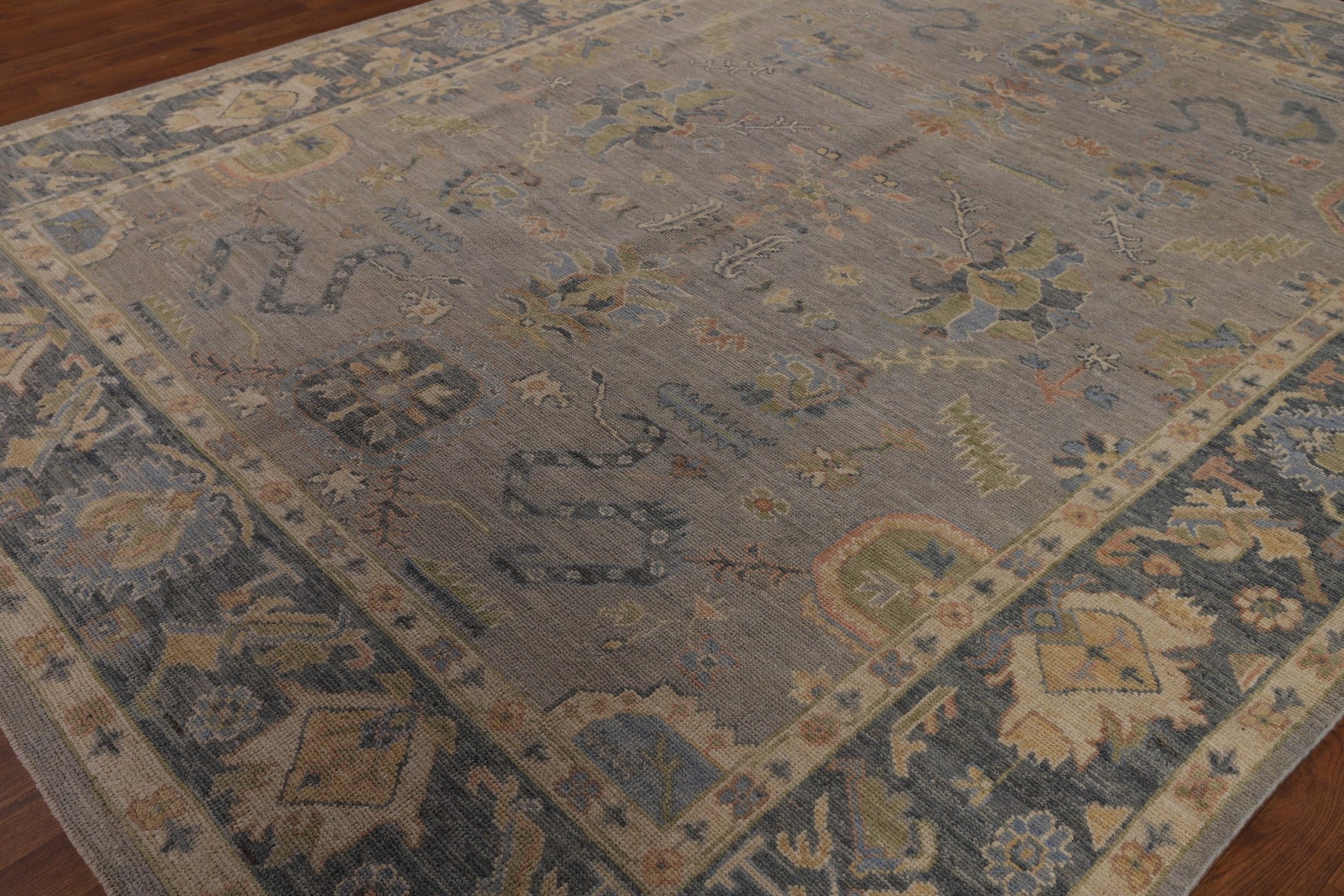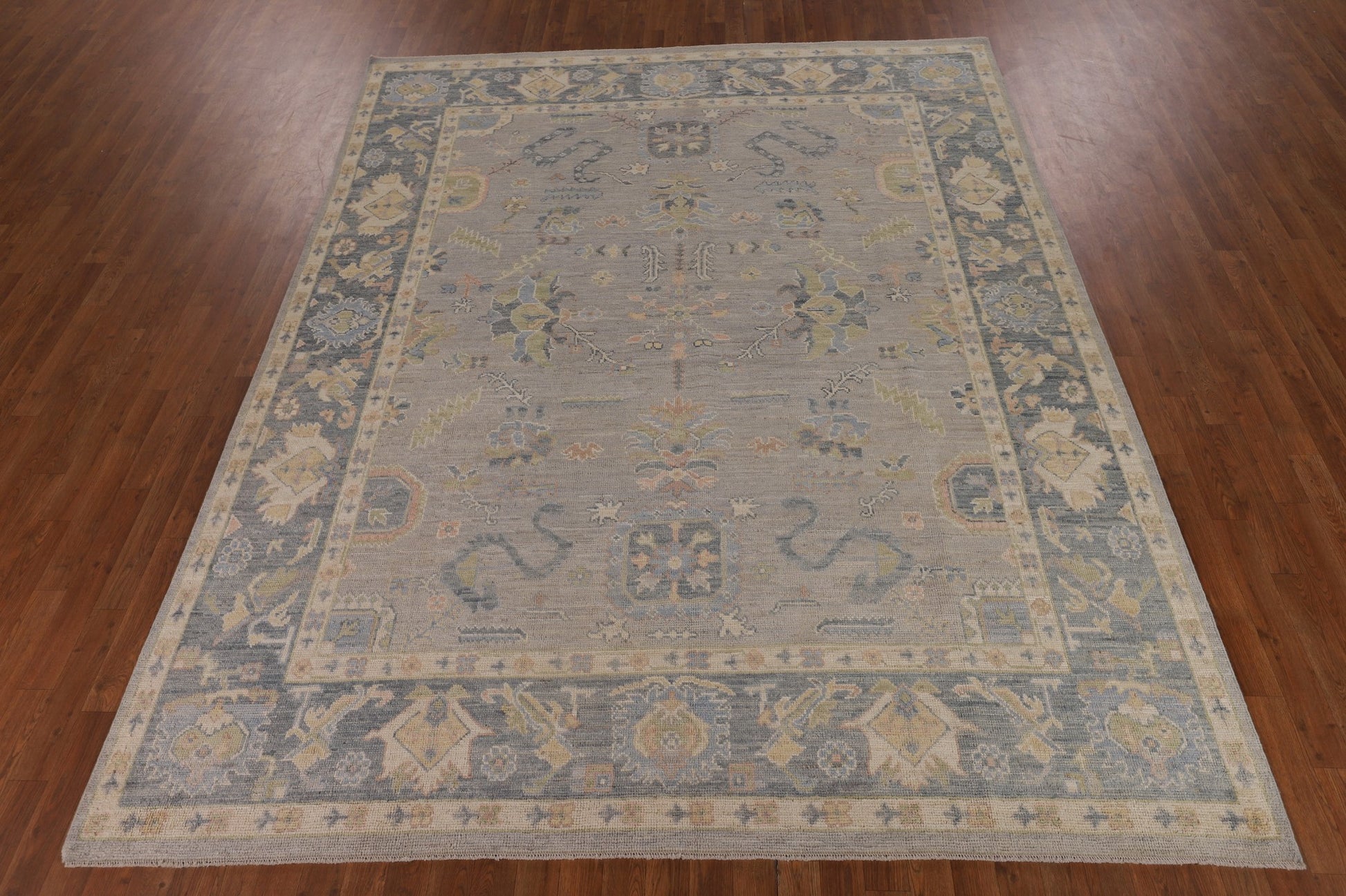 A Beautiful Genuine Turkey Oushak rug is Hand Knotted by skillful weavers in Turkey with 100% Wool Material. This rug is in New, First Quality condition. dimensions are 10' 1'' X 8' 0'' in foot and 307 X 244 in centimeter. the primary color is Greys & Charcoal.