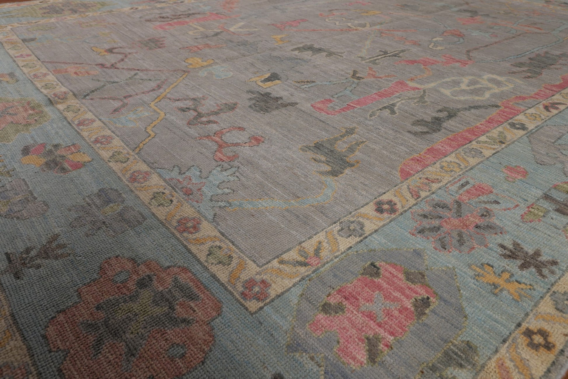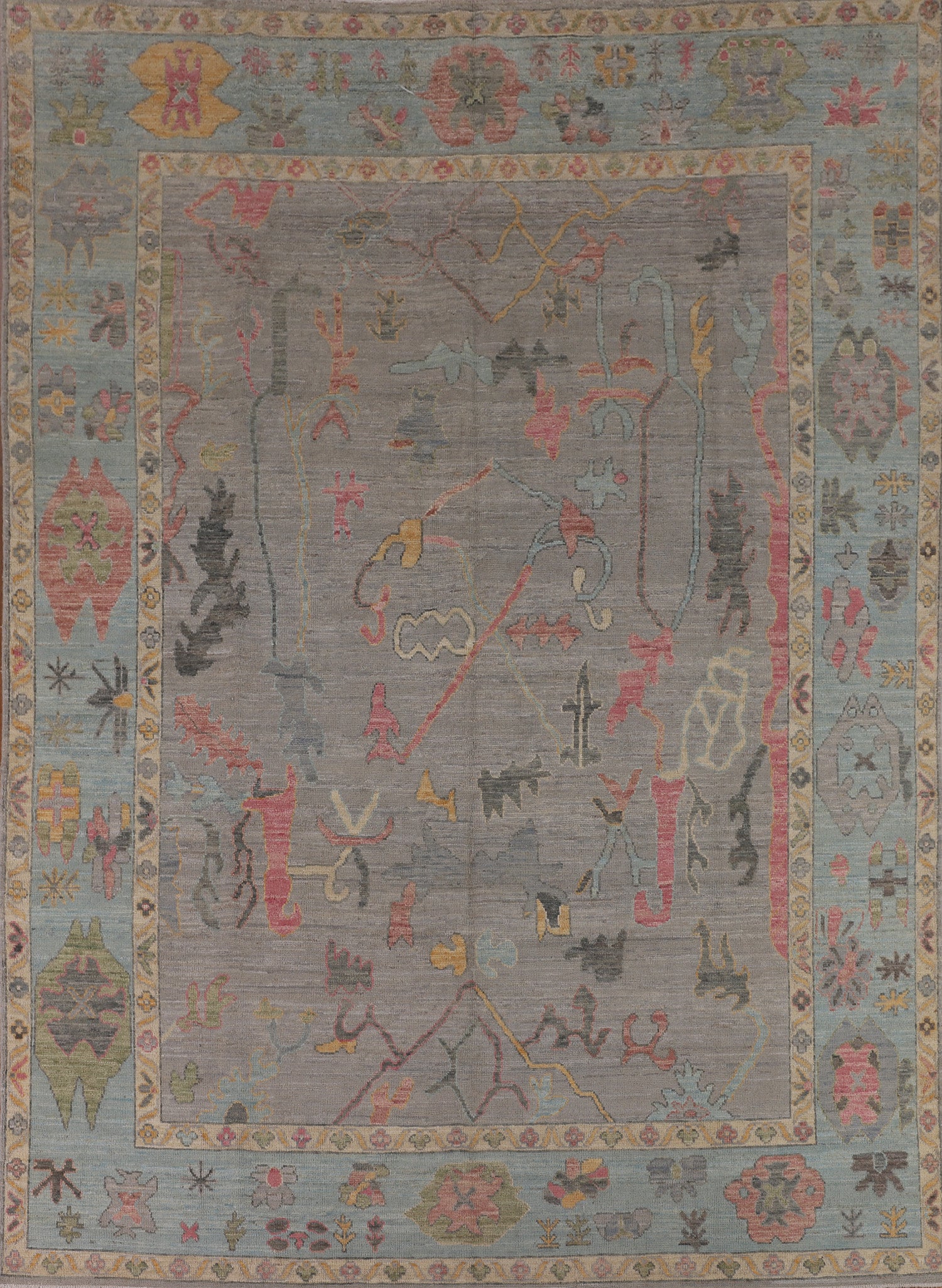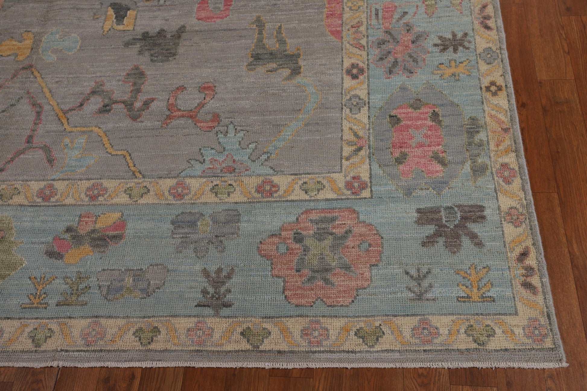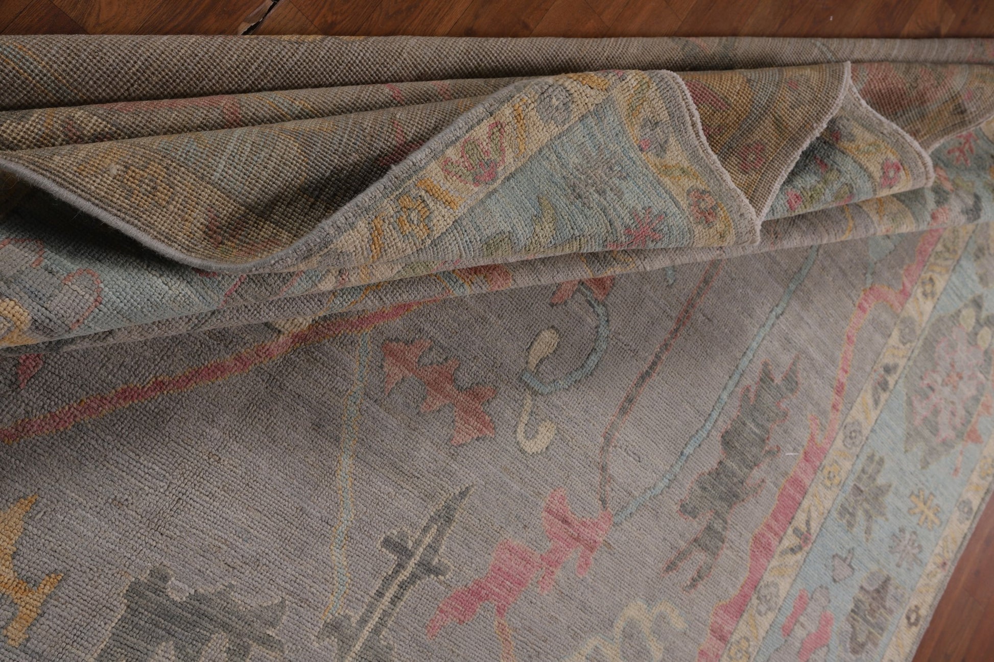 A Beautiful Genuine Turkey Oushak rug is Hand Knotted by skillful weavers in Turkey with 100% Wool Material. This rug is in New, First Quality condition. dimensions are 10' 4'' X 8' 0'' in foot and 315 X 244 in centimeter. the primary color is Greys & Charcoal.