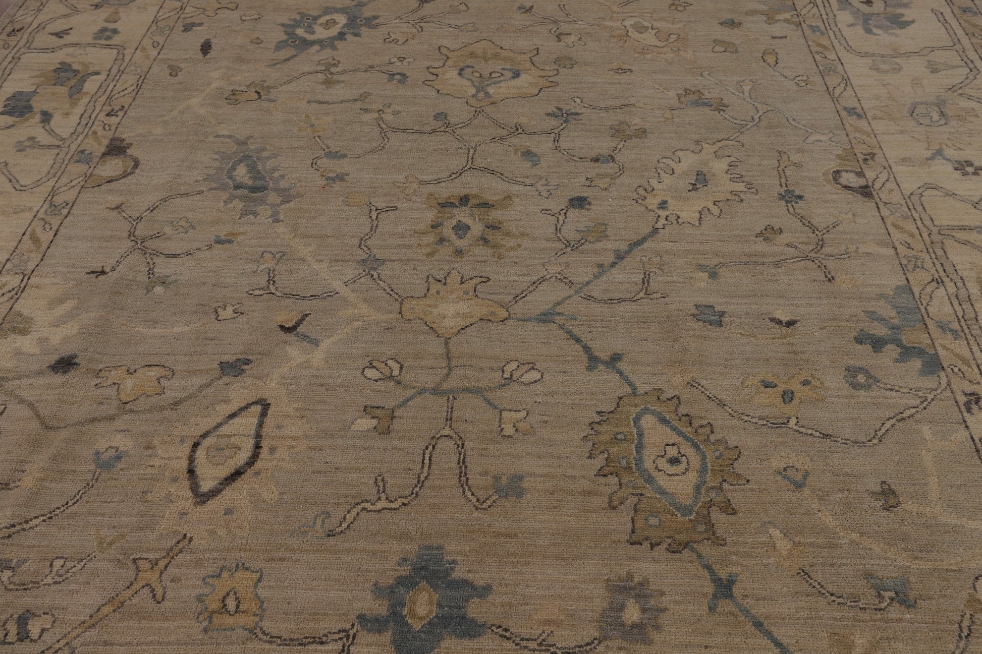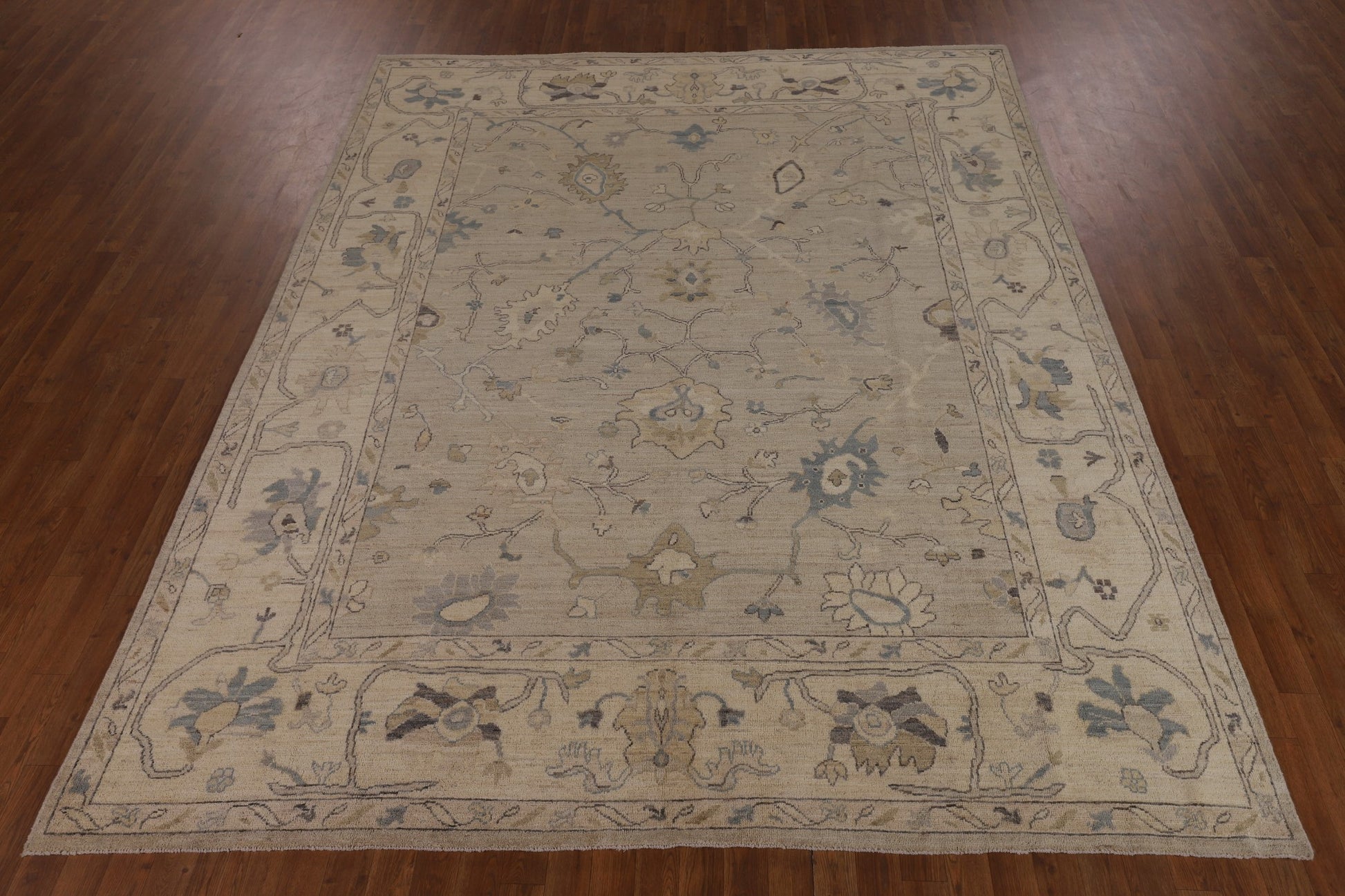 A Beautiful Genuine Turkey Oushak rug is Hand Knotted by skillful weavers in Turkey with 100% Wool Material. This rug is in New, First Quality condition. dimensions are 10' 1'' X 8' 1'' in foot and 307 X 246 in centimeter. the primary color is Beige & Ivories.