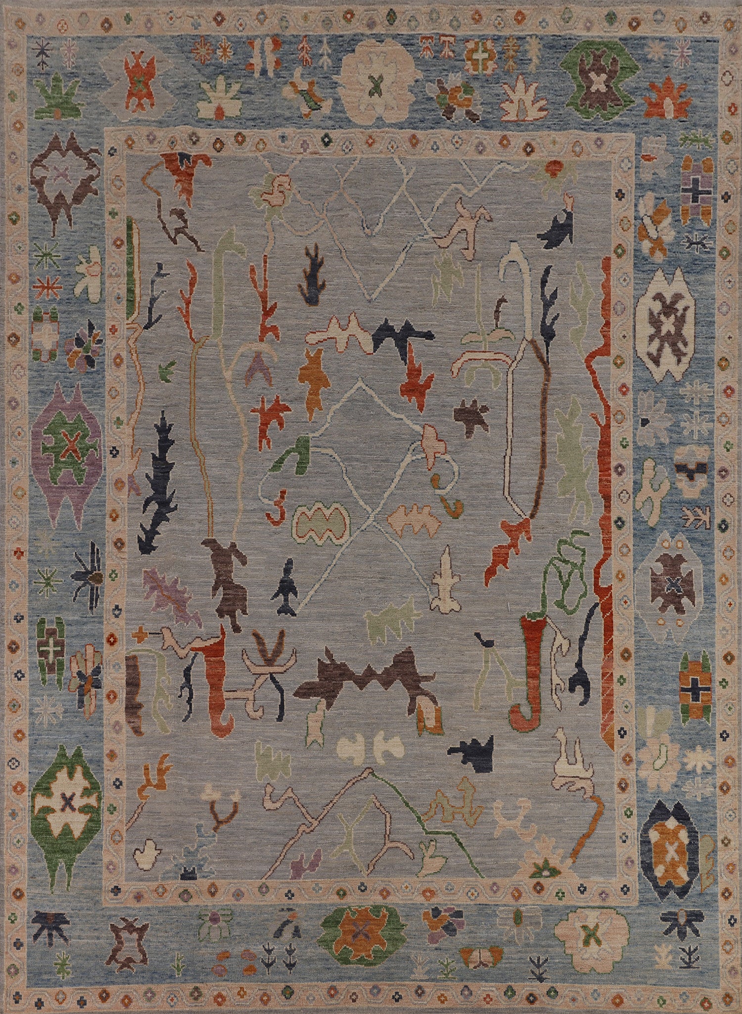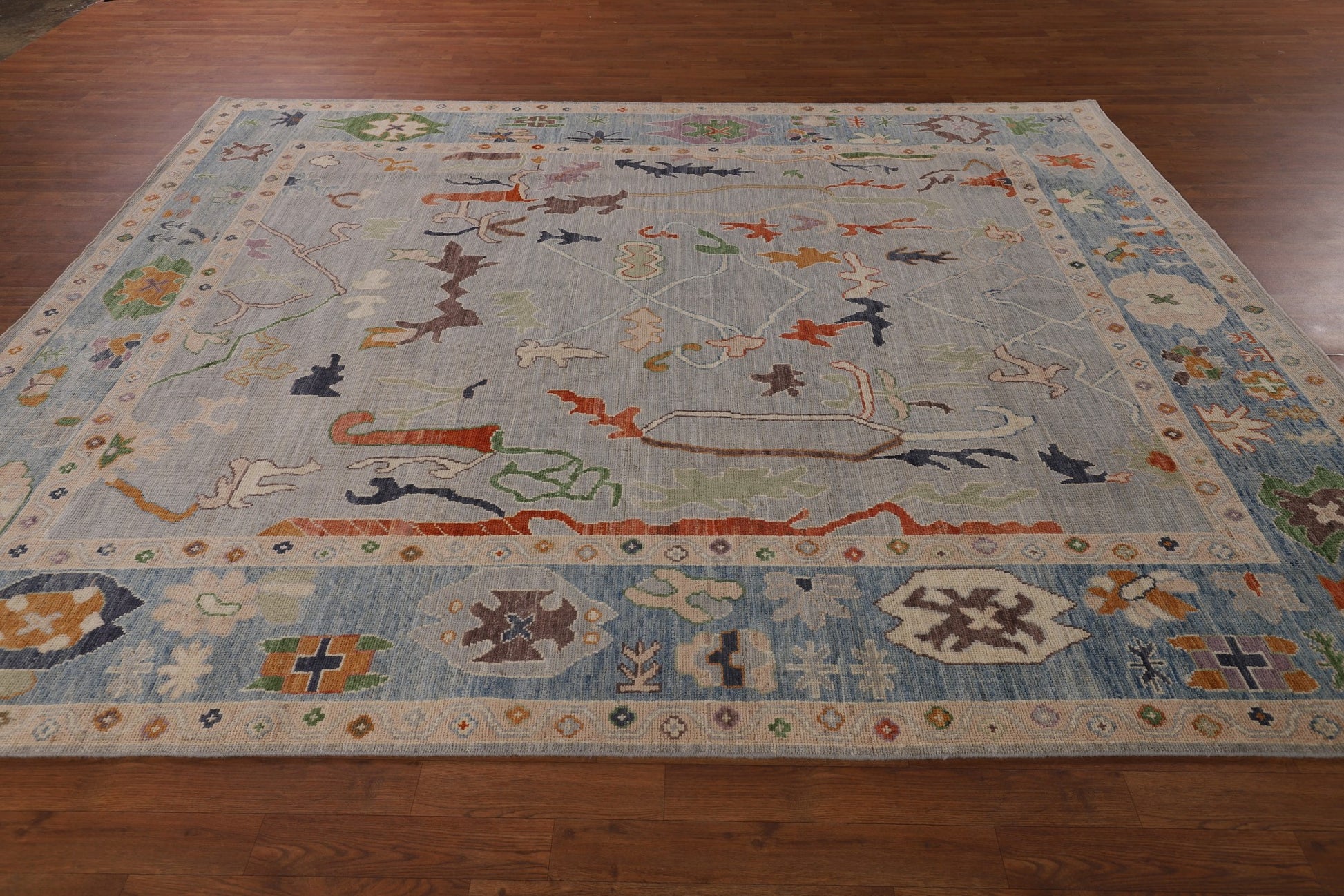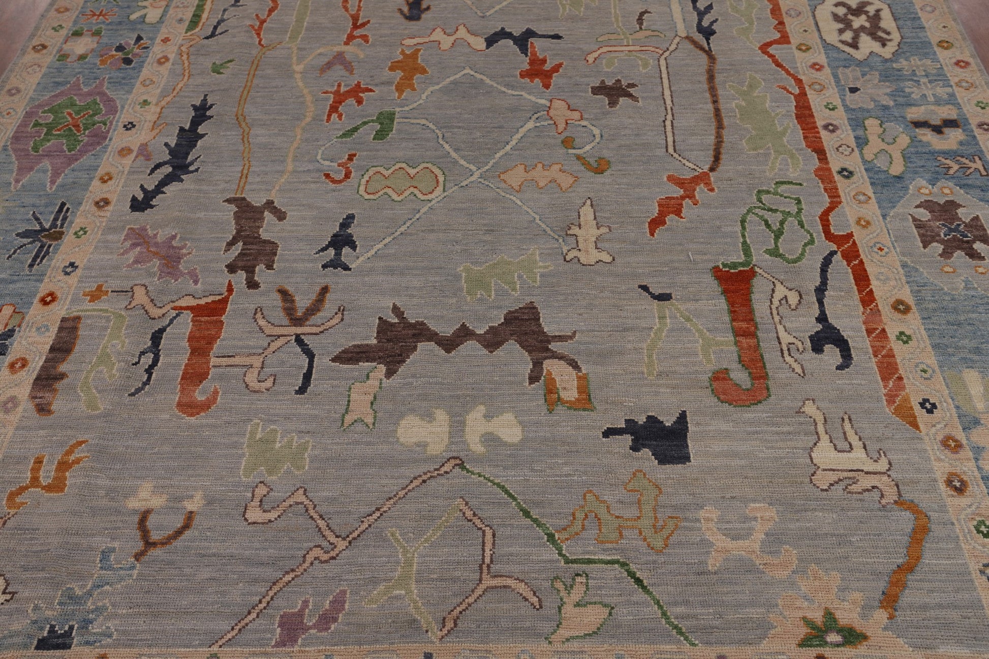 A Beautiful Genuine Turkey Oushak rug is Hand Knotted by skillful weavers in Turkey with 100% Wool Material. This rug is in New, First Quality condition. dimensions are 9' 9'' X 7' 11'' in foot and 297 X 241 in centimeter. the primary color is Greys & Charcoal.