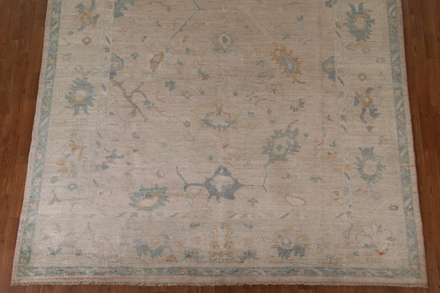 A Beautiful Genuine Turkey Oushak (100% Vegetable Dye) rug is Hand Knotted by skillful weavers in Turkey with 100% Wool Material. This rug is in Excellent condition. dimensions are 9' 8'' X 8' 1'' in foot and 295 X 246 in centimeter. the primary color is Beige & Ivories.