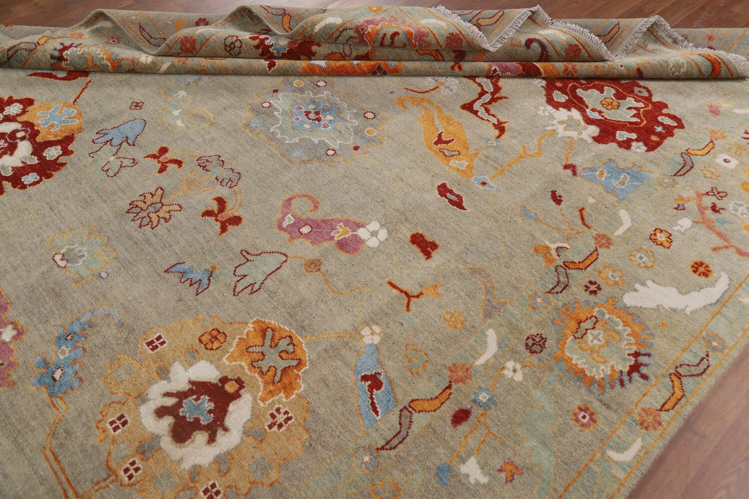 A Beautiful Genuine Turkey Oushak rug is Hand Knotted by skillful weavers in Turkey with Wool & Silk Material. This rug is in New, First Quality condition. dimensions are 9' 10'' X 7' 11'' in foot and 300 X 241 in centimeter. the primary color is Green.