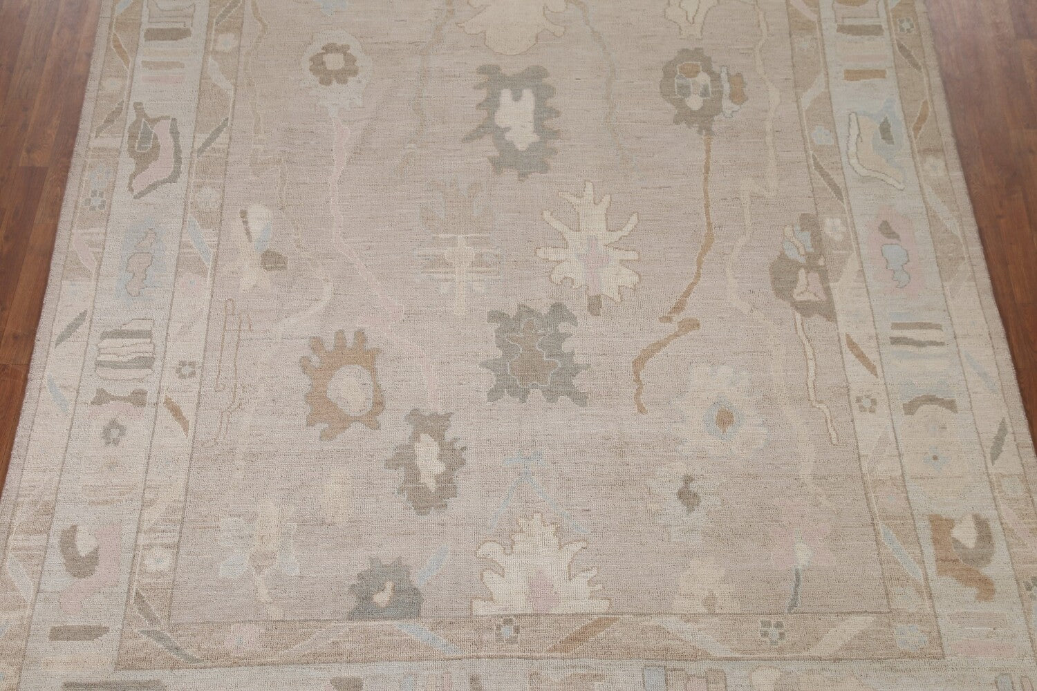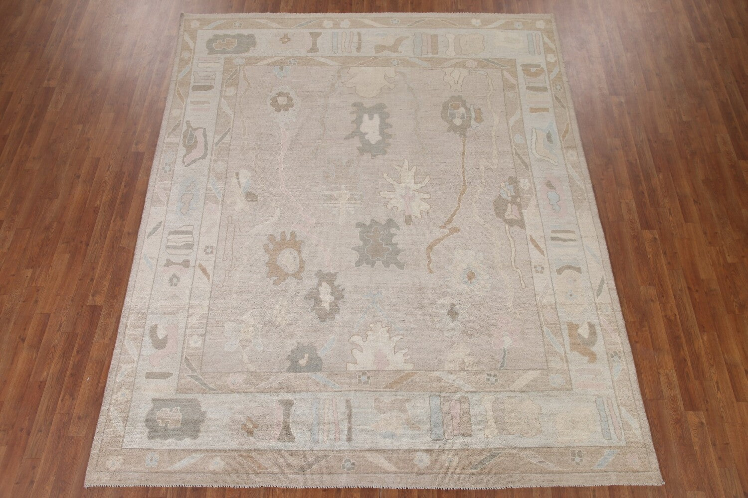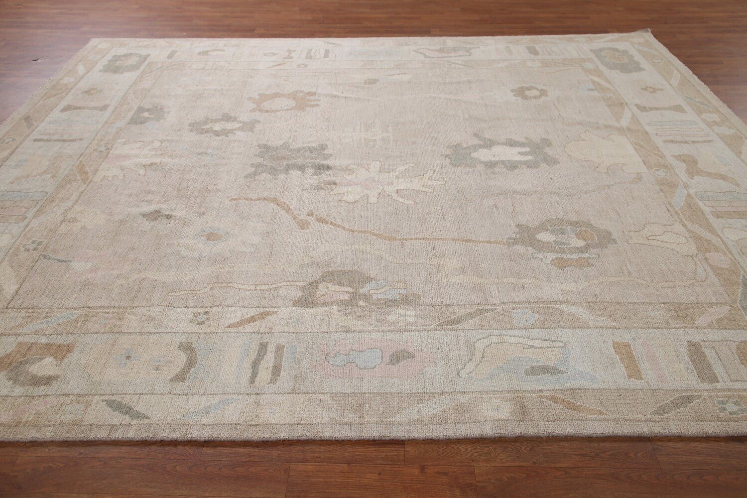 A Beautiful Genuine Turkey Oushak rug is Hand Knotted by skillful weavers in Turkey with 100% Wool Material. This rug is in New, First Quality condition. dimensions are 10' 1'' X 8' 3'' in foot and 307 X 251 in centimeter. the primary color is Beige & Ivories.