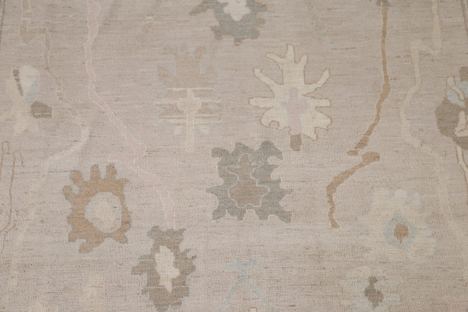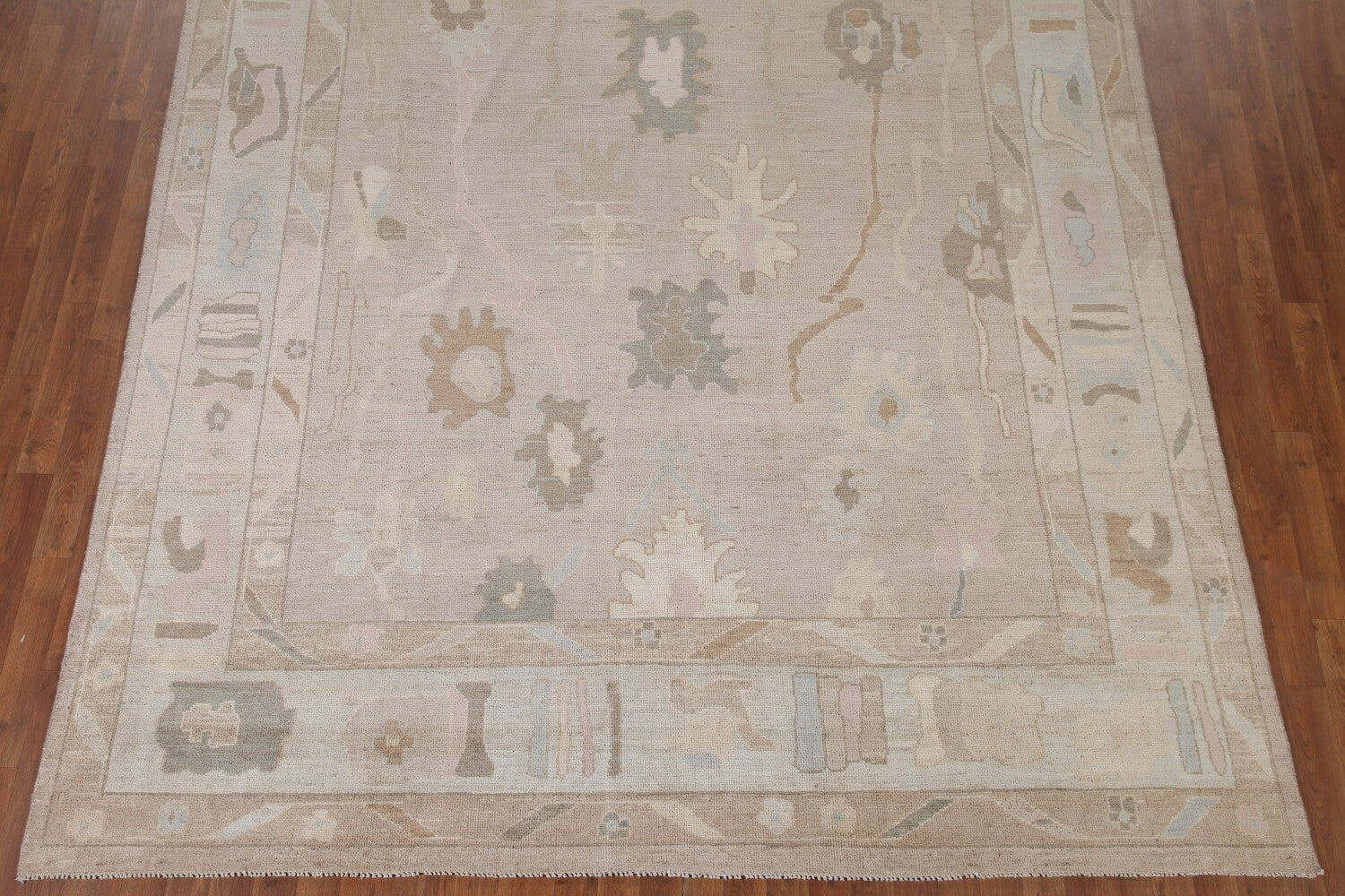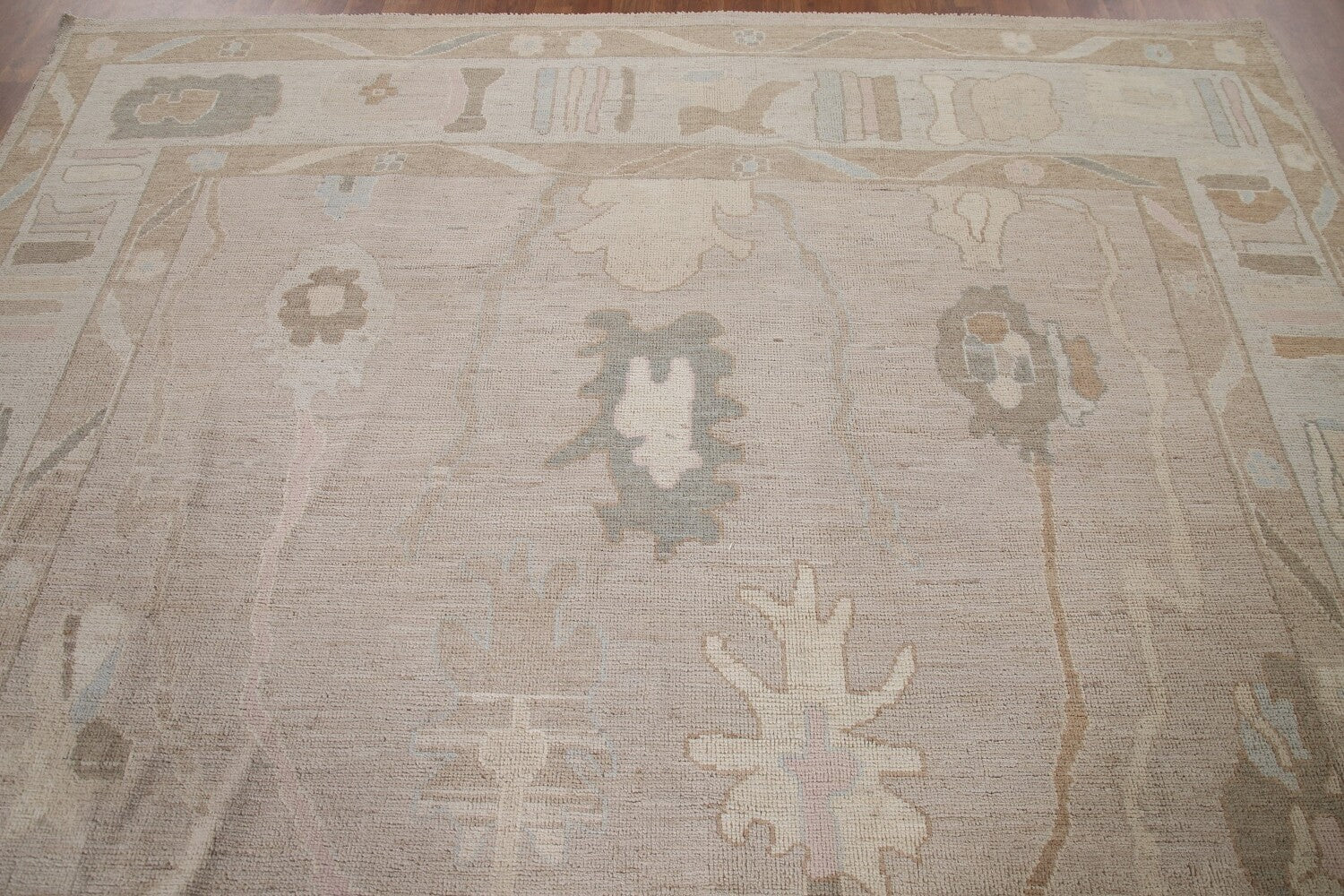 A Beautiful Genuine Turkey Oushak rug is Hand Knotted by skillful weavers in Turkey with 100% Wool Material. This rug is in New, First Quality condition. dimensions are 10' 1'' X 8' 3'' in foot and 307 X 251 in centimeter. the primary color is Beige & Ivories.