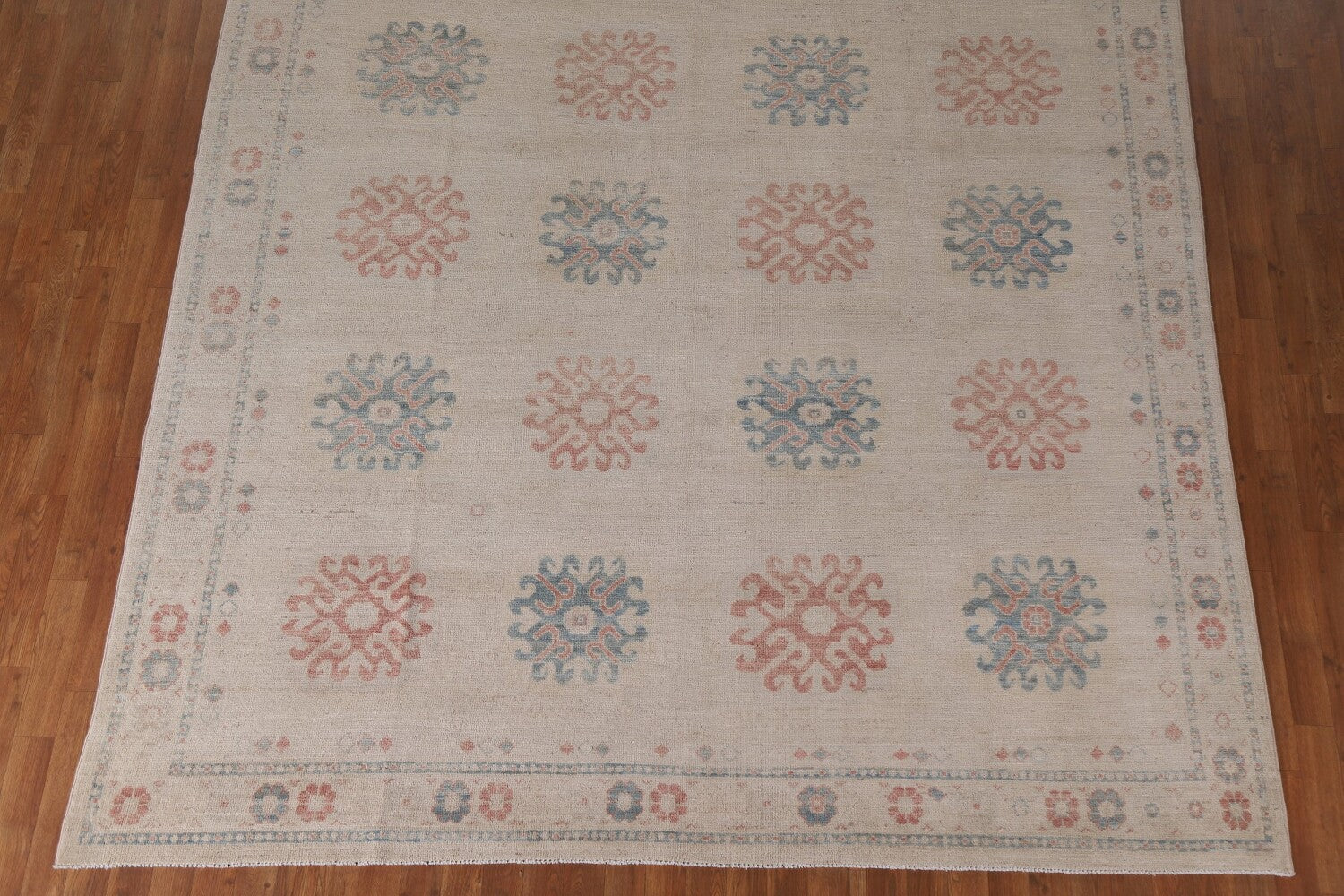 A Beautiful Genuine Turkey Oushak rug is Hand Knotted by skillful weavers in Turkey with 100% Wool Material. This rug is in New, First Quality condition. dimensions are 9' 11'' X 8' 3'' in foot and 302 X 251 in centimeter. the primary color is Beige & Ivories.