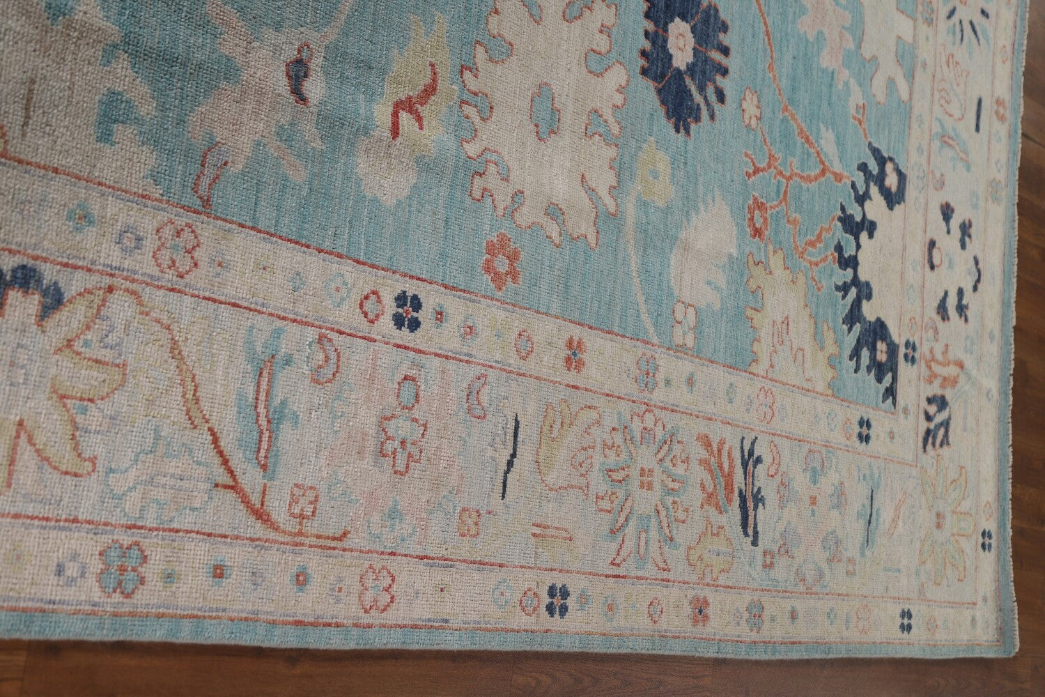 A Beautiful Genuine Turkey Oushak rug is Hand Knotted by skillful weavers in Turkey with 100% Wool Material. This rug is in New, First Quality condition. dimensions are 10' 1'' X 8' 2'' in foot and 307 X 249 in centimeter. the primary color is Navy Blue & Blues.