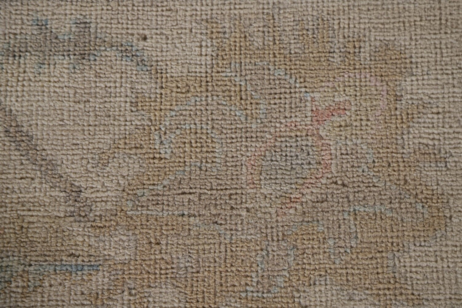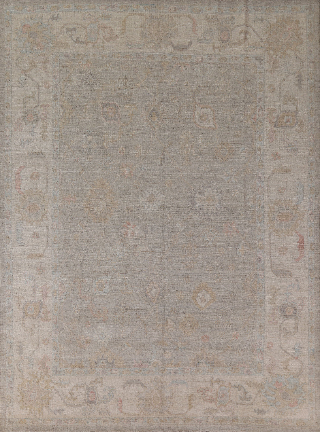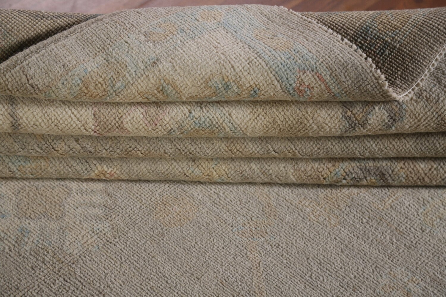 A Beautiful Genuine Turkey Oushak rug is Hand Knotted by skillful weavers in Turkey with 100% Wool Material. This rug is in New, First Quality condition. dimensions are 9' 10'' X 8' 0'' in foot and 300 X 244 in centimeter. the primary color is Beige & Ivories.