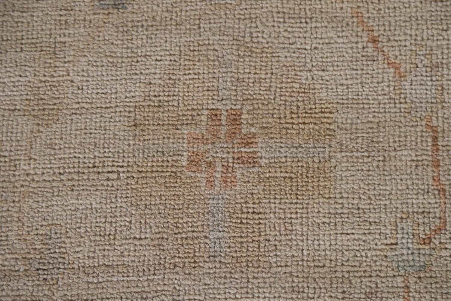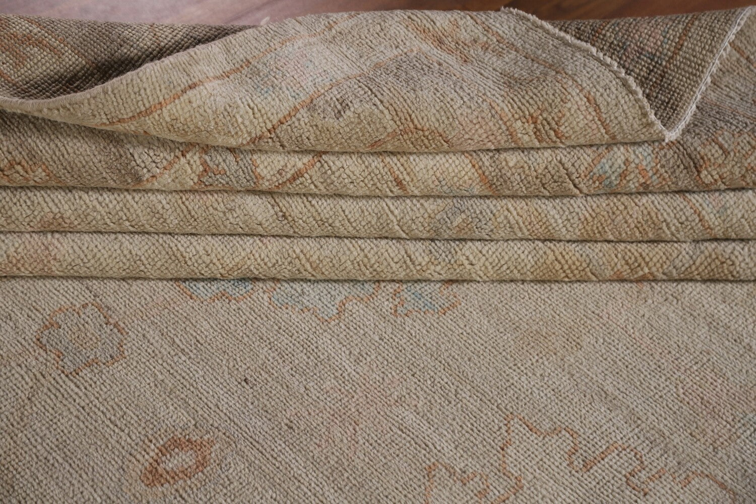 A Beautiful Genuine Turkey Oushak rug is Hand Knotted by skillful weavers in Turkey with 100% Wool Material. This rug is in New, First Quality condition. dimensions are 10' 1'' X 8' 3'' in foot and 307 X 251 in centimeter. the primary color is Beige & Ivories.