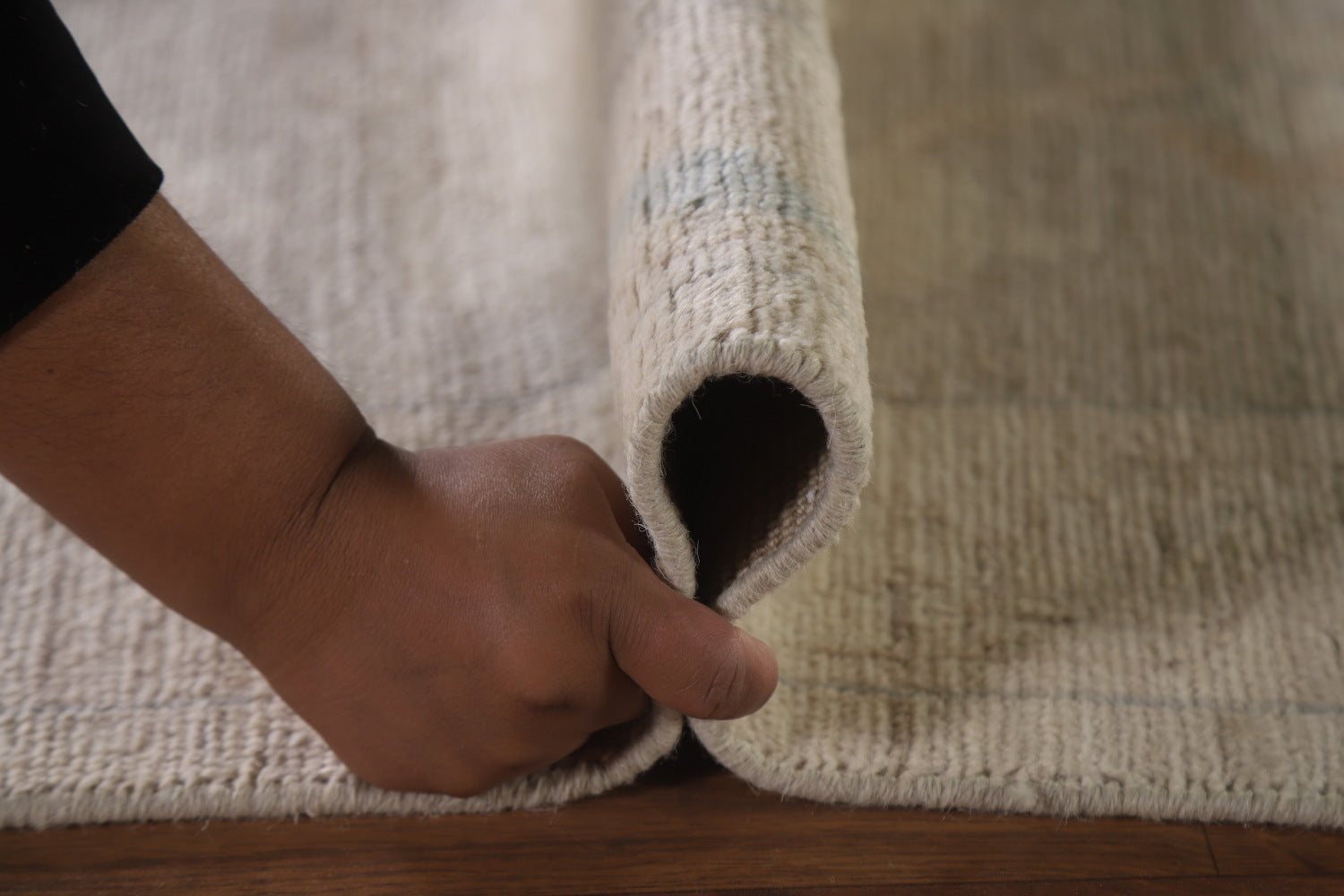 A Beautiful Genuine Turkey Oushak rug is Hand Knotted by skillful weavers in Turkey with 100% Wool Material. This rug is in New, First Quality condition. dimensions are 9' 9'' X 8' 1'' in foot and 297 X 246 in centimeter. the primary color is Beige & Ivories.