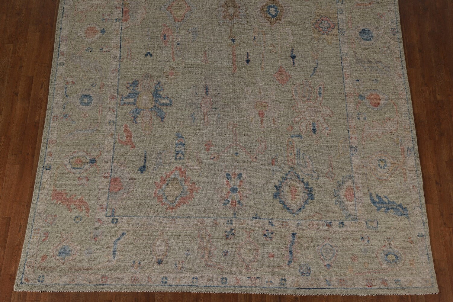 A Beautiful Genuine Turkey Oushak rug is Hand Knotted by skillful weavers in Turkey with 100% Wool Material. This rug is in New, First Quality condition. dimensions are 10' 2'' X 8' 3'' in foot and 310 X 251 in centimeter. the primary color is Green.