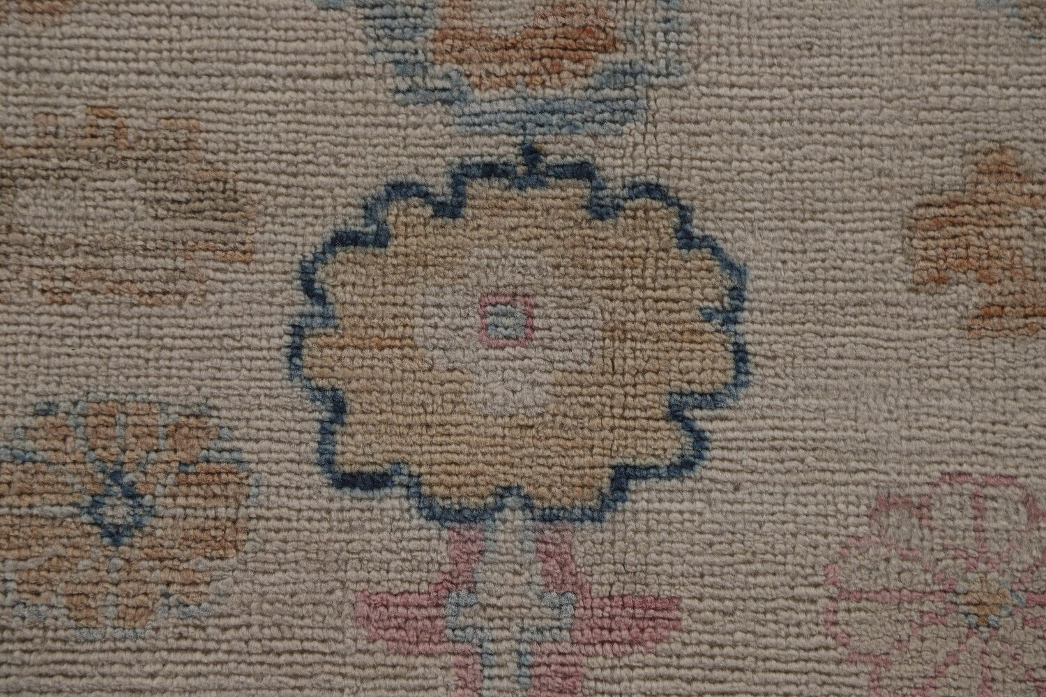 A Beautiful Genuine Turkey Oushak rug is Hand Knotted by skillful weavers in Turkey with 100% Wool Material. This rug is in New, First Quality condition. dimensions are 10' 0'' X 7' 9'' in foot and 305 X 236 in centimeter. the primary color is Beige & Ivories.