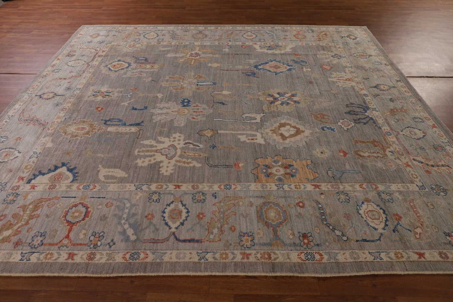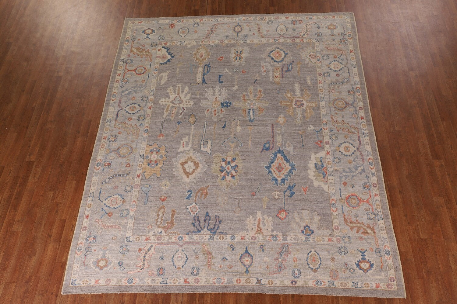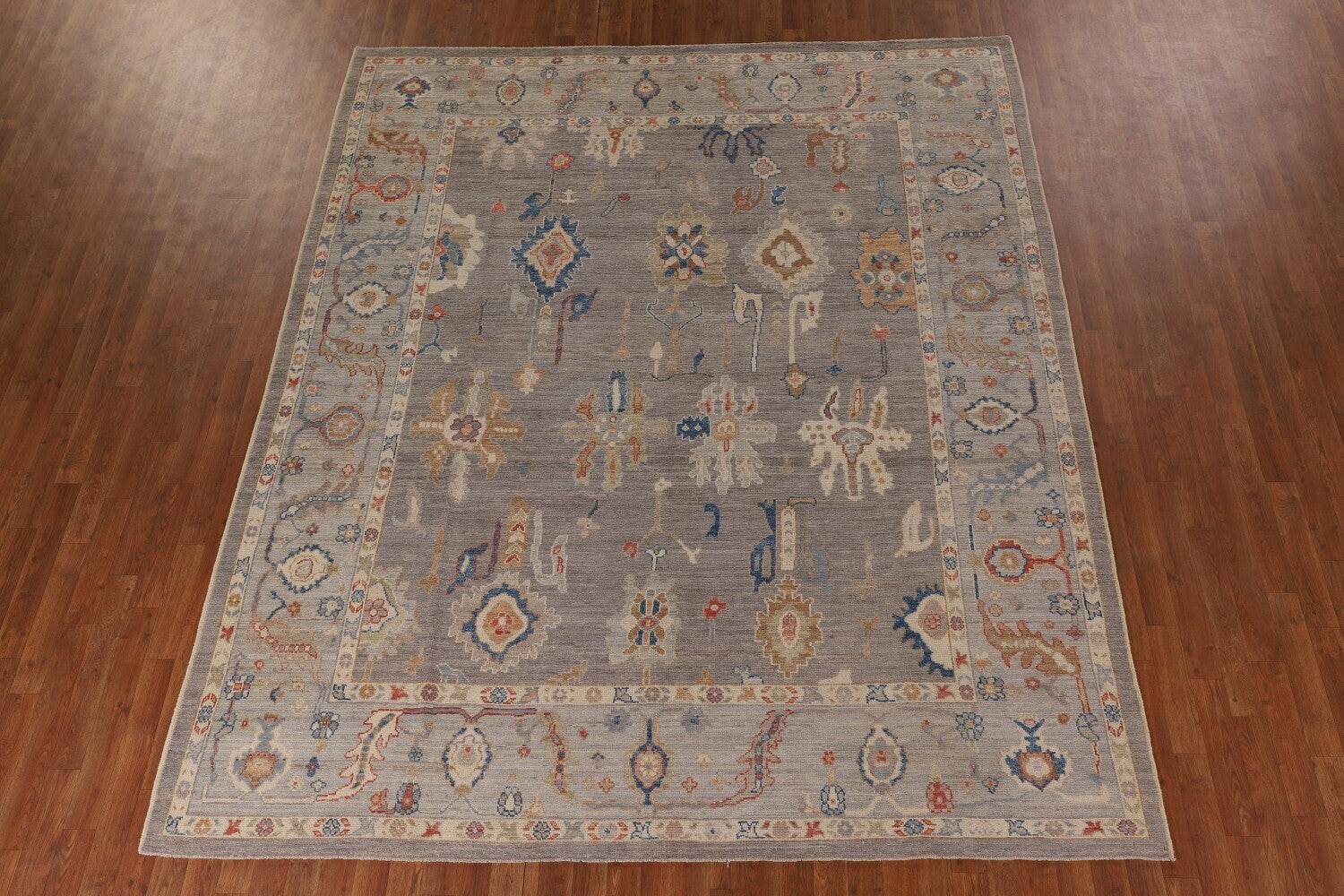 A Beautiful Genuine Turkey Oushak rug is Hand Knotted by skillful weavers in Turkey with 100% Wool Material. This rug is in New, First Quality condition. dimensions are 9' 11'' X 8' 4'' in foot and 302 X 254 in centimeter. the primary color is Greys & Charcoal.