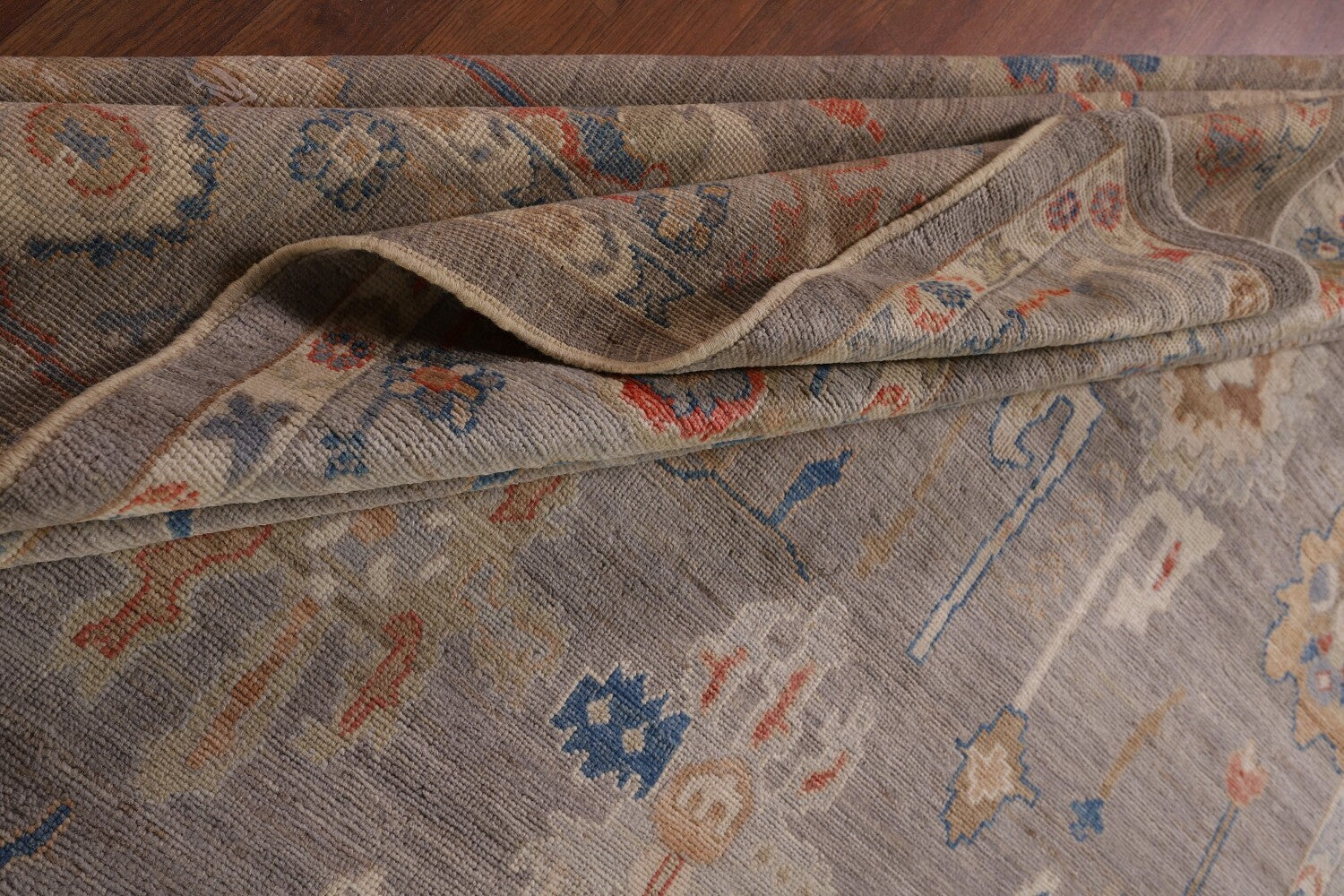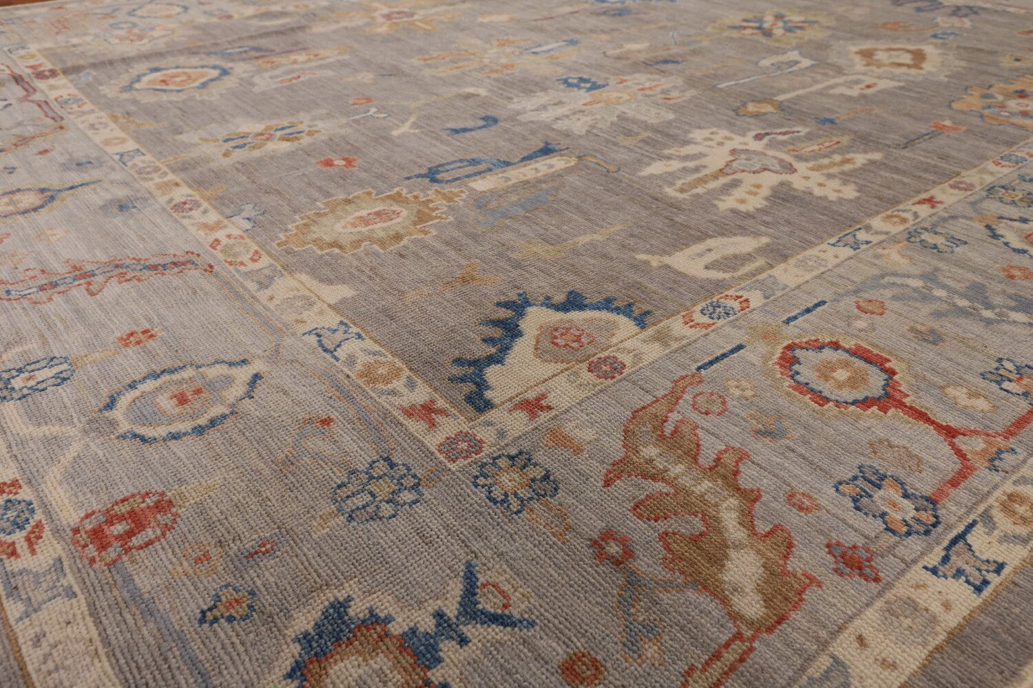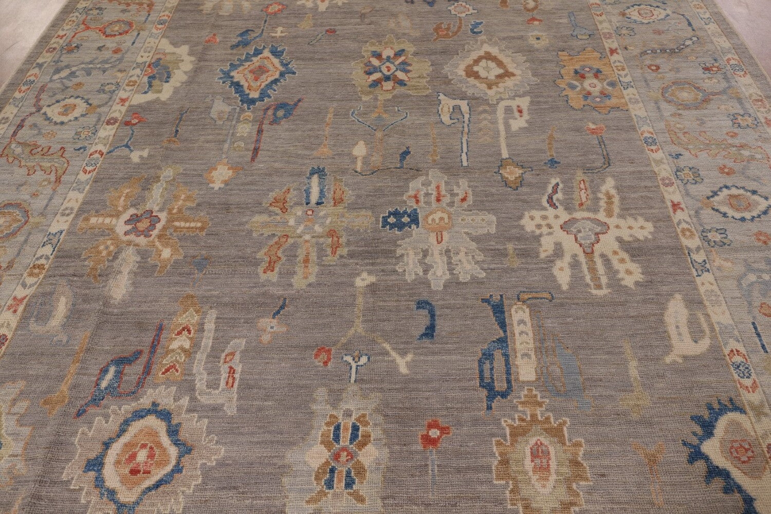 A Beautiful Genuine Turkey Oushak rug is Hand Knotted by skillful weavers in Turkey with 100% Wool Material. This rug is in New, First Quality condition. dimensions are 9' 11'' X 8' 4'' in foot and 302 X 254 in centimeter. the primary color is Greys & Charcoal.