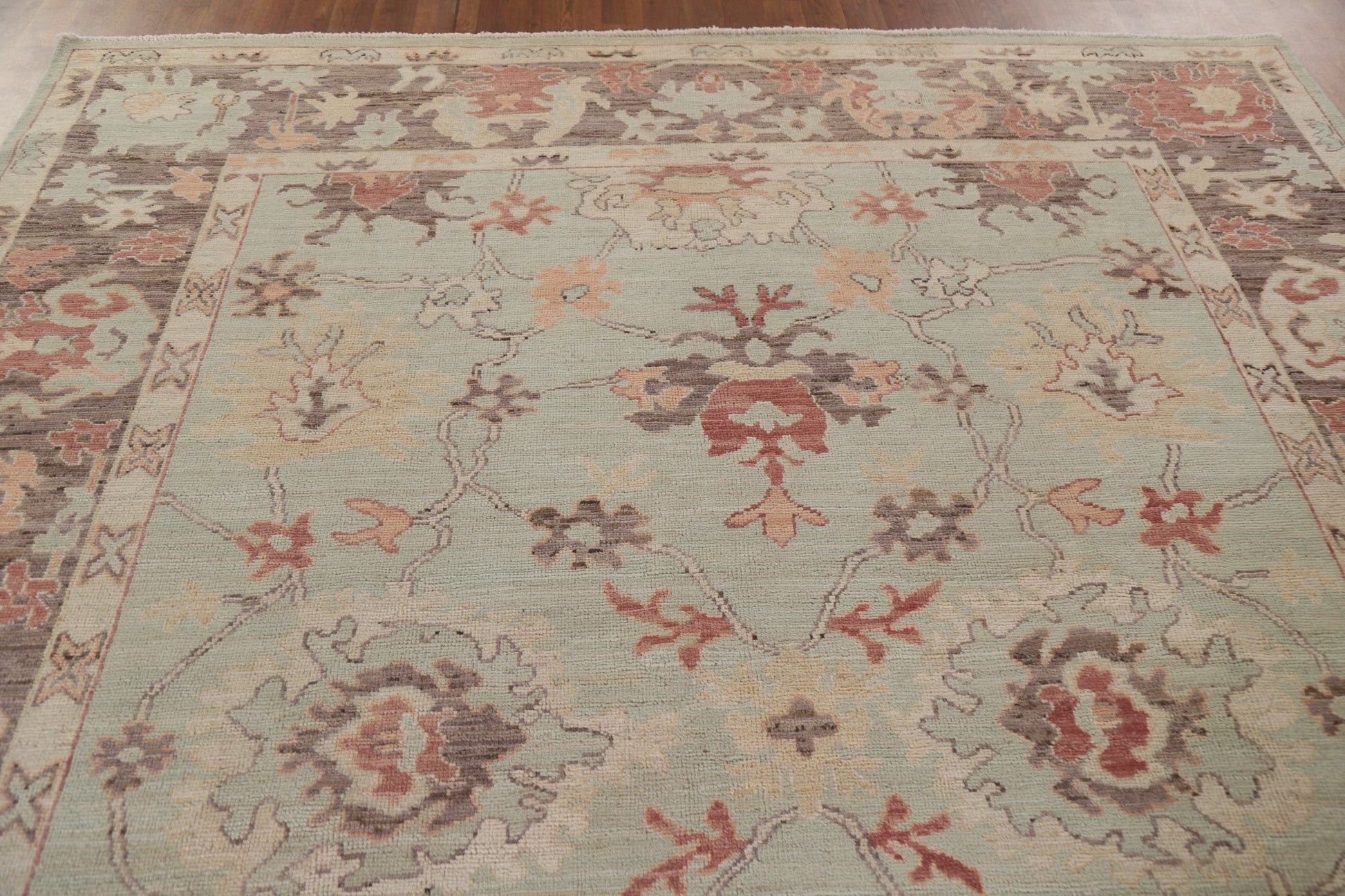 A Beautiful Genuine Turkey Oushak rug is Hand Knotted by skillful weavers in Turkey with 100% Wool Material. This rug is in New, First Quality condition. dimensions are 9' 10'' X 7' 10'' in foot and 300 X 239 in centimeter. the primary color is Green.