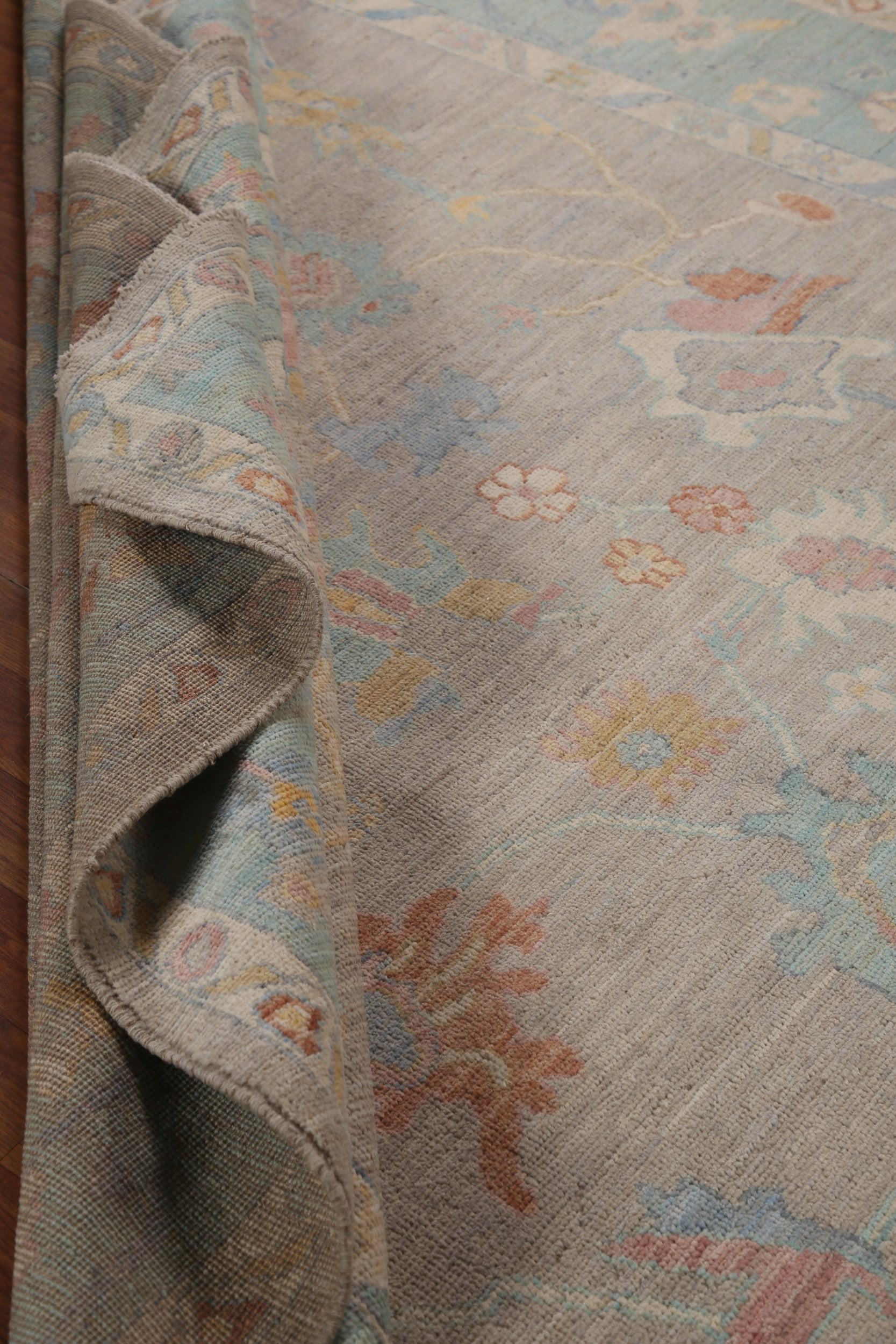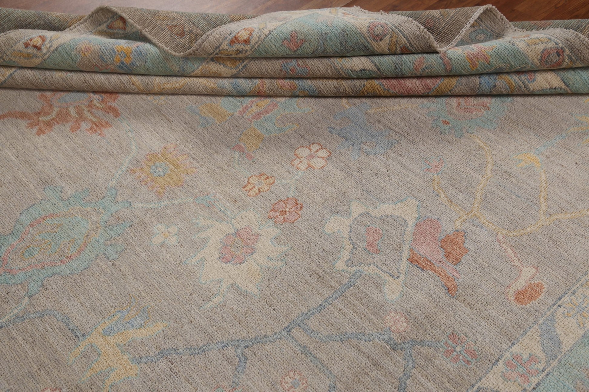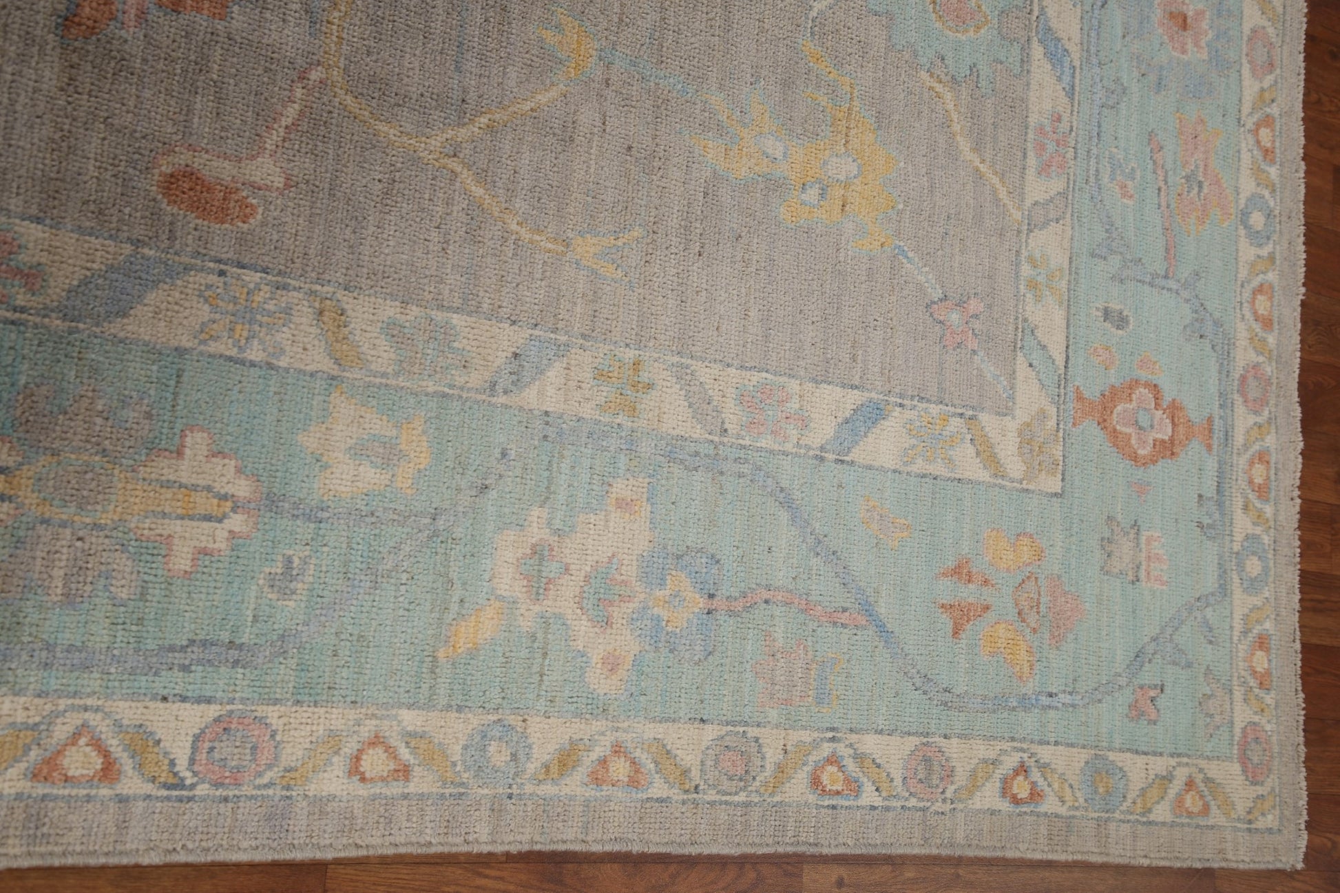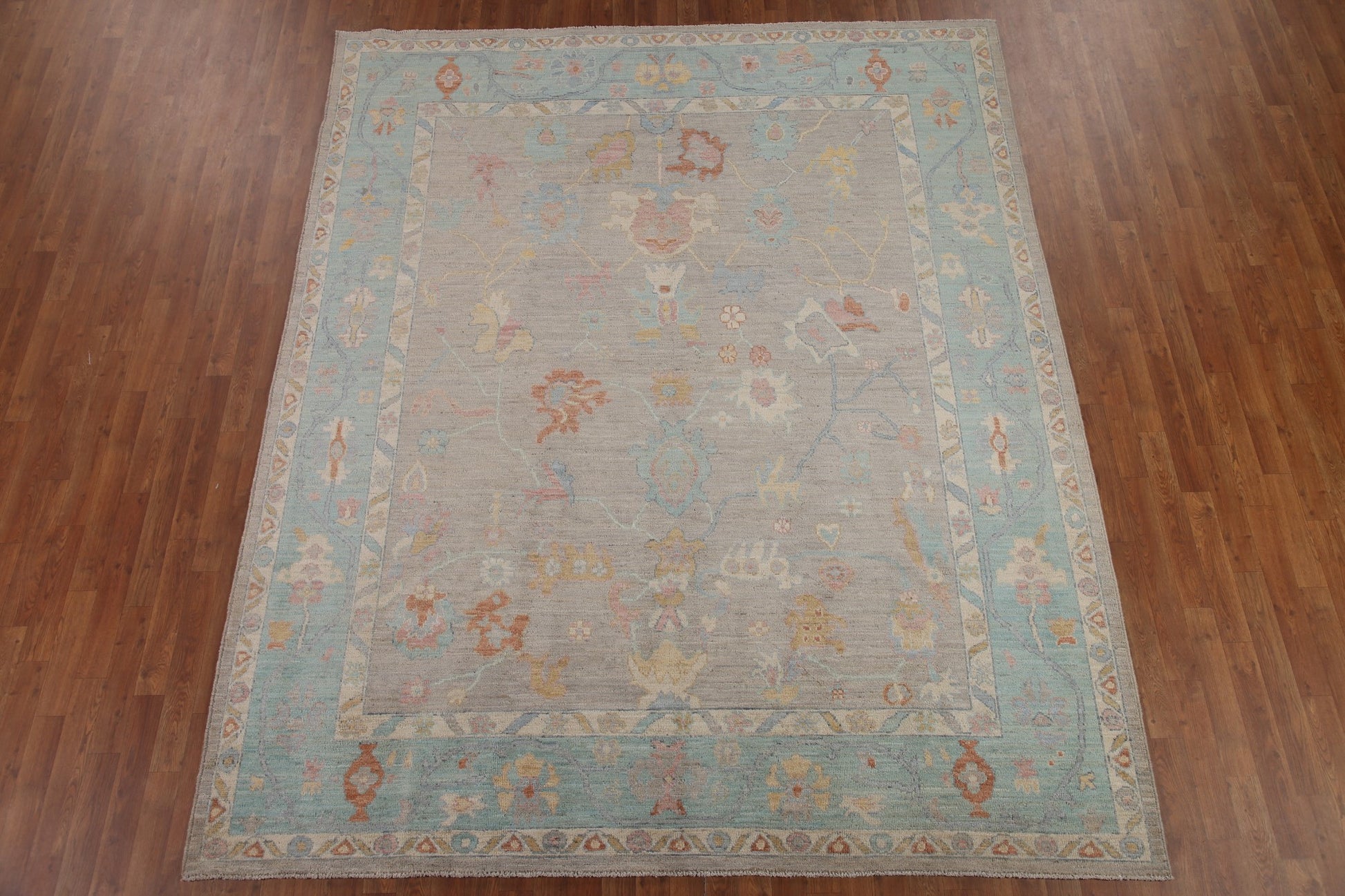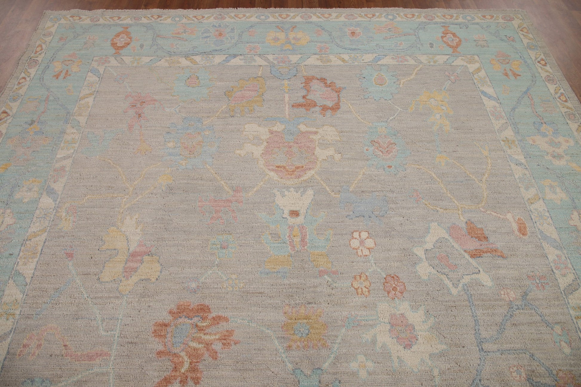 A Beautiful Genuine Turkey Oushak rug is Hand Knotted by skillful weavers in Turkey with 100% Wool Material. This rug is in New, First Quality condition. dimensions are 9' 9'' X 8' 1'' in foot and 297 X 246 in centimeter. the primary color is Greys & Charcoal.