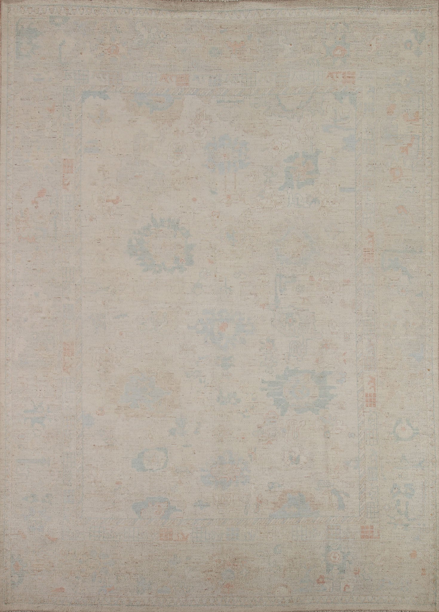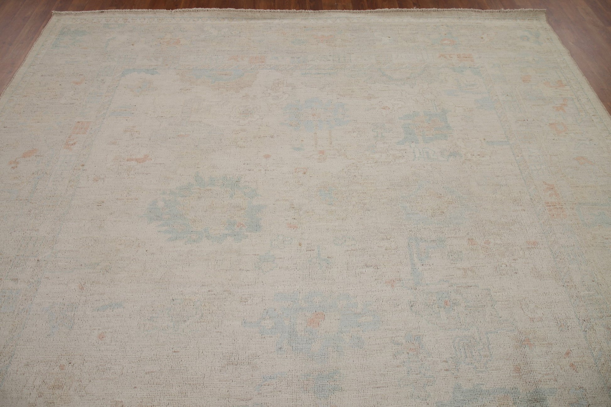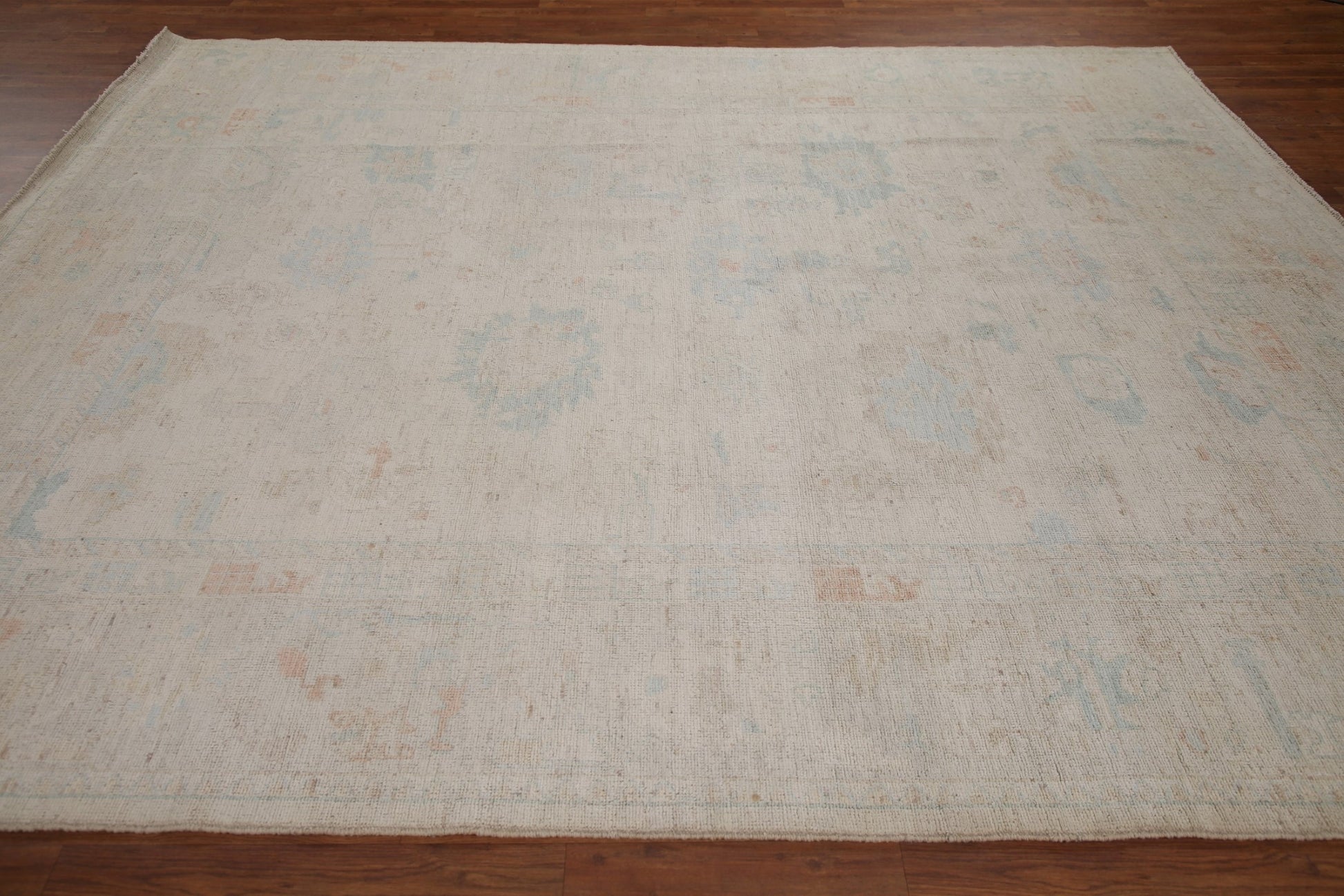 A Beautiful Genuine Turkey Oushak rug is Hand Knotted by skillful weavers in Turkey with 100% Wool Material. This rug is in New, First Quality condition. dimensions are 9' 11'' X 8' 5'' in foot and 302 X 257 in centimeter. the primary color is Beige & Ivories.