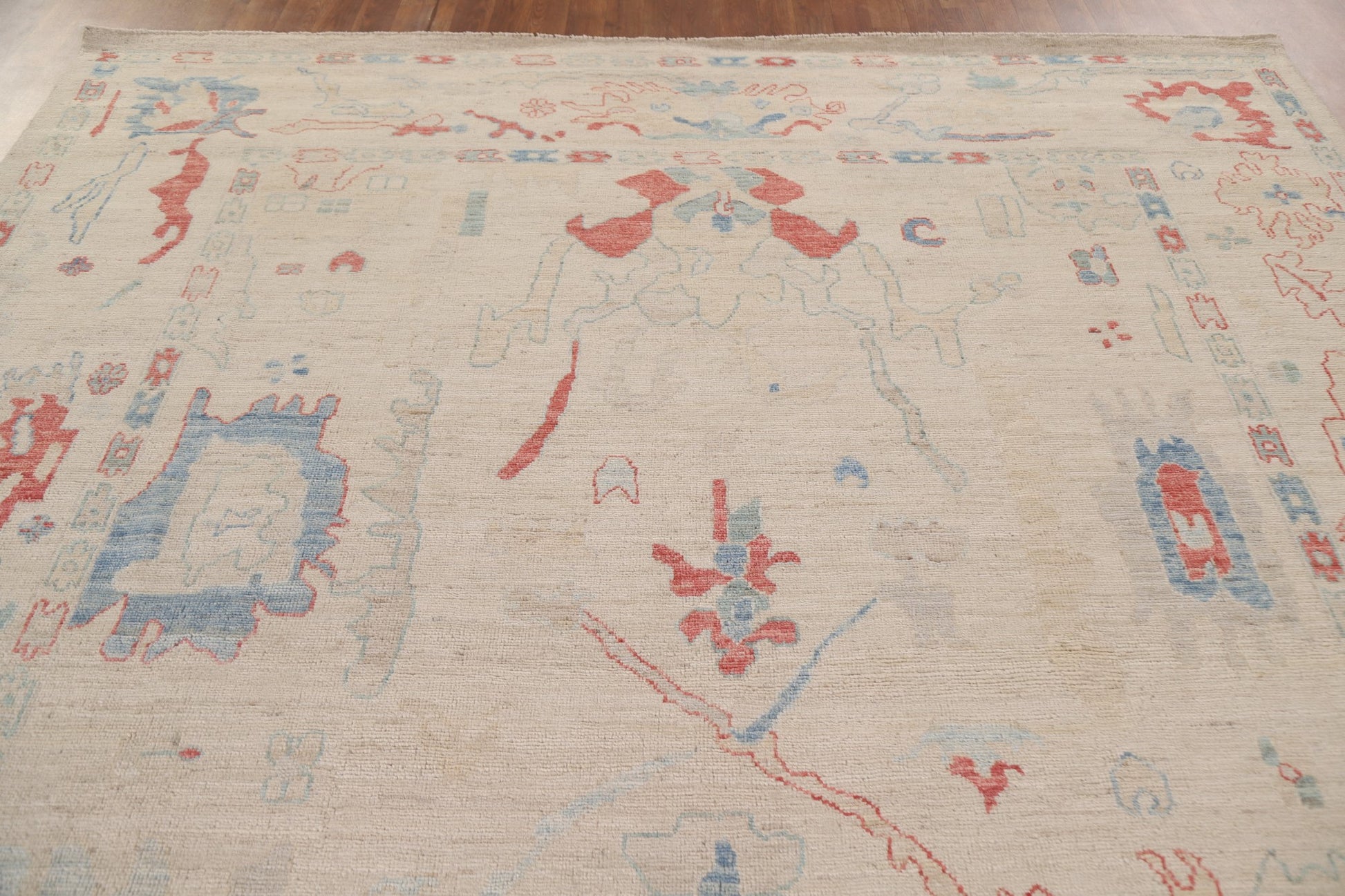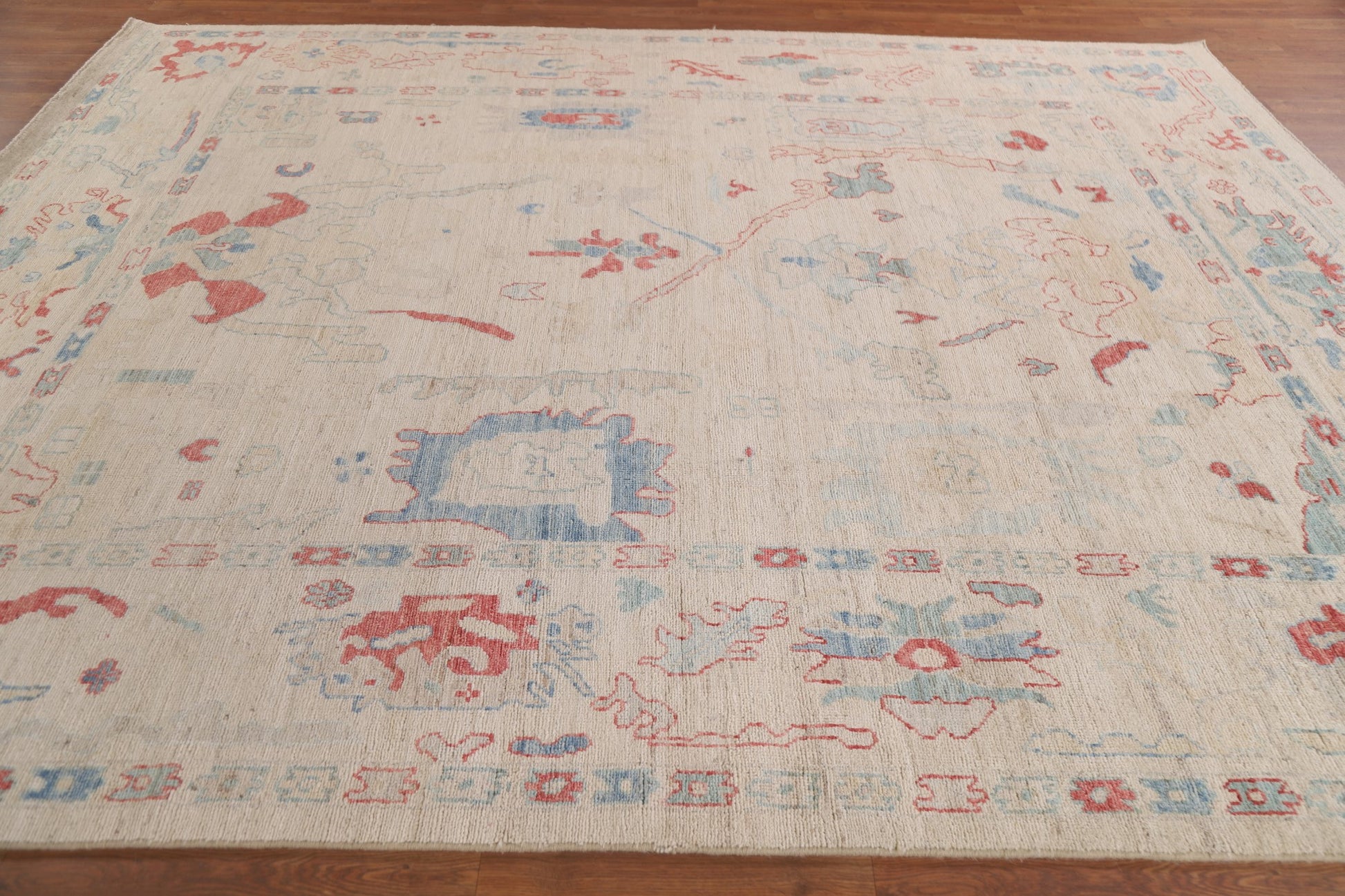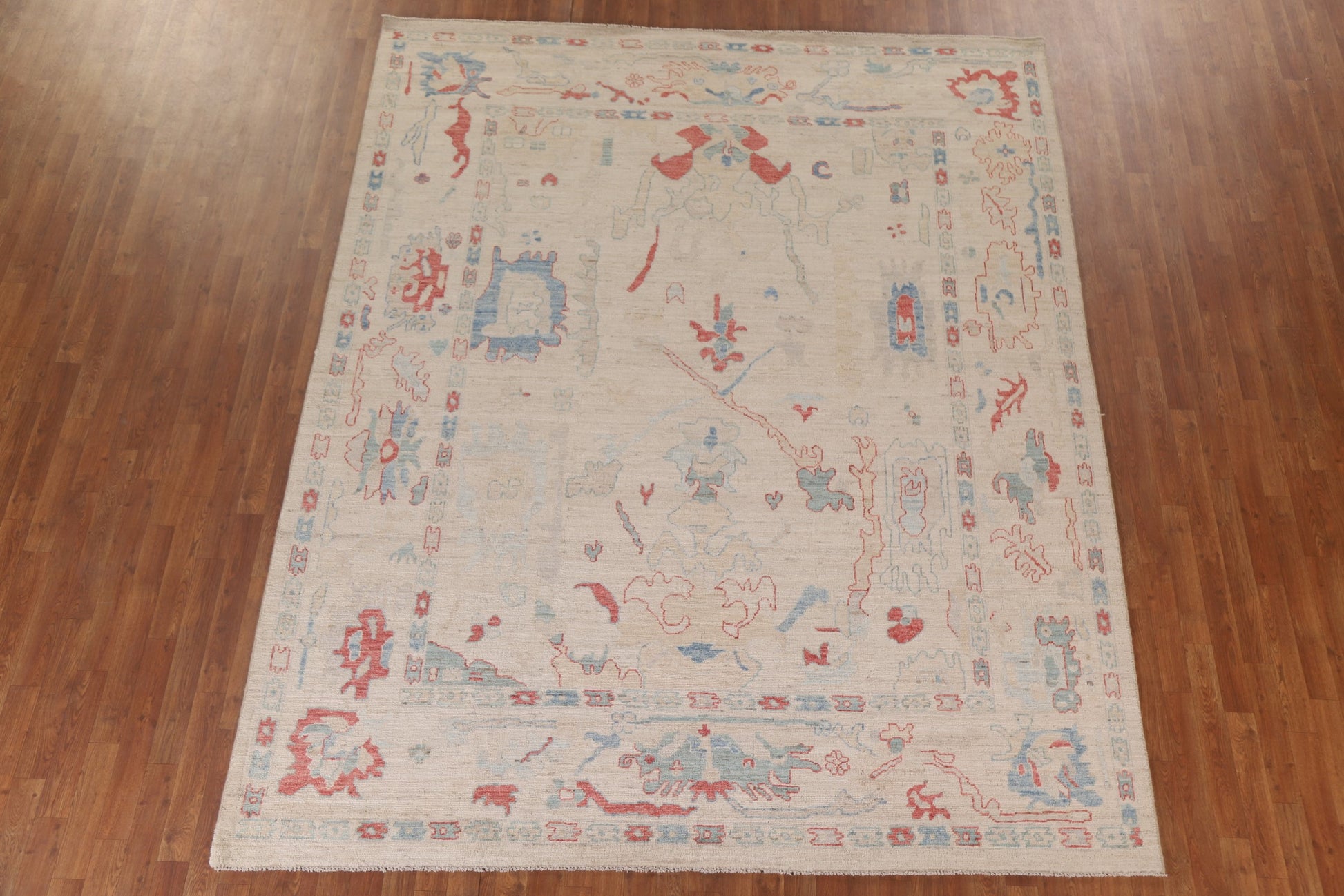 A Beautiful Genuine Turkey Oushak rug is Hand Knotted by skillful weavers in Turkey with 100% Wool Material. This rug is in New, First Quality condition. dimensions are 10' 1'' X 8' 3'' in foot and 307 X 251 in centimeter. the primary color is Beige & Ivories.