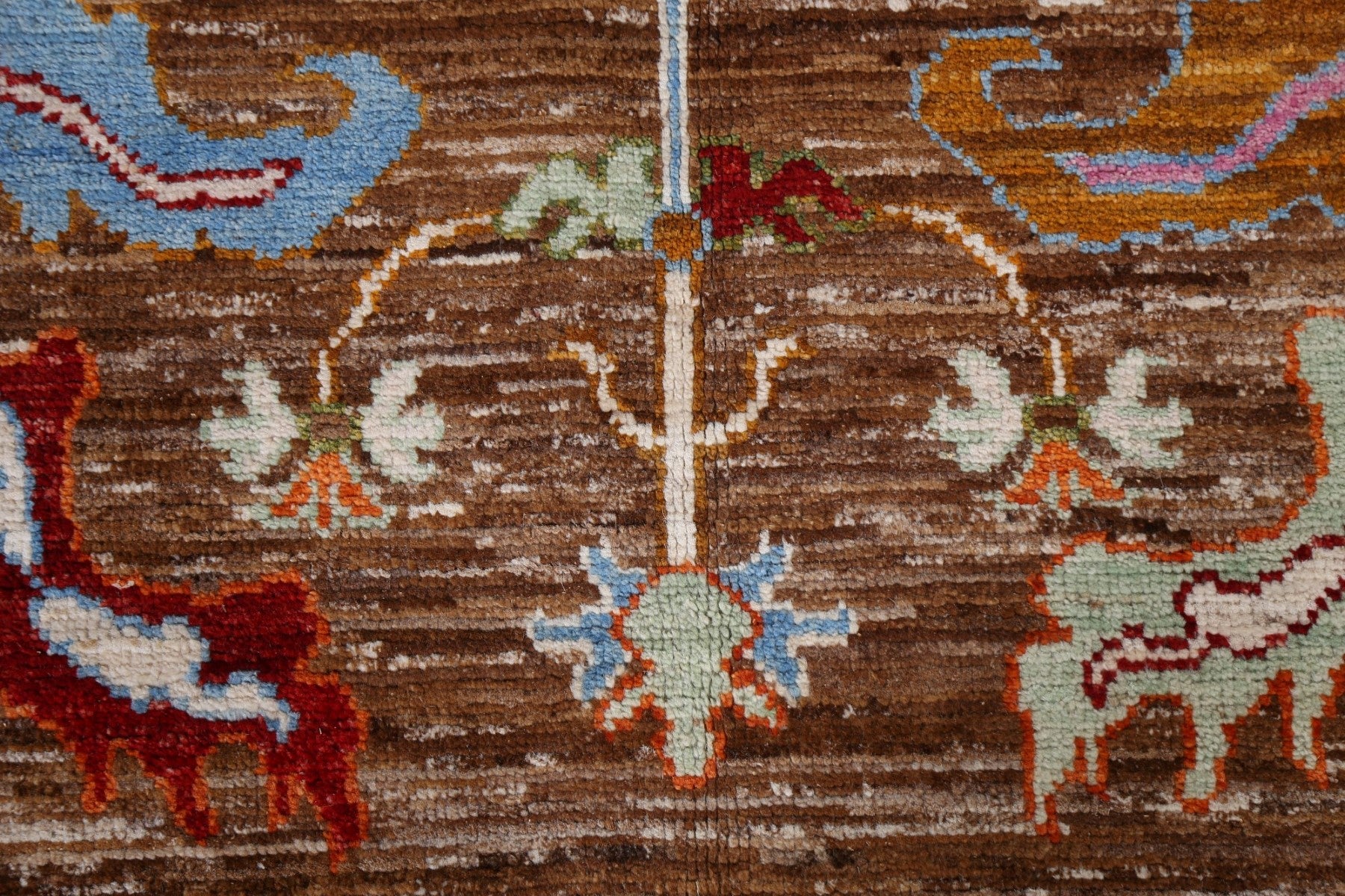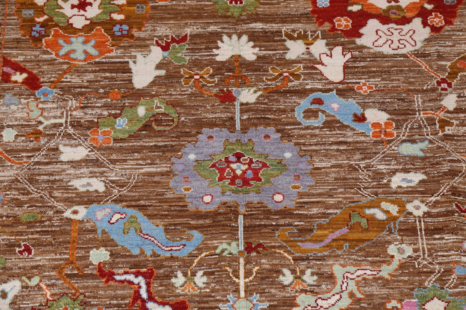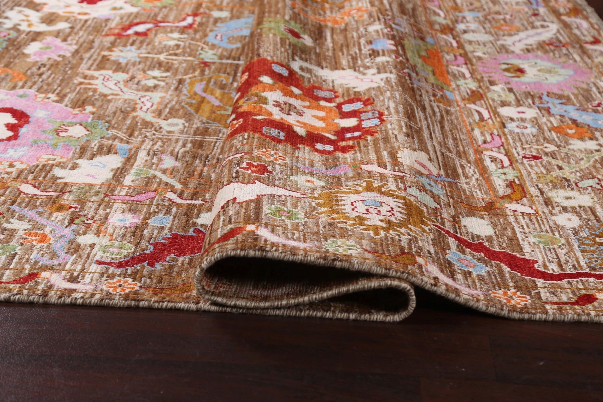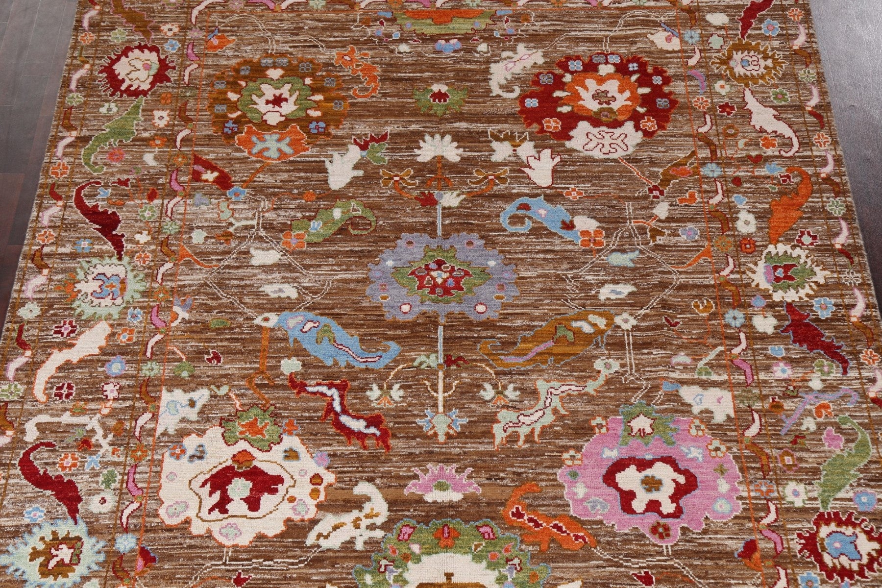 A Beautiful Genuine Turkey Oushak rug is Hand Knotted by skillful weavers in Turkey with 100% Wool Material. This rug is in New, First Quality condition. dimensions are 9' 9'' X 7' 11'' in foot and 297 X 241 in centimeter. the primary color is Brown.