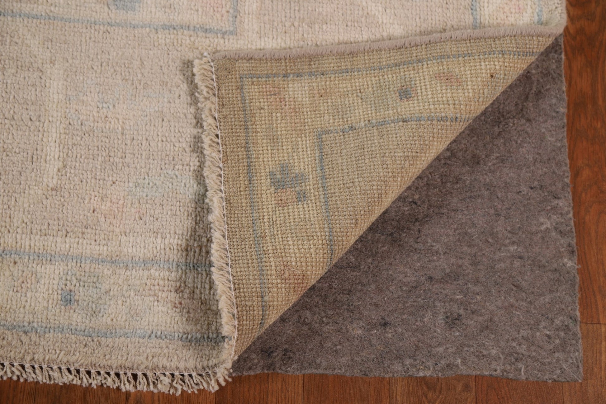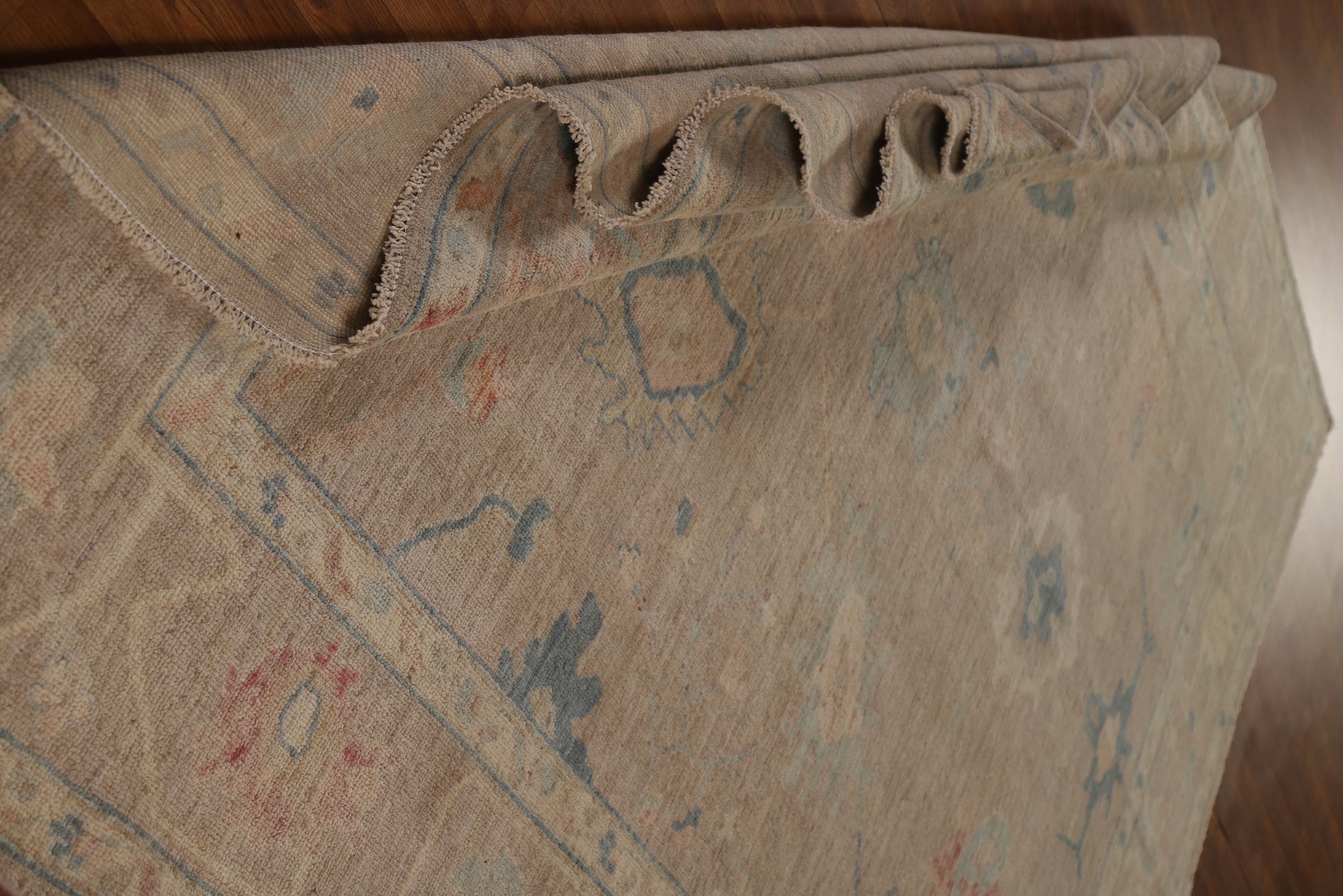A Beautiful Genuine Turkey Oushak rug is Hand Knotted by skillful weavers in Turkey with 100% Wool Material. This rug is in New, First Quality condition. dimensions are 9' 7'' X 8' 1'' in foot and 292 X 246 in centimeter. the primary color is Beige & Ivories.