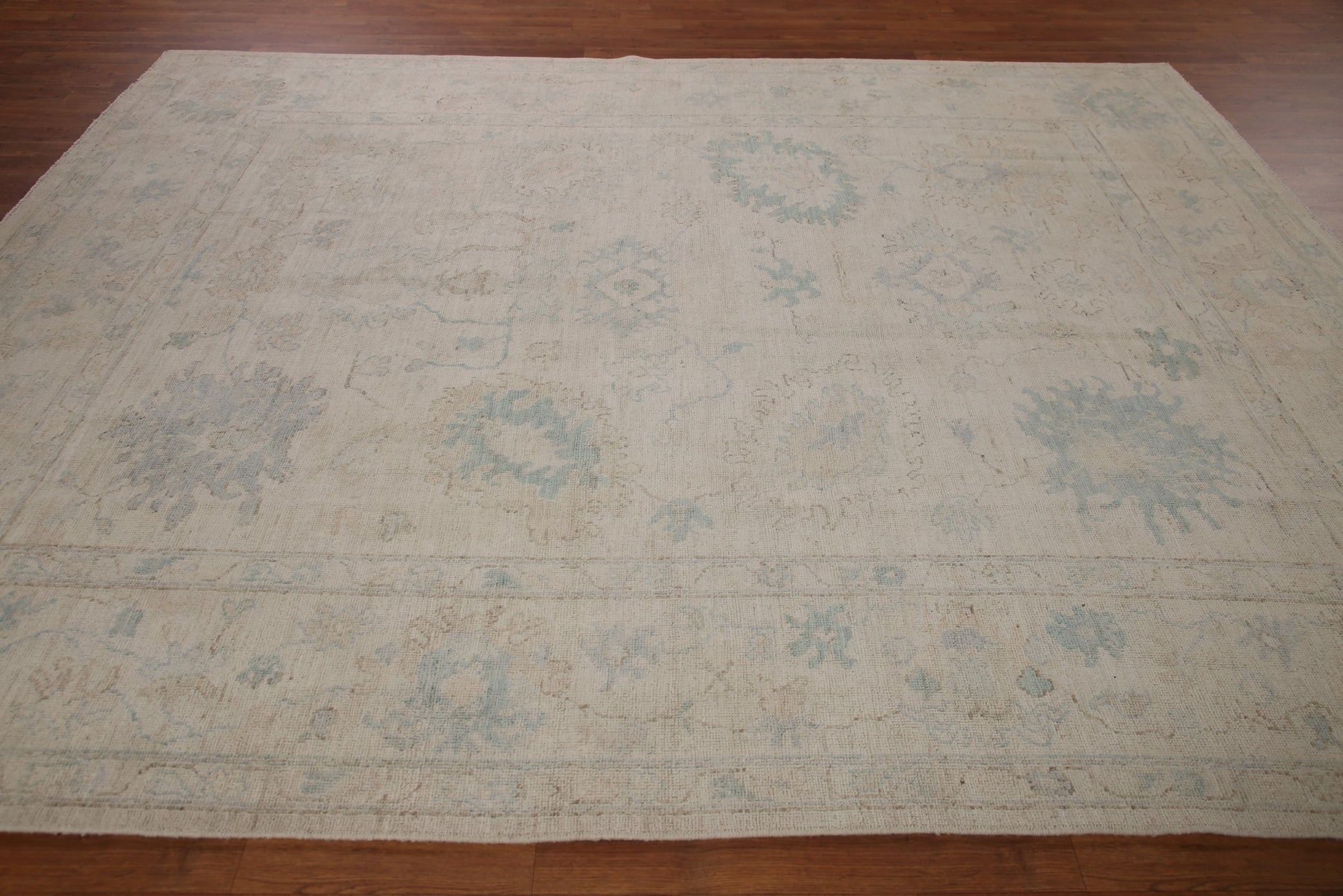 A Beautiful Genuine Turkey Oushak rug is Hand Knotted by skillful weavers in Turkey with 100% Wool Material. This rug is in New, First Quality condition. dimensions are 9' 10'' X 8' 0'' in foot and 300 X 244 in centimeter. the primary color is Beige & Ivories.