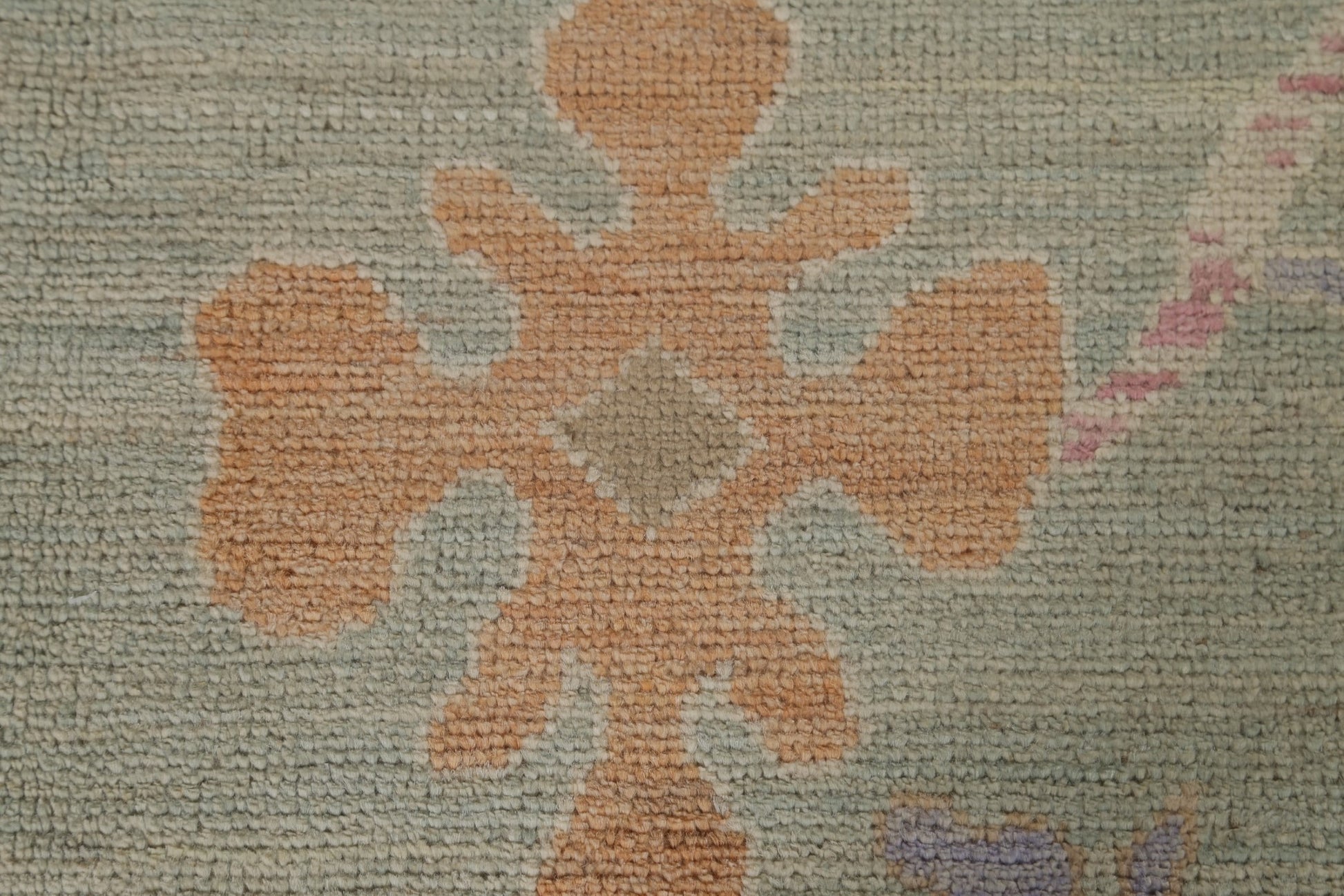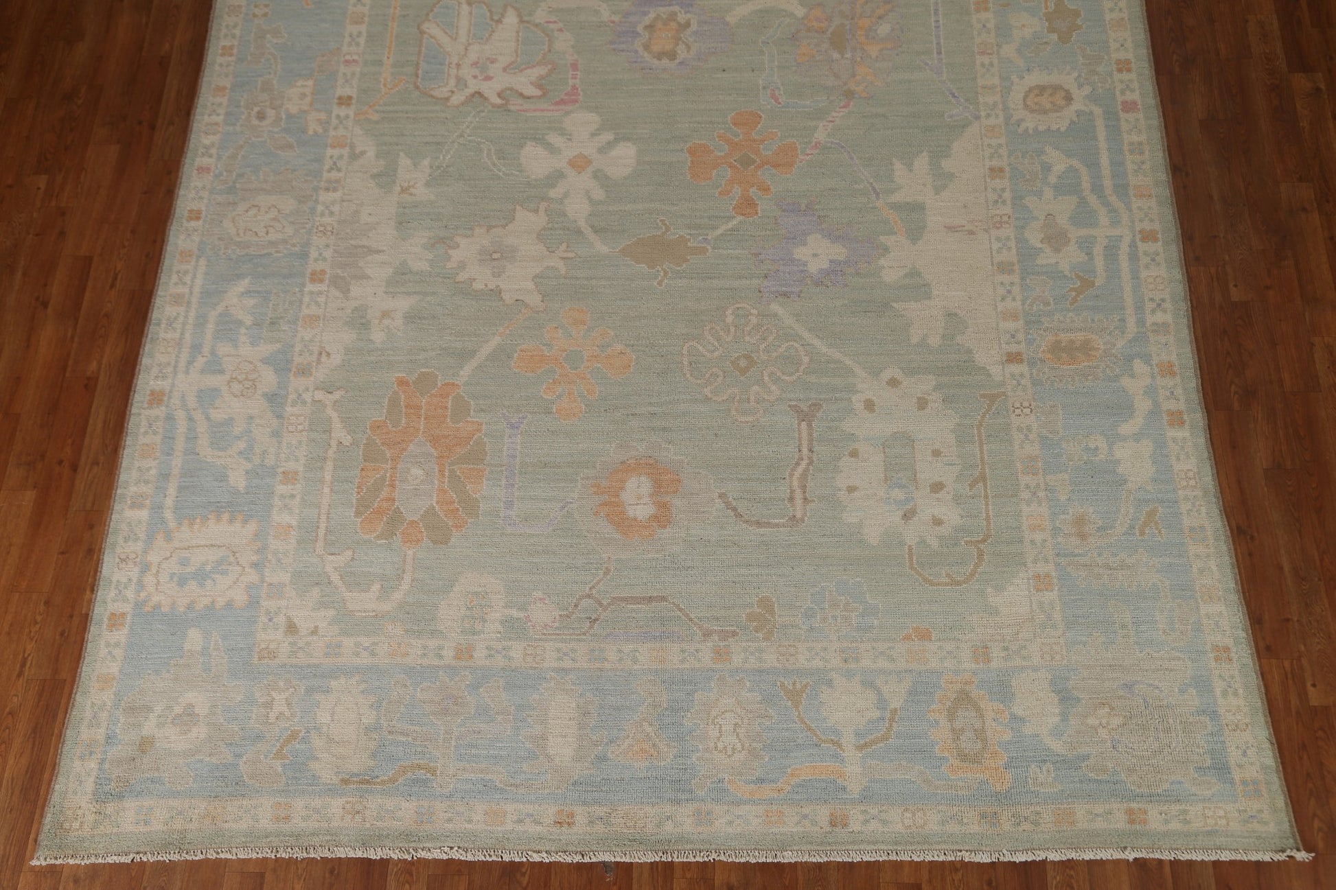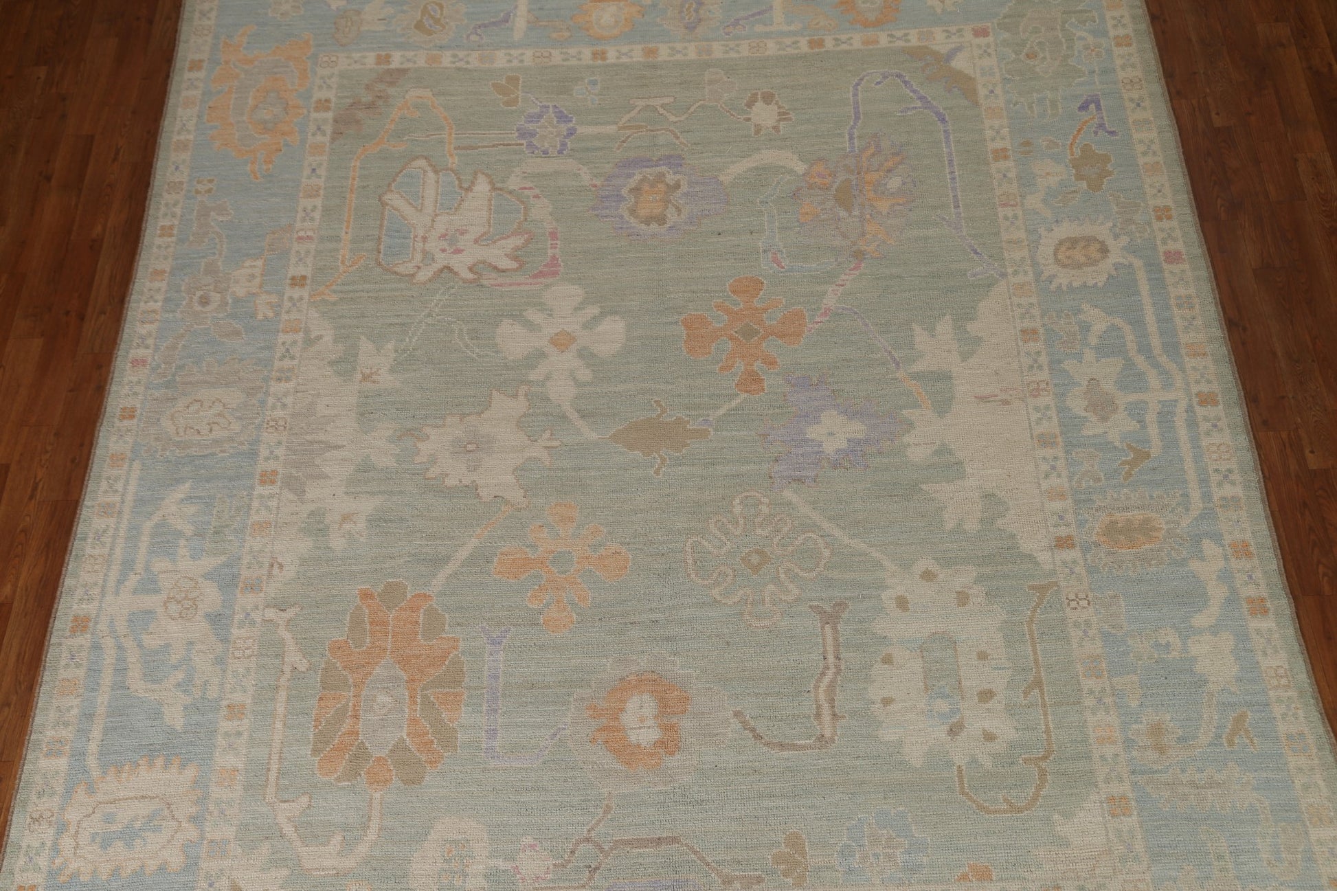 A Beautiful Genuine Turkey Oushak rug is Hand Knotted by skillful weavers in Turkey with 100% Wool Material. This rug is in New, First Quality condition. dimensions are 10' 2'' X 8' 5'' in foot and 310 X 257 in centimeter. the primary color is Green.