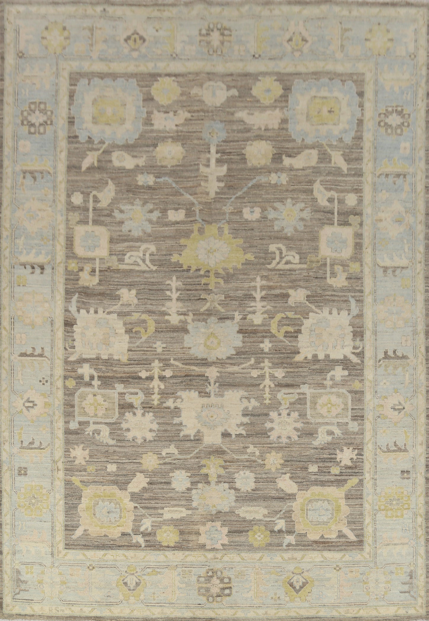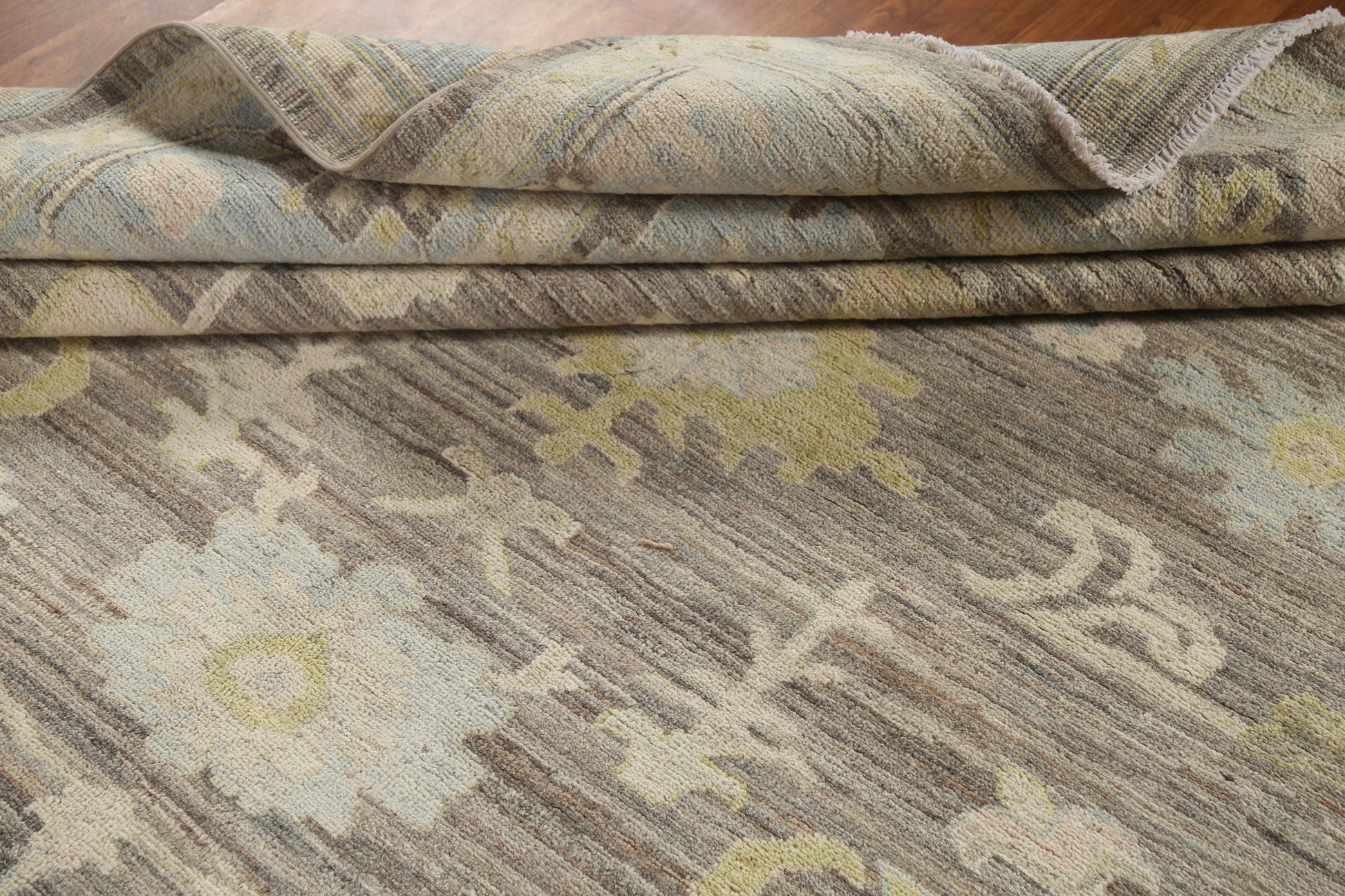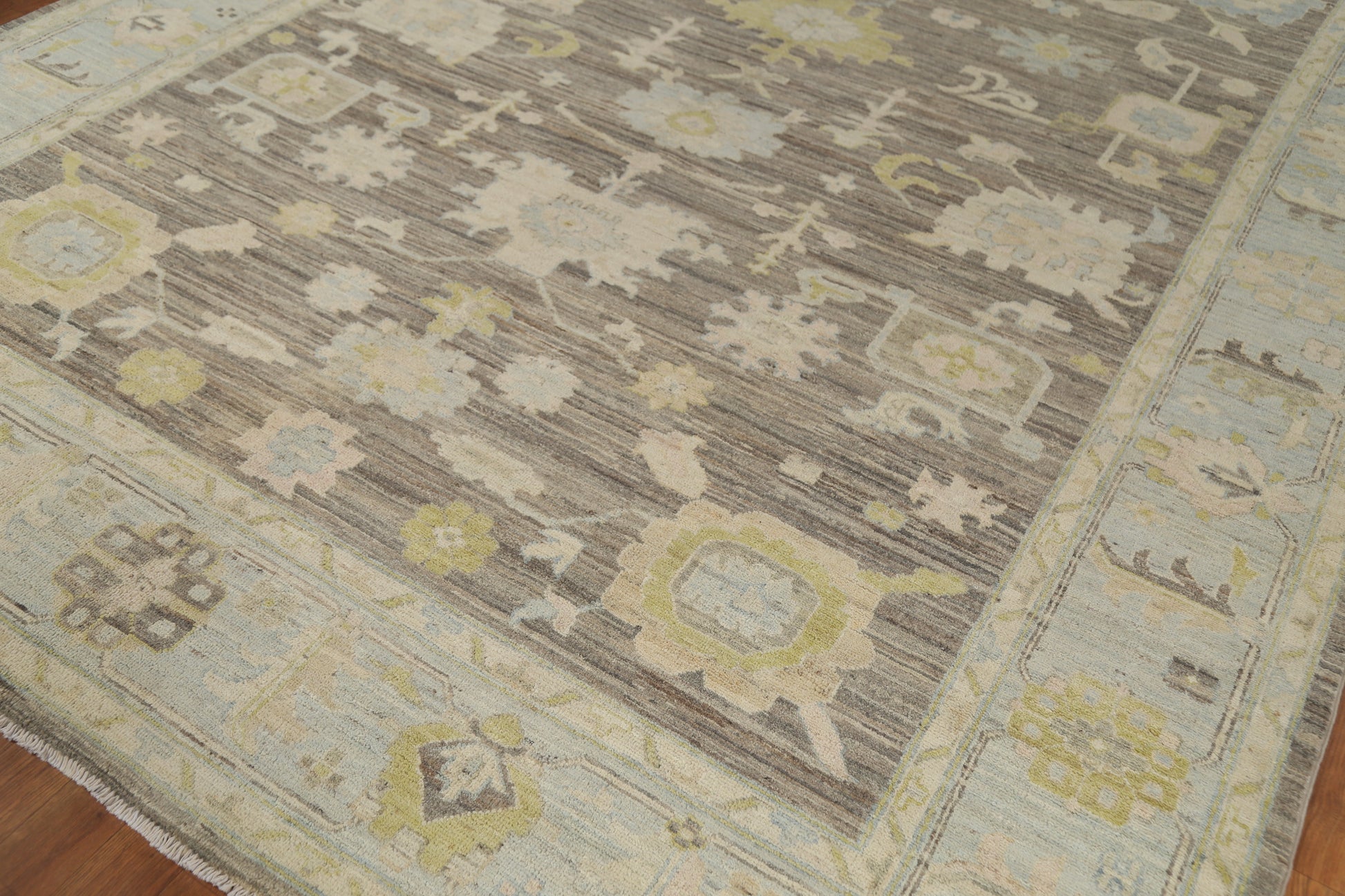A Beautiful Genuine Turkey Oushak rug is Hand Knotted by skillful weavers in Turkey with 100% Wool Material. This rug is in New, First Quality condition. dimensions are 10' 7'' X 8' 0'' in foot and 323 X 244 in centimeter. the primary color is Greys & Charcoal.