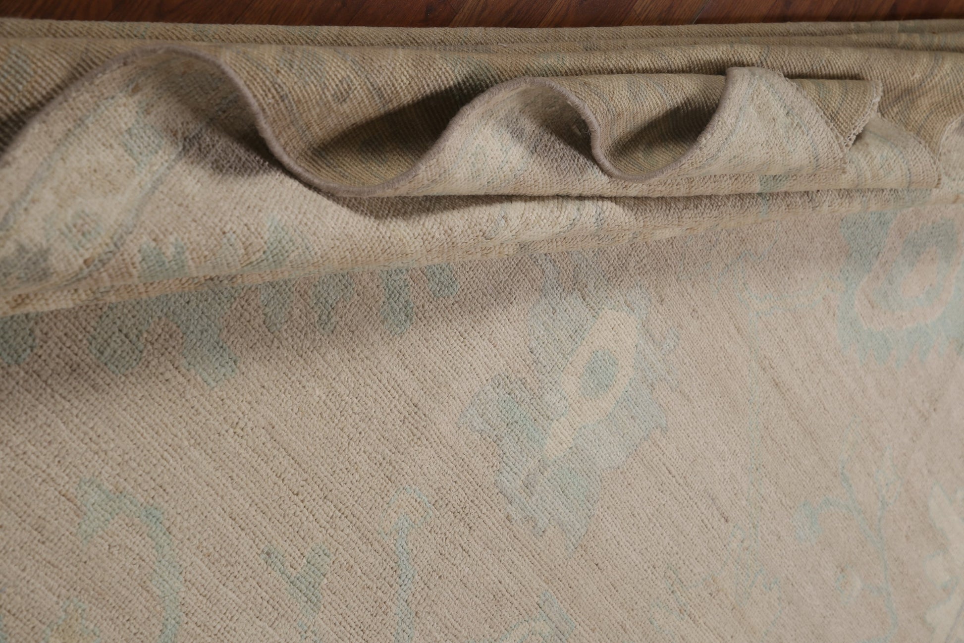 A Beautiful Genuine Turkey Oushak rug is Hand Knotted by skillful weavers in Turkey with 100% Wool Material. This rug is in New, First Quality condition. dimensions are 10' 1'' X 8' 7'' in foot and 307 X 262 in centimeter. the primary color is Beige & Ivories.