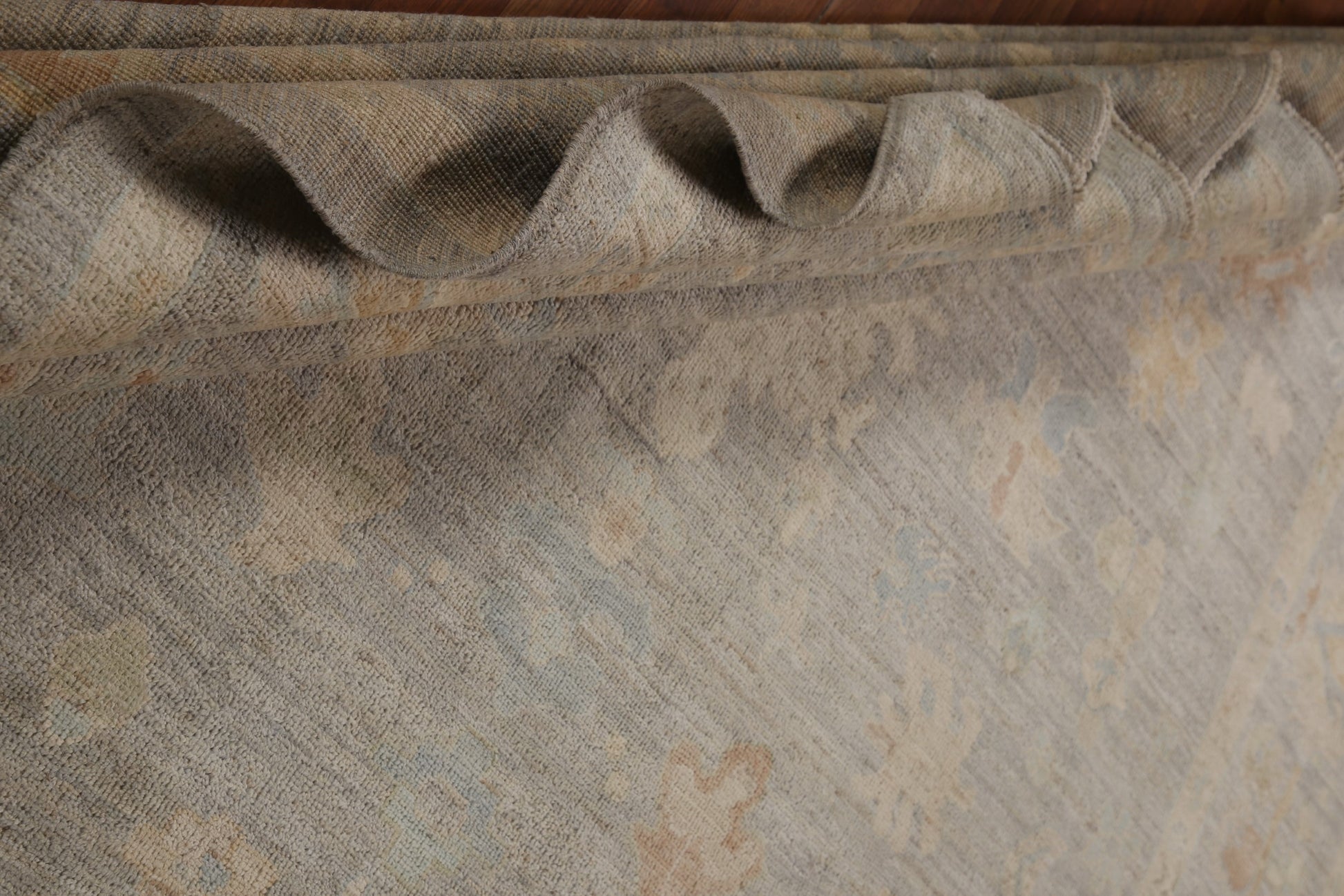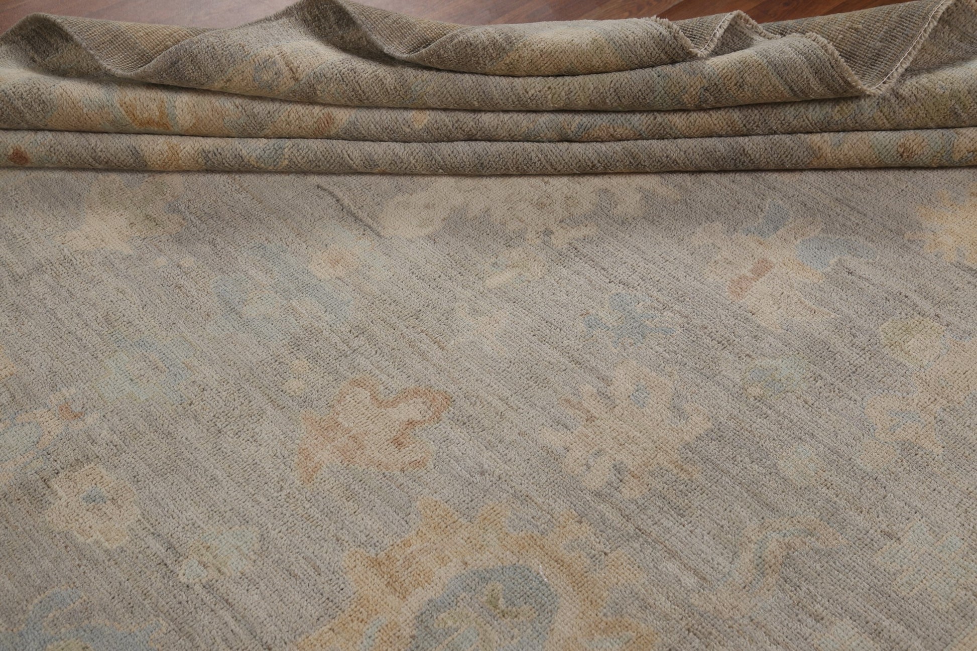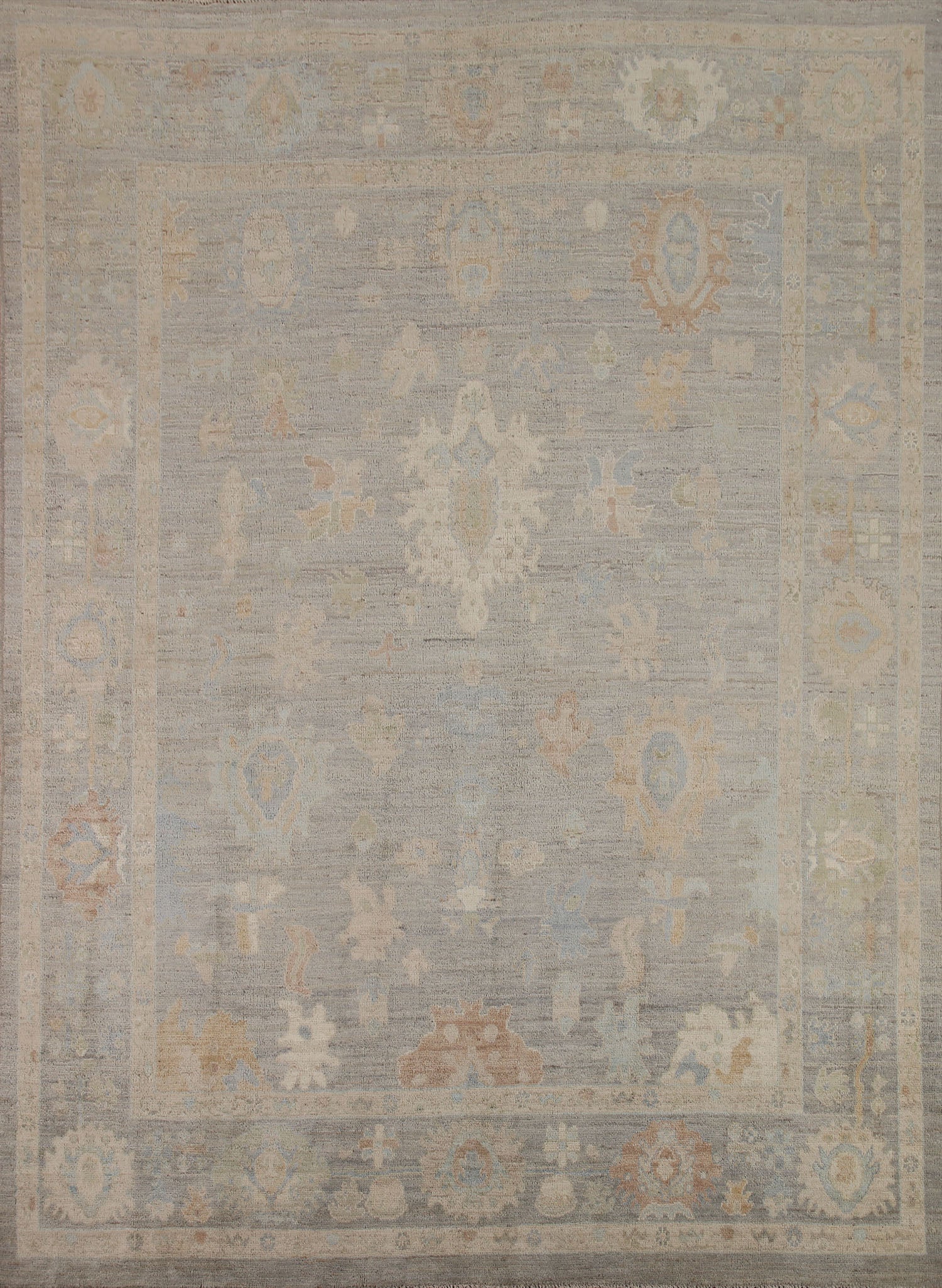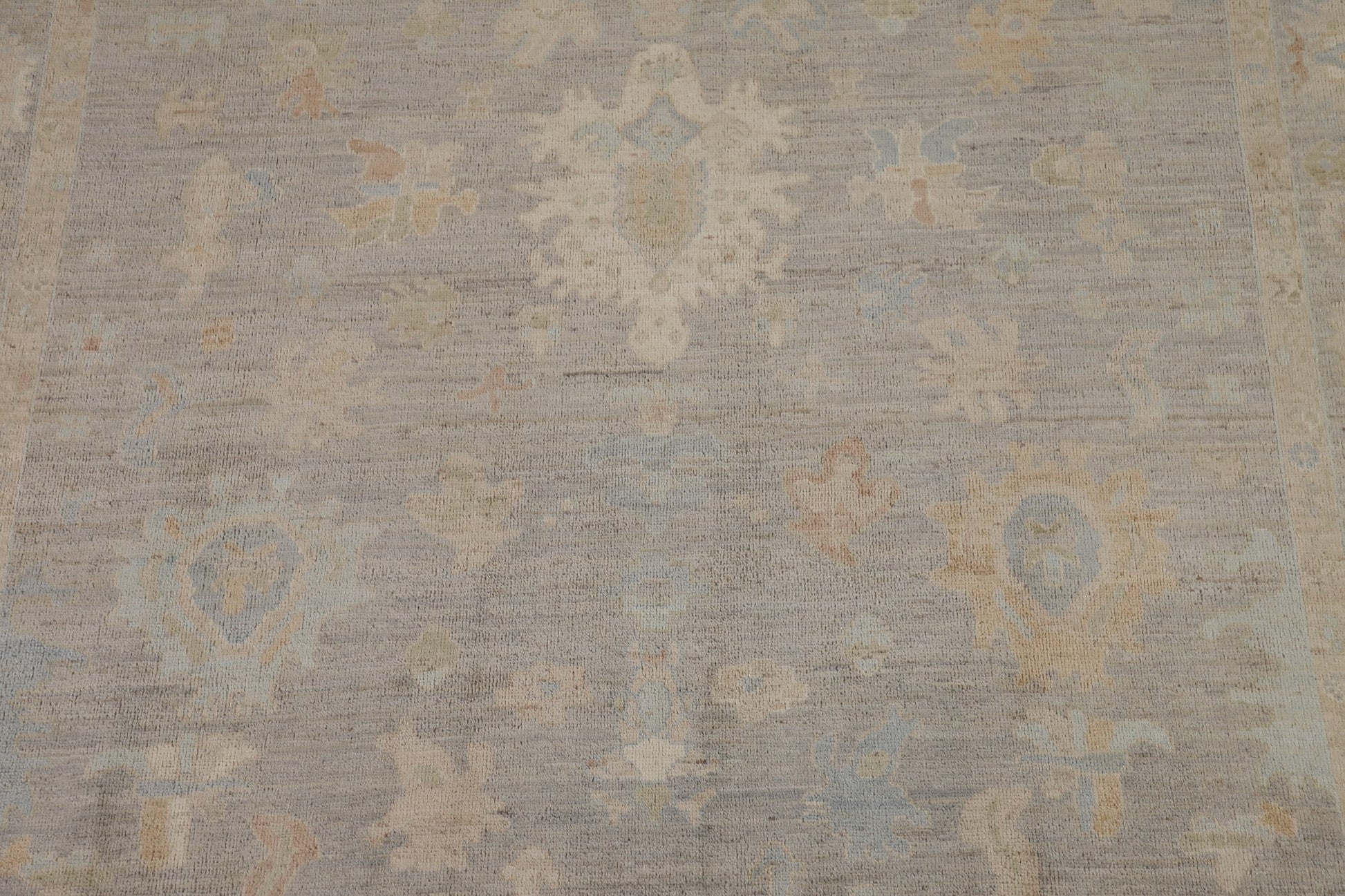 A Beautiful Genuine Turkey Oushak rug is Hand Knotted by skillful weavers in Turkey with 100% Wool Material. This rug is in New, First Quality condition. dimensions are 9' 8'' X 8' 6'' in foot and 295 X 259 in centimeter. the primary color is Greys & Charcoal.