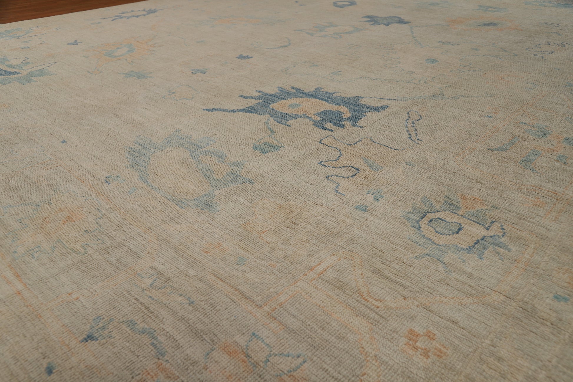 A Beautiful Genuine Turkey Oushak rug is Hand Knotted by skillful weavers in Turkey with 100% Wool Material. This rug is in New, First Quality condition. dimensions are 11' 3'' X 9' 2'' in foot and 343 X 279 in centimeter. the primary color is Beige & Ivories.