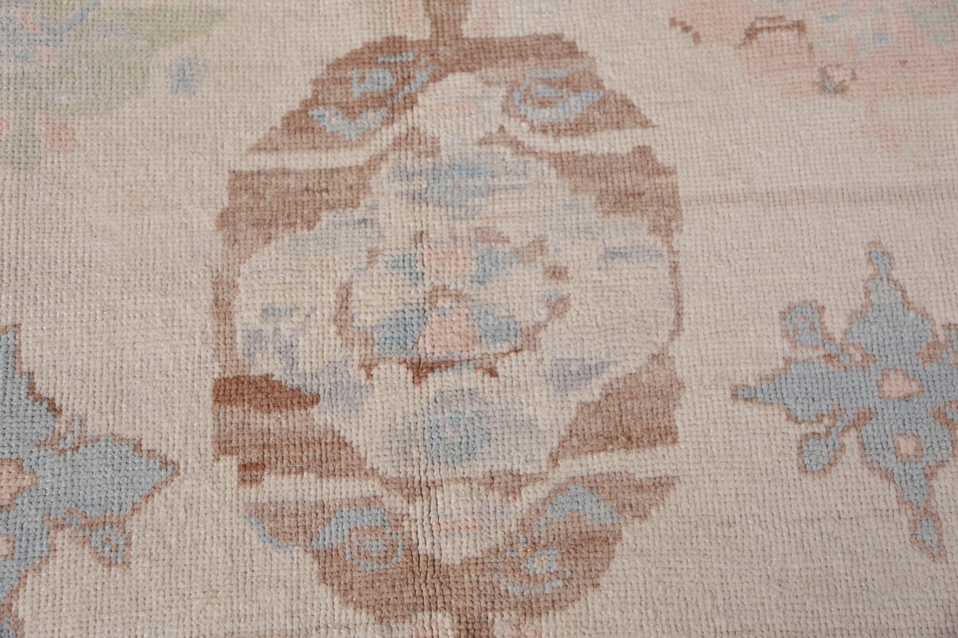 A Beautiful Genuine Turkey Oushak rug is Hand Knotted by skillful weavers in Turkey with 100% Wool Material. This rug is in New, First Quality condition. dimensions are 11' 5'' X 9' 0'' in foot and  348 X 274 in centimeter. the primary color is Beige & Ivories.