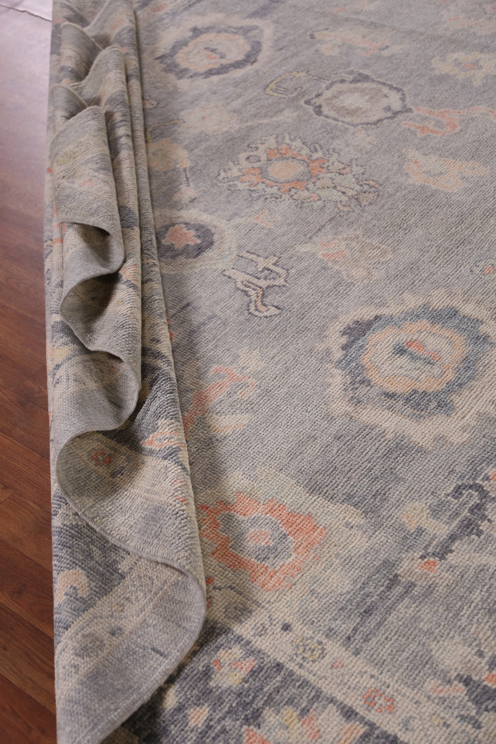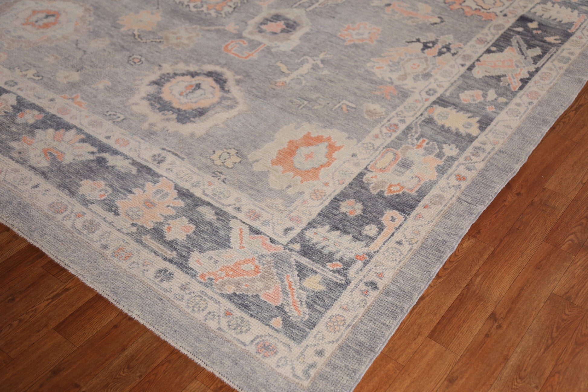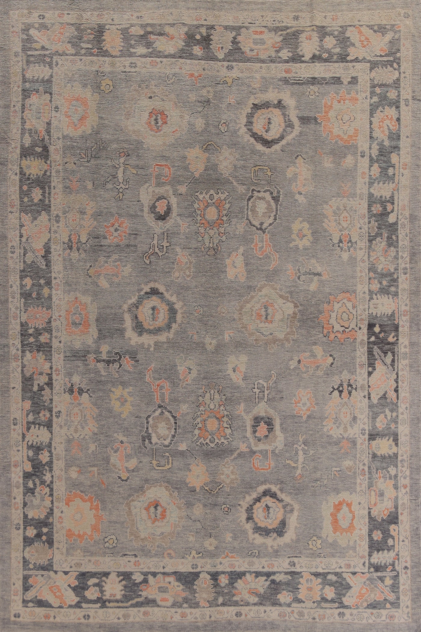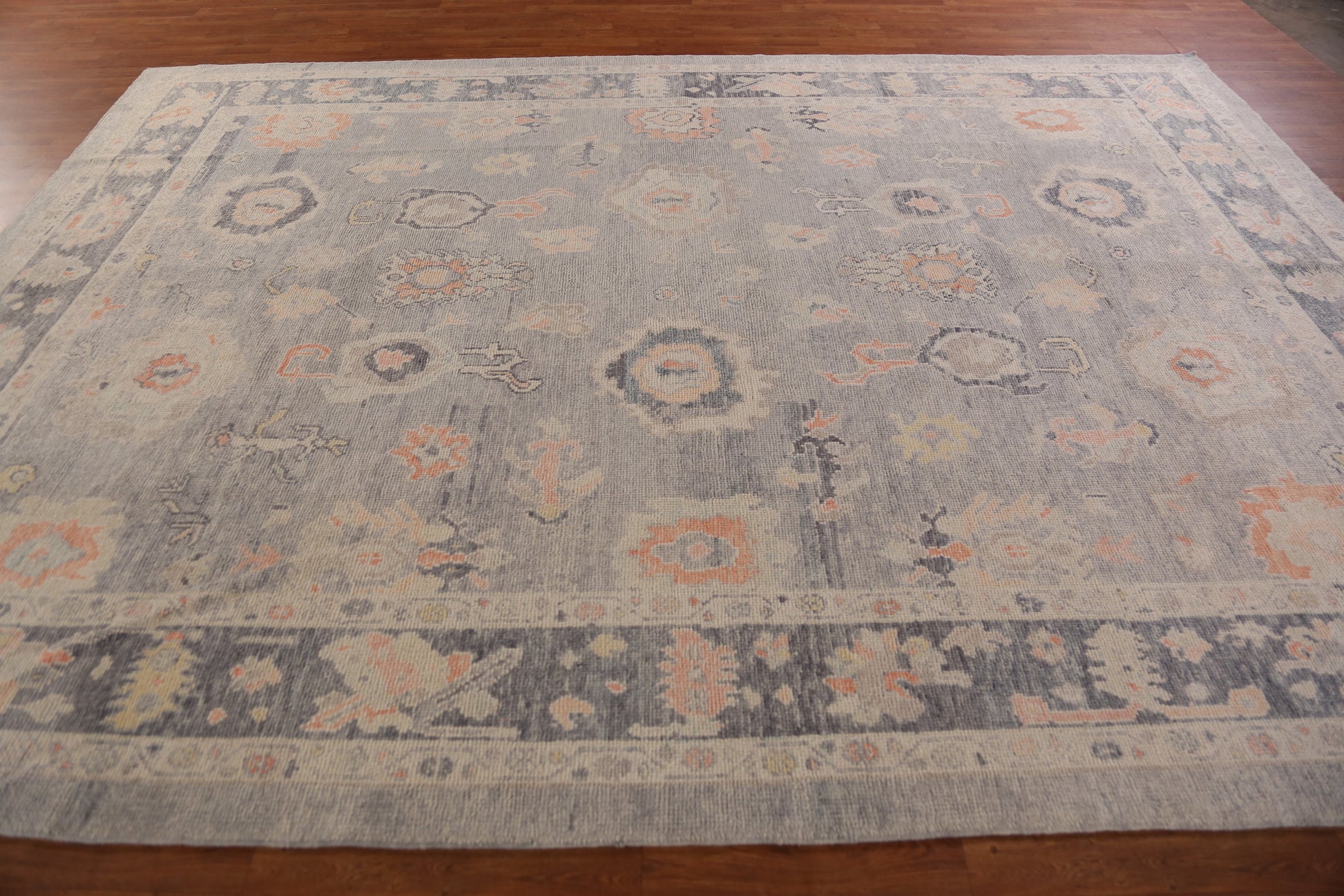 A Beautiful Genuine Turkey Oushak rug is Hand Knotted by skillful weavers in Turkey with 100% Wool Material. This rug is in New, First Quality condition. dimensions are 12' 4'' X 8' 11'' in foot and 376 X 272 in centimeter. the primary color is Greys & Charcoal.