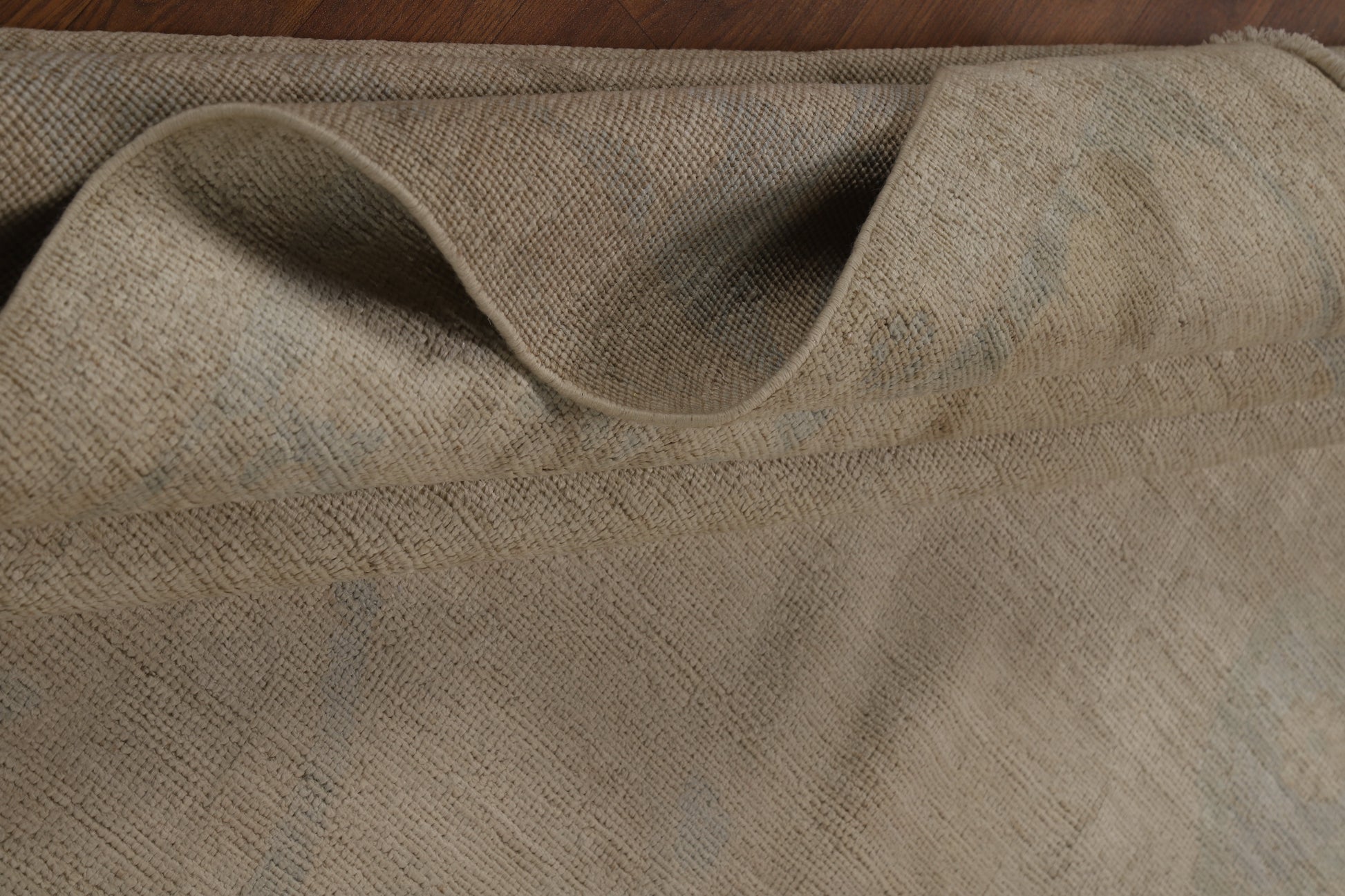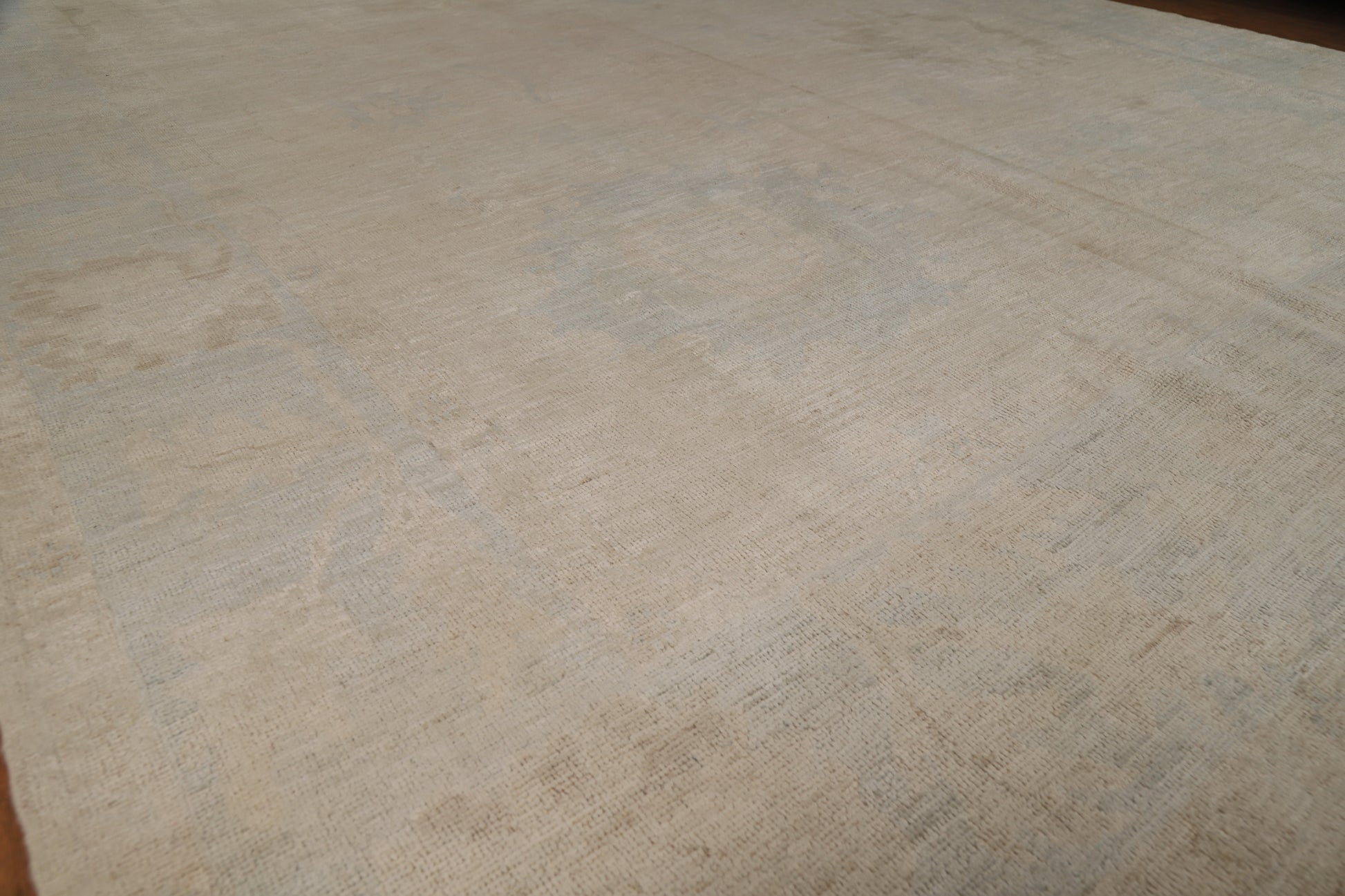 A Beautiful Genuine Turkey Oushak rug is Hand Knotted by skillful weavers in Turkey with 100% Wool Material. This rug is in New, First Quality condition. dimensions are 11' 10'' X 9' 0'' in foot and 361 X 274 in centimeter. the primary color is Beige & Ivories.